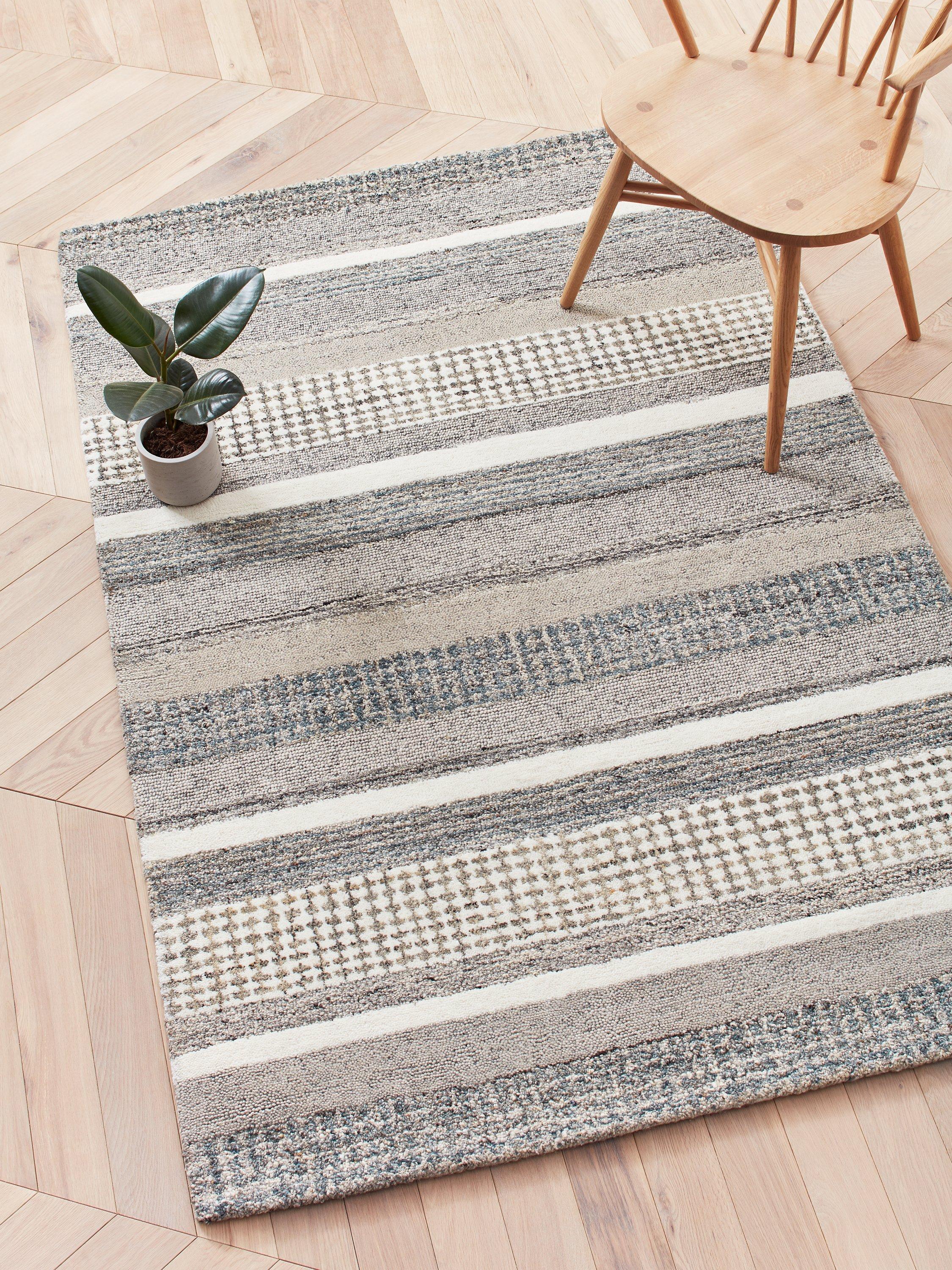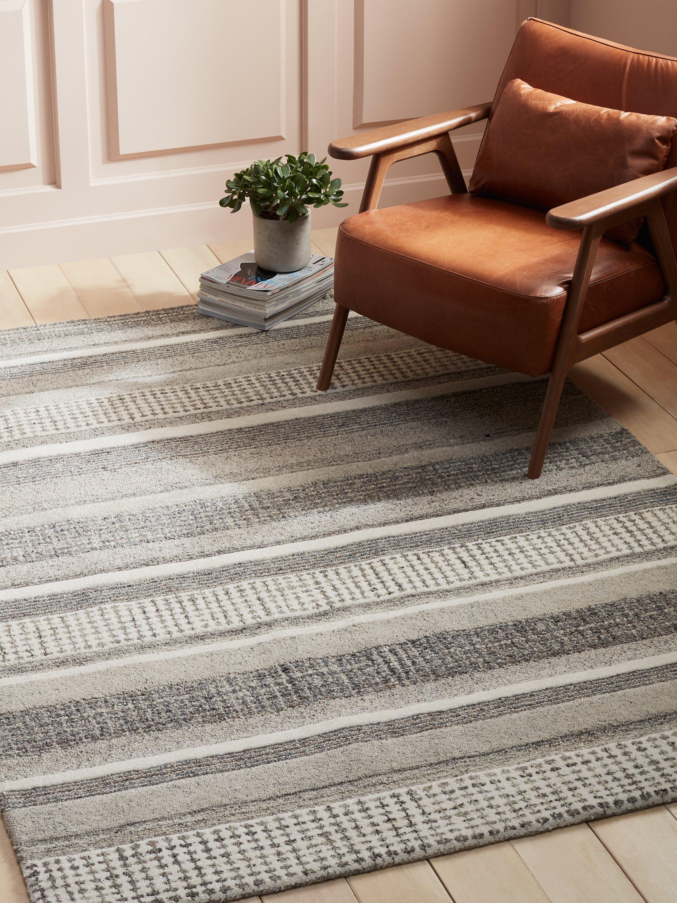 This striped rug by John Lewis & Partners in bands of beautiful, grey tones adds depth and warmth to a room, ideal as an alternative to everyday neutrals. Hand tufted with tremendous care and attention, the wool rich composition creates a satisfyingly dense finish. Made in India.