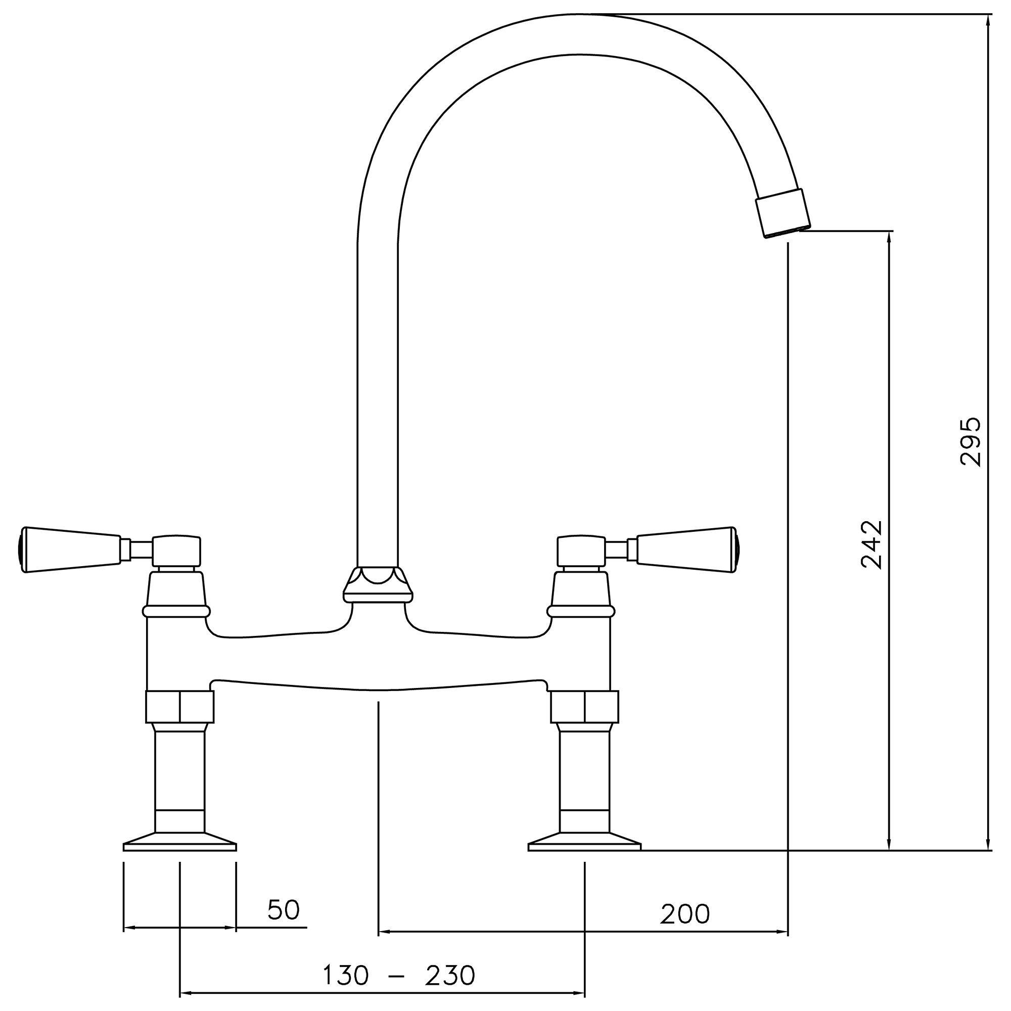 - H295 x W200 x D50mm, Spout reach: 200mm, Height to end of spout: 242mm