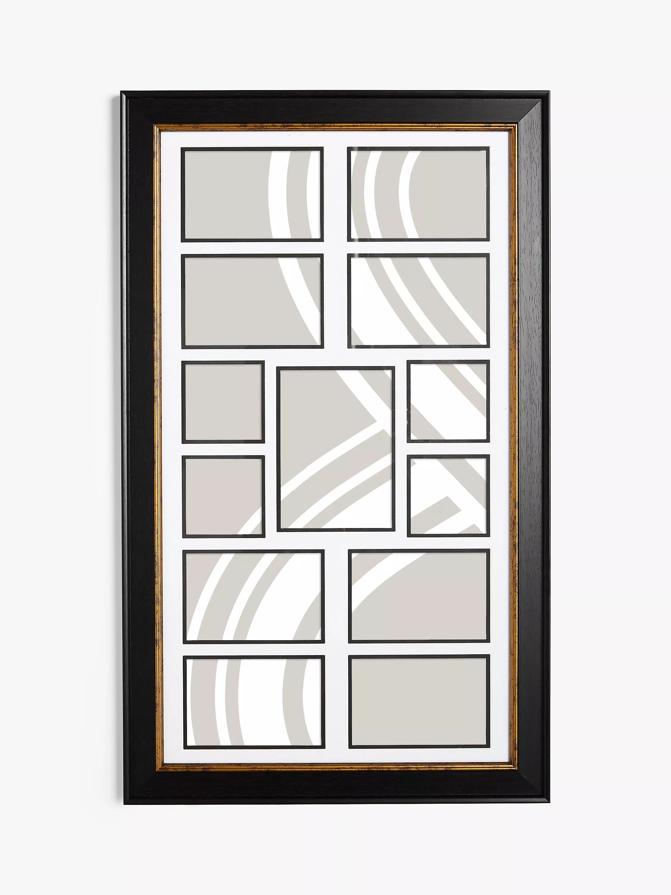 This design holds 13 images, separated by a photo mount. It comes ready to hang on a wall, horizontally or vertically.