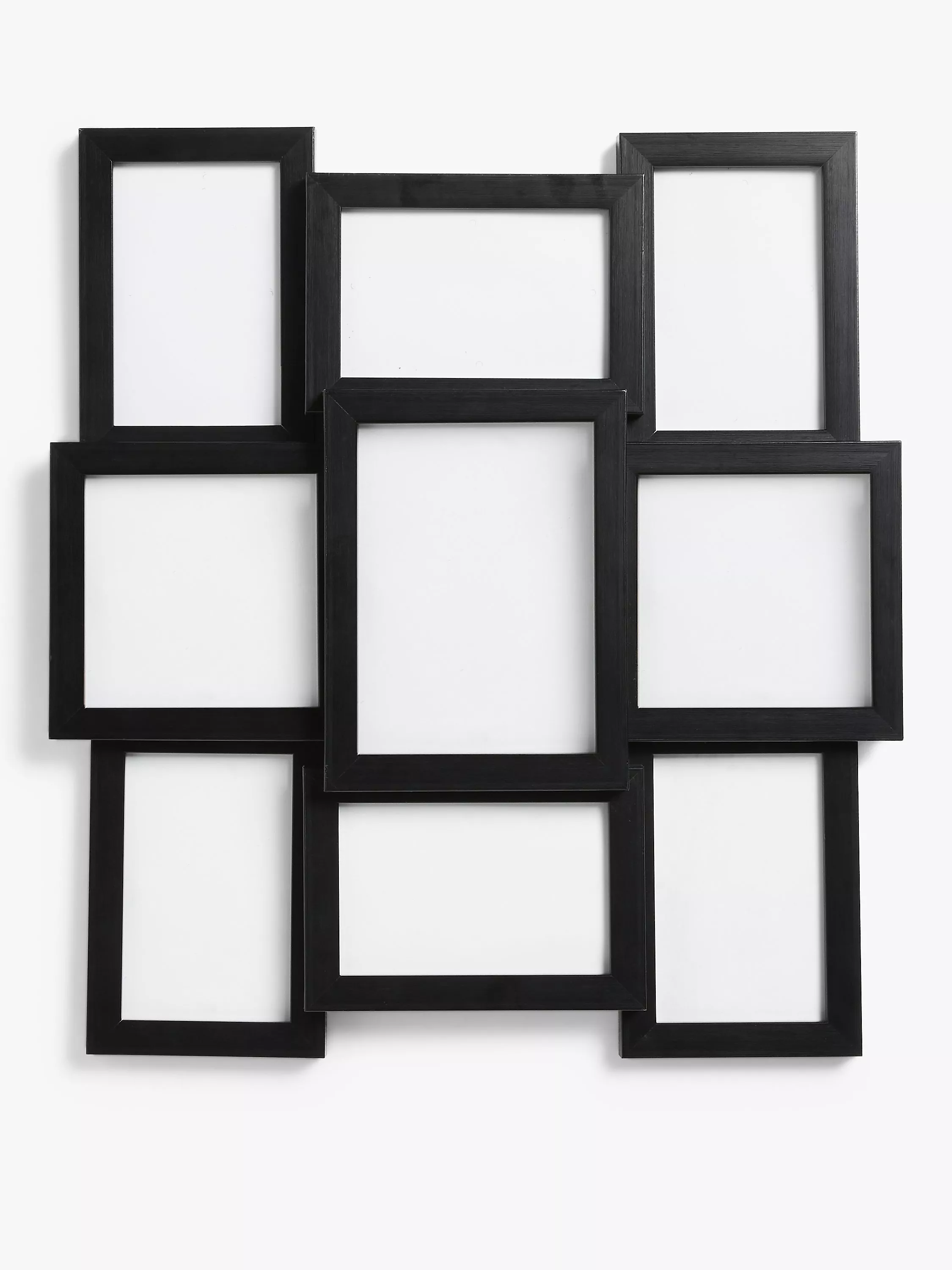 Create an instant gallery wall of photos with this contemporary photo frame in a matt finish, glazed with apertures for 9 photos. Ideal for displaying similarly themed images together, the frame is easy to wall-mount, horizontally or vertically.