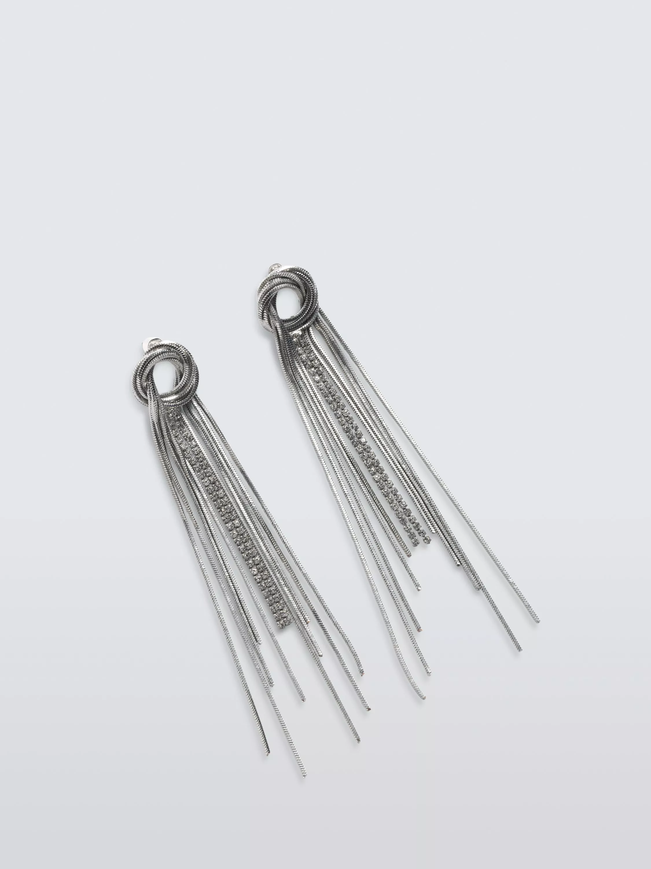 Designed by our main collection, this pair of drop earrings features a statement multi-chain knot stud and an irregular length chain drop with clear crystals. Complete with post fittings, they are suitable for pierced ears only.