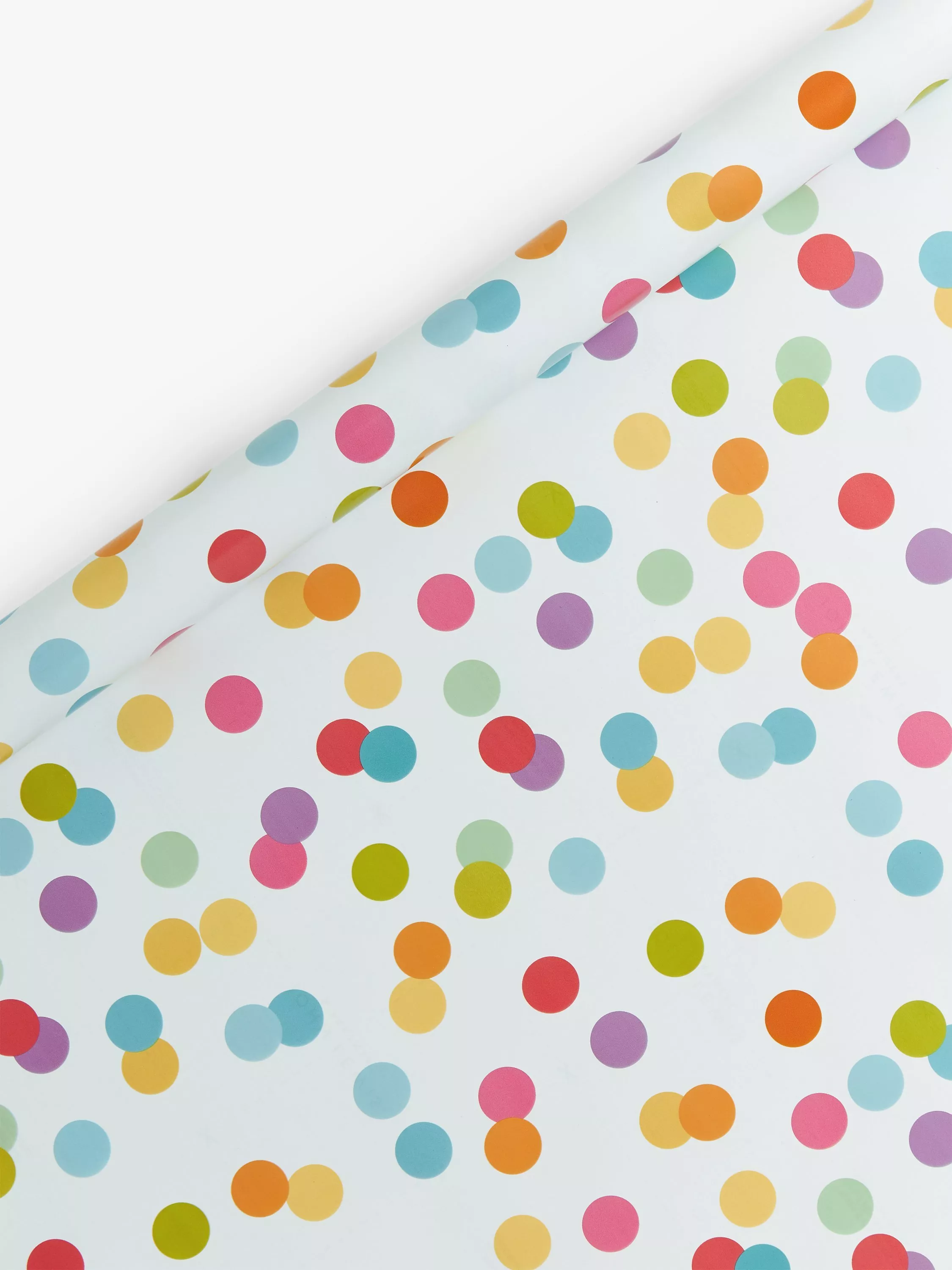 A fun and colourful roll of three metres of wrapping paper in a playful polka dot spot design.