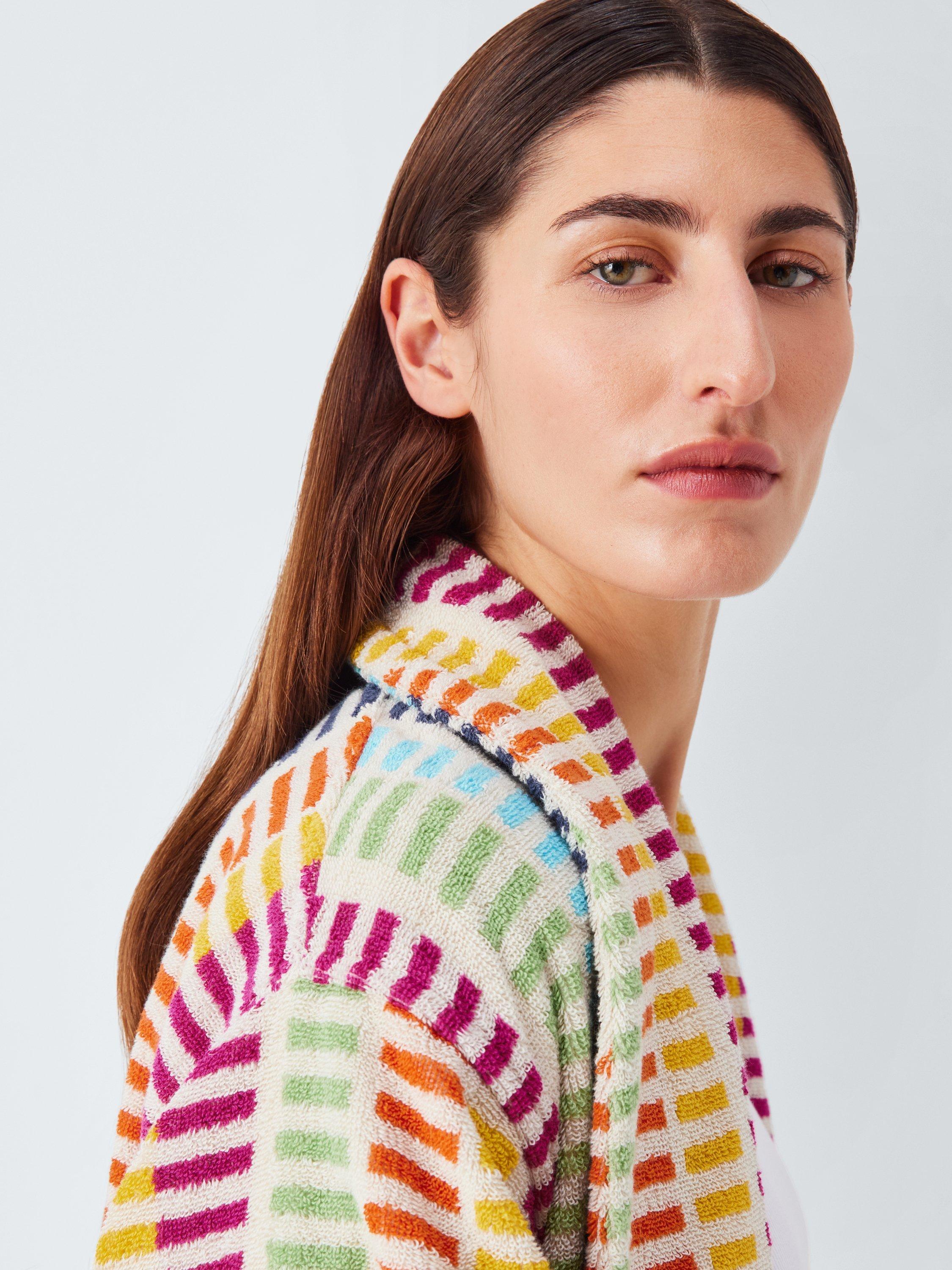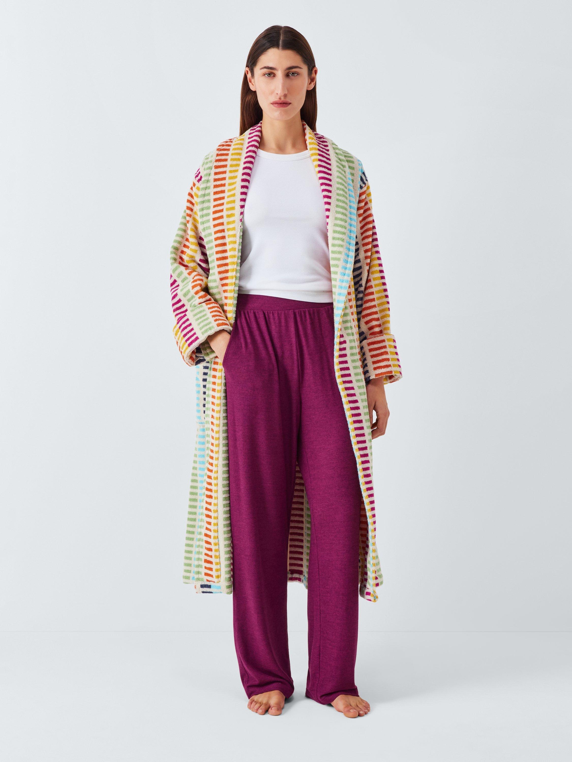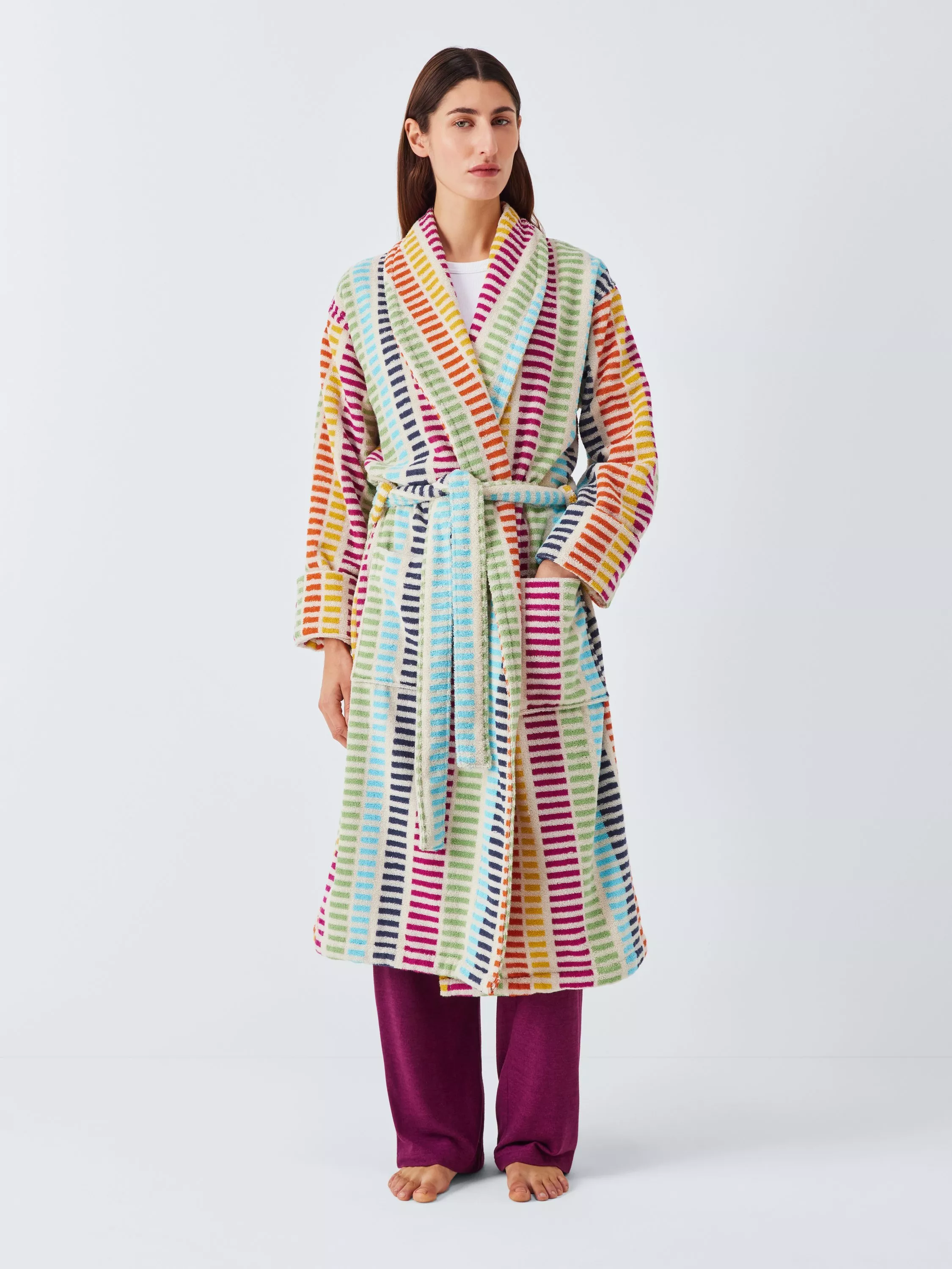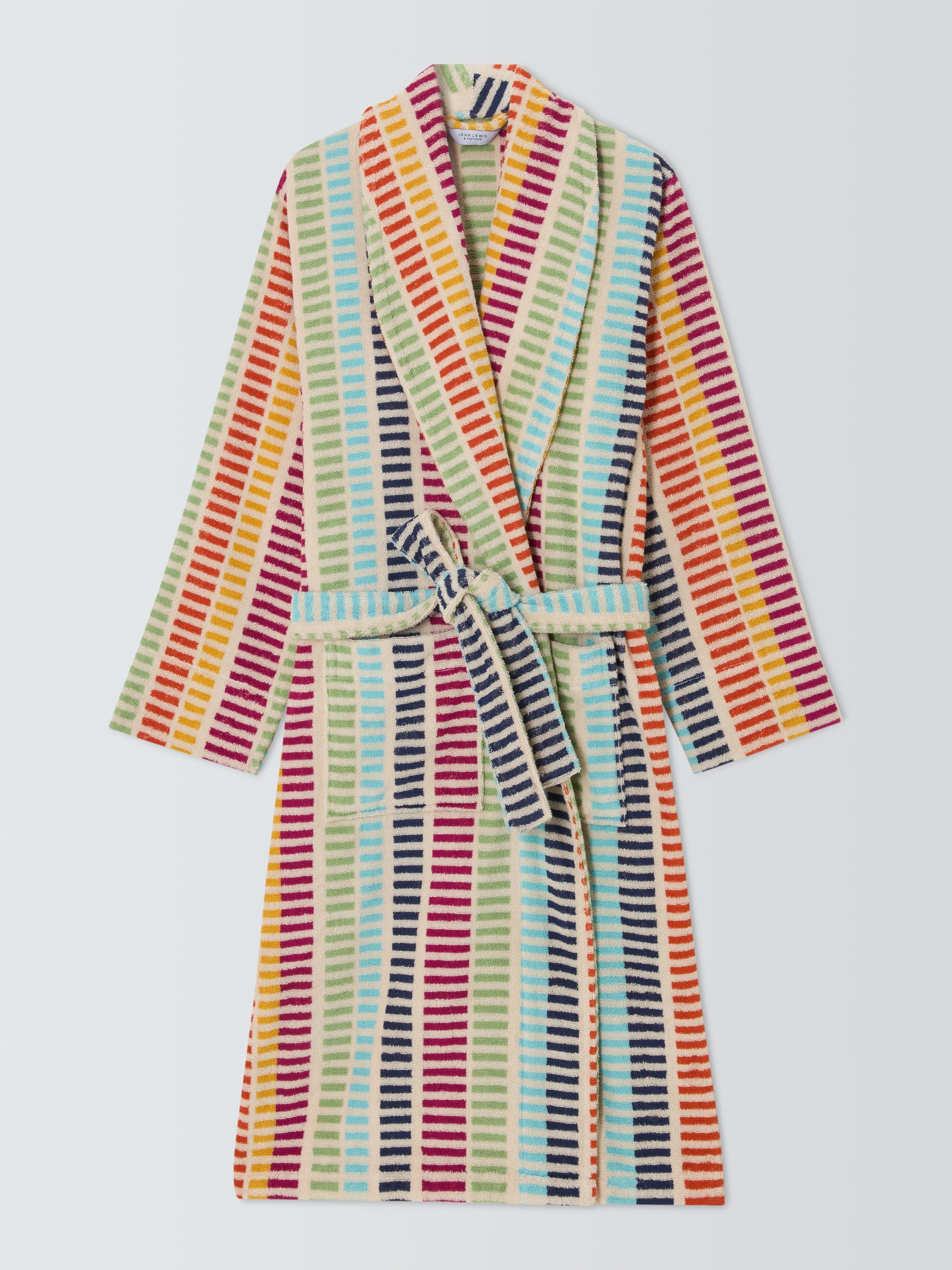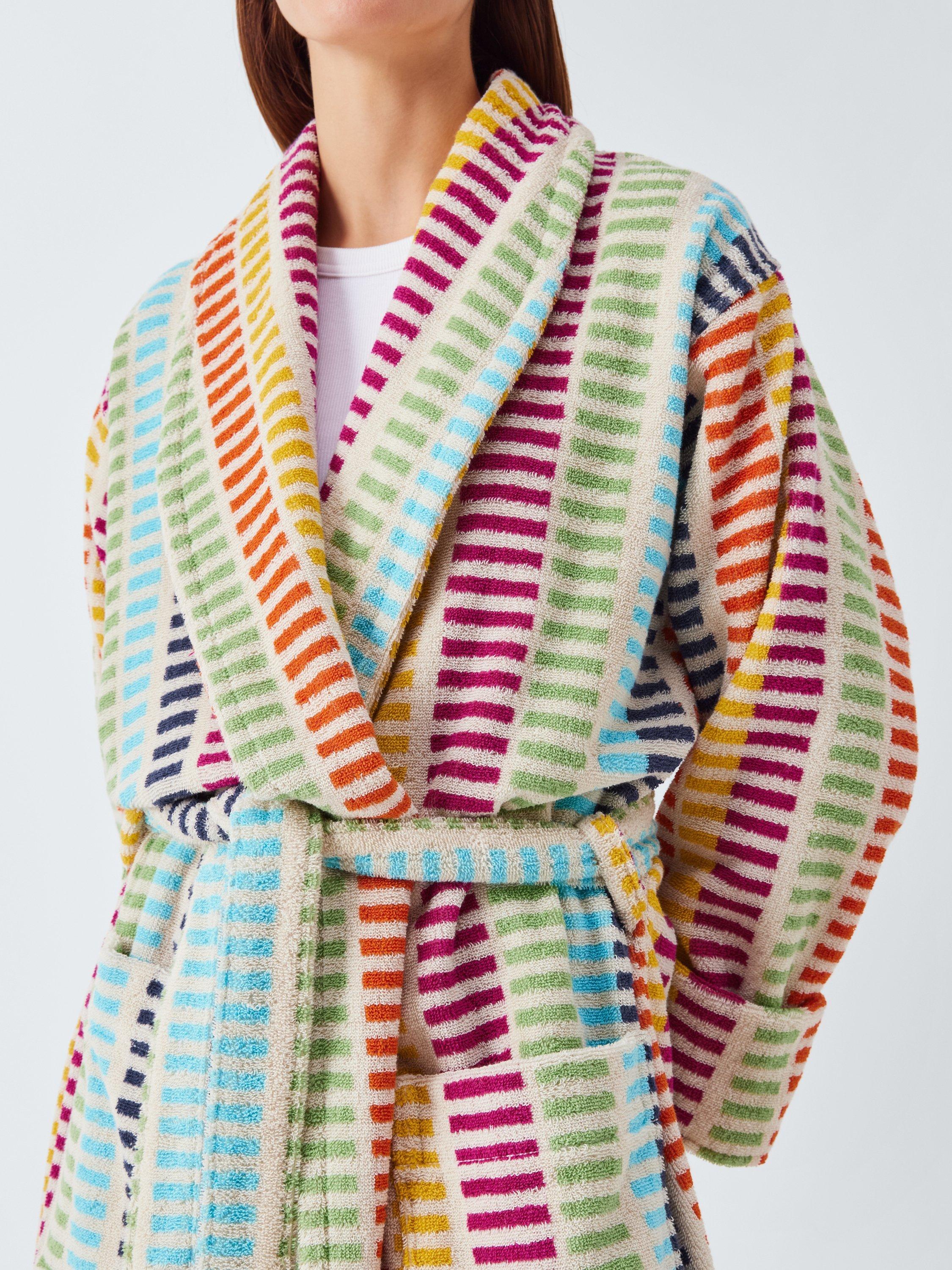 Comfort - check! Colour - check! This striped towelling robe ticks all the style boxes and comes with a shawl collar and two front pockets.