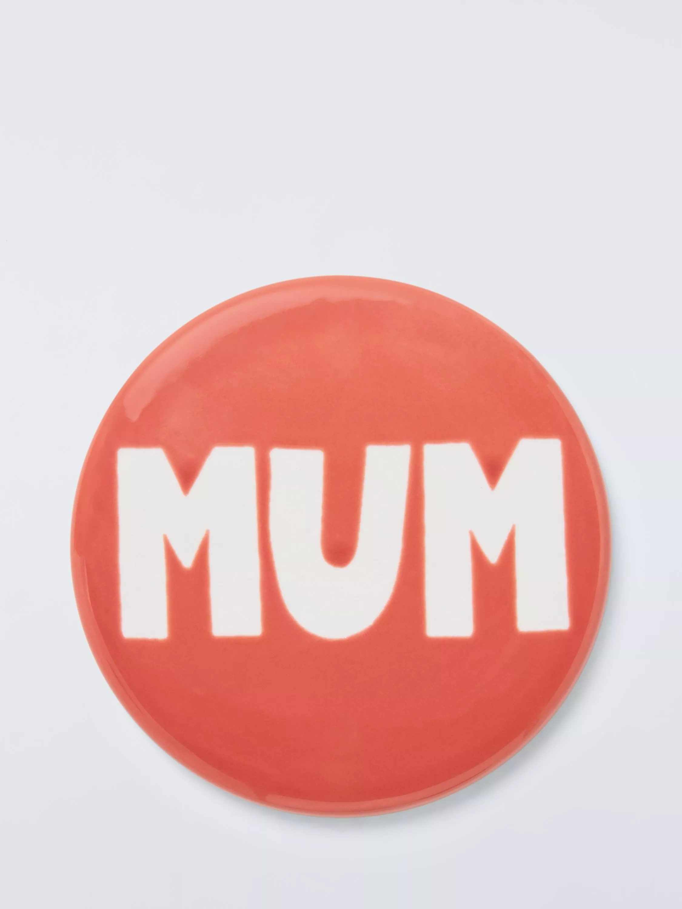 Giftable stoneware coaster finished with a glossy glaze and a wax resist technique creating 'Mum' lettering.