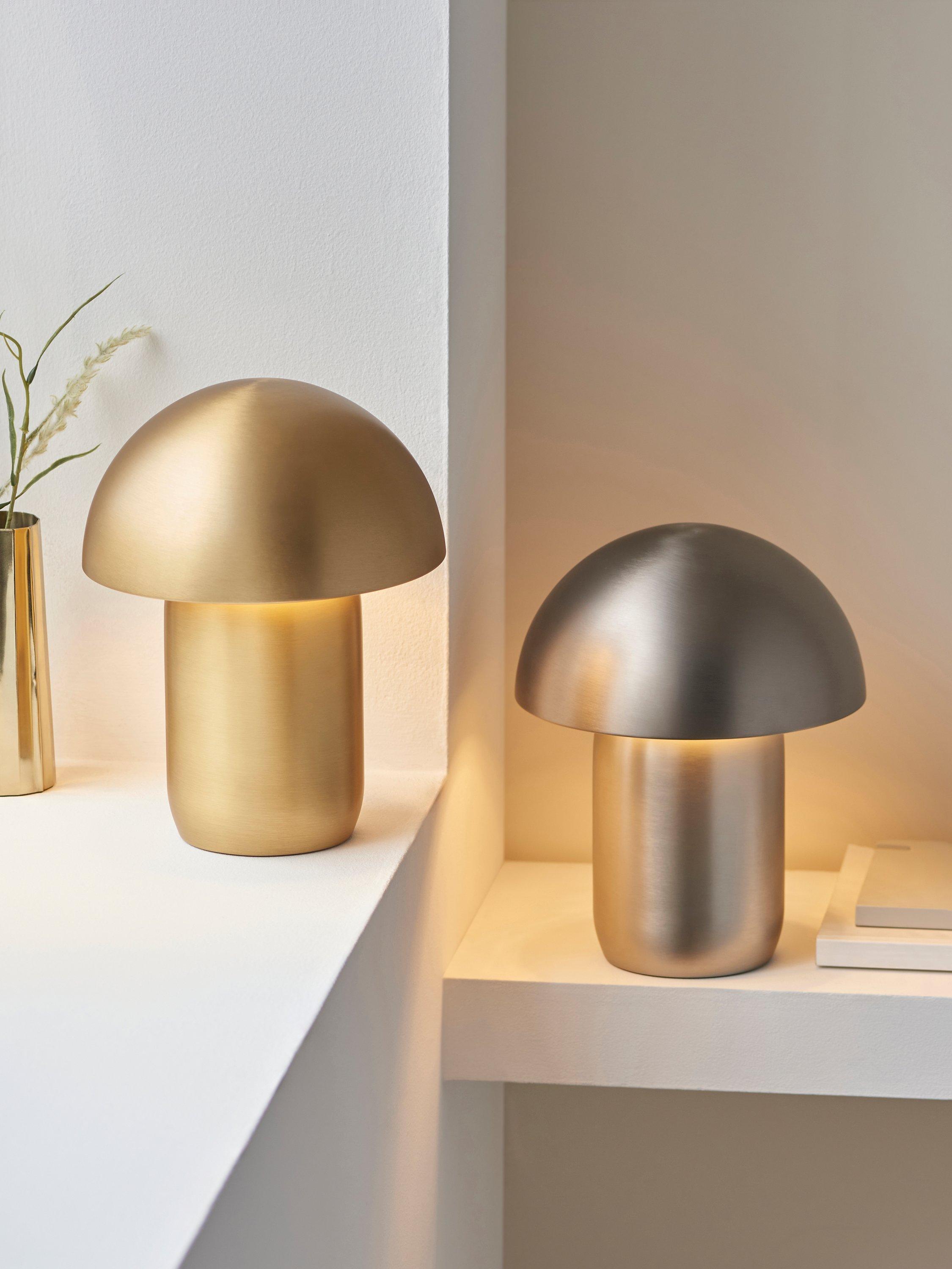 Made from robust steel, this mushroom-shaped LED table lamp has three different brightness settings operated by a touch button. The lamp is rechargeable and will last up to eight hours on a full charge. Great for cosy evenings.
