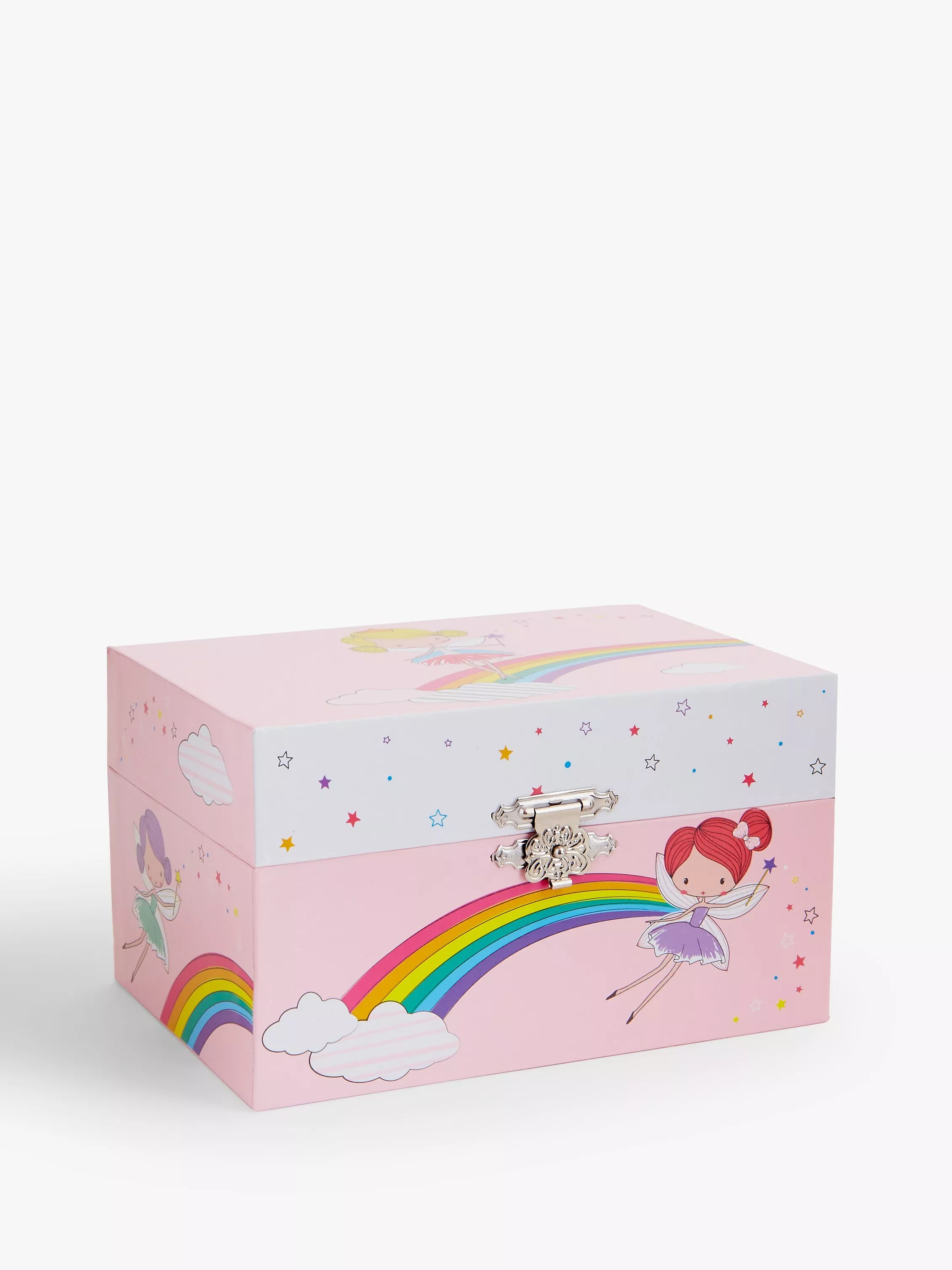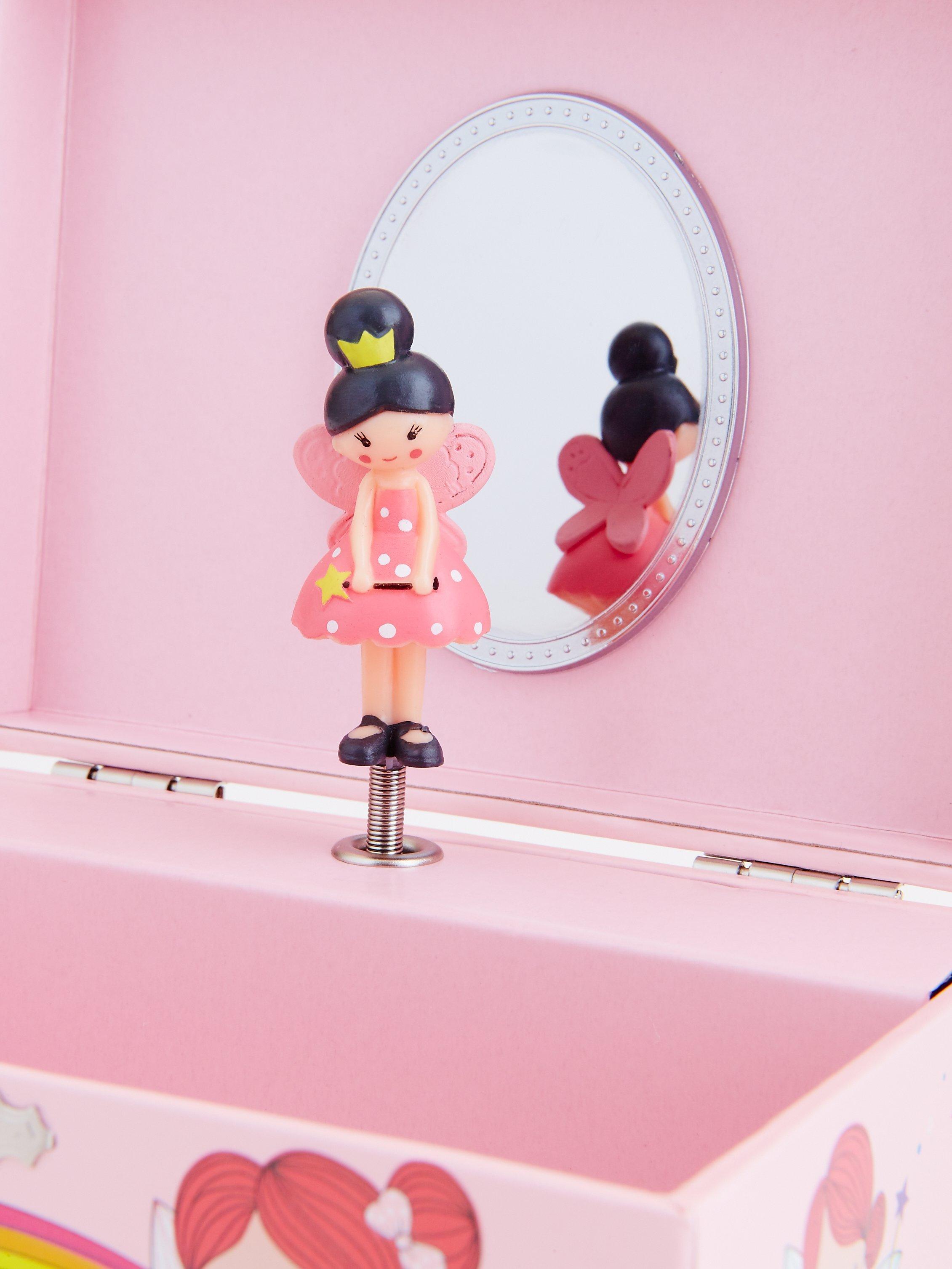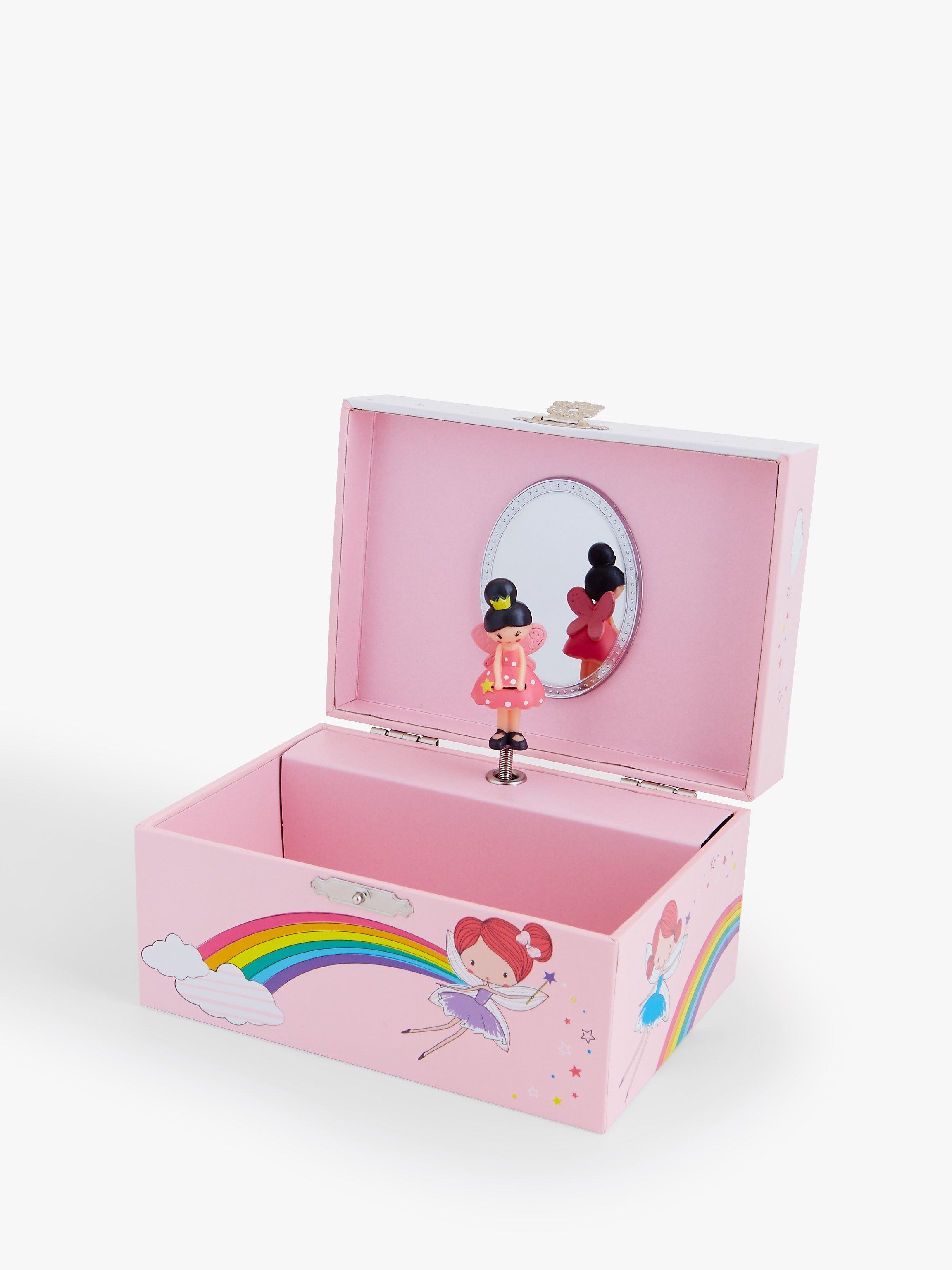 The perfect place to keep those lovely trinkets and jewellery, this very special box also has a fairy who rotates to music when the lid is opened. In a beautiful pink colour and with a rainbow and fairy design on the lid, you can be sure that your bracelets, necklaces and gems have a safe place to stay that's as beautiful as they are.