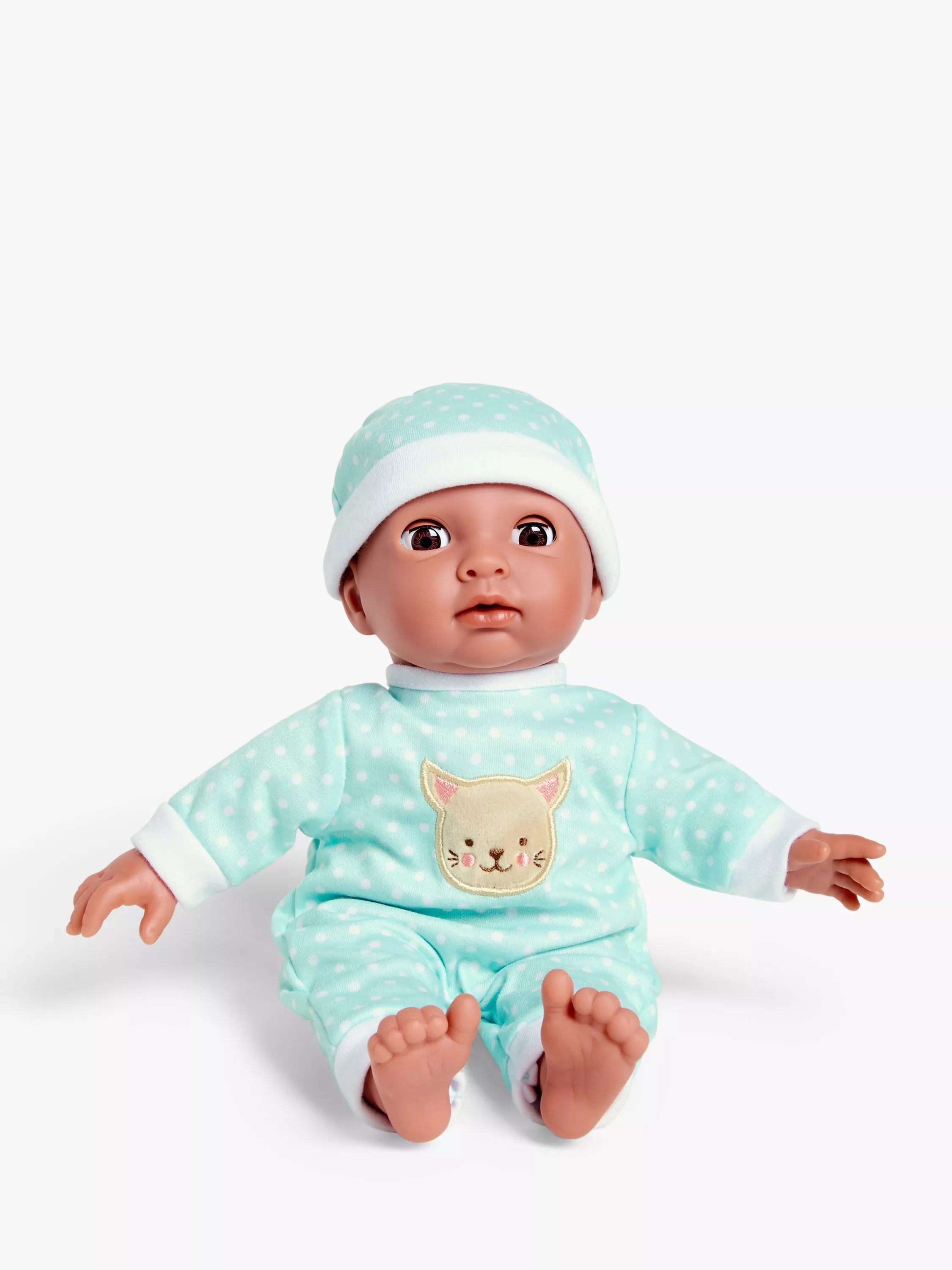 We've made this baby doll ever-so soft and squeezable so they'll always get a warm feeling inside giving it lots of cuddles and attention. The onesie and hat combo also means that wherever they go, they'll look cute as a button!