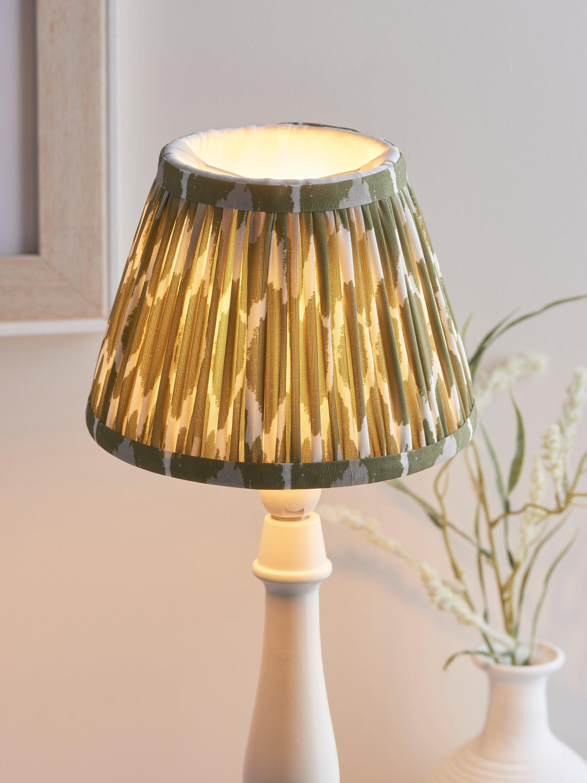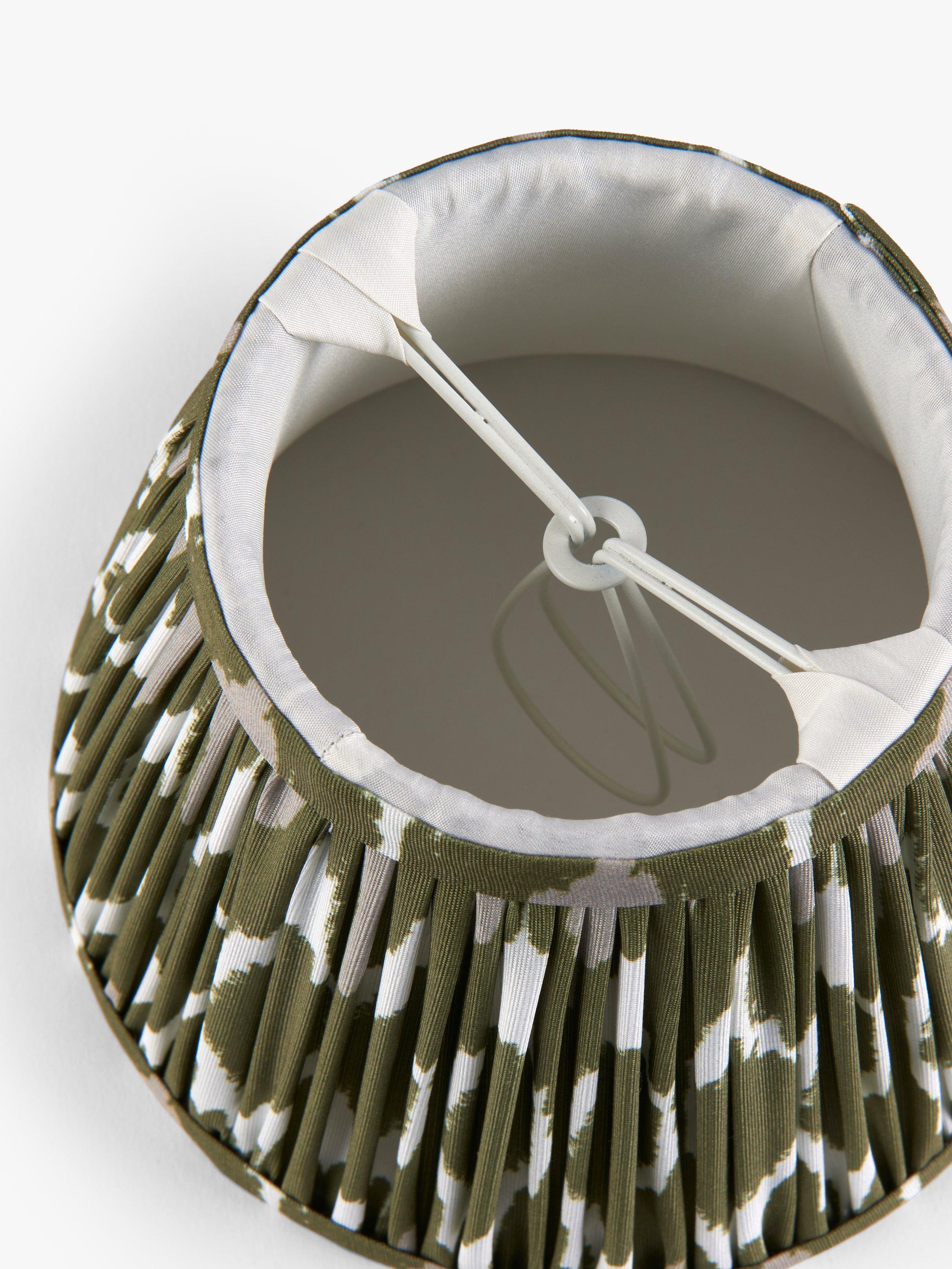 A digitally printed lampshade that's been gathered and pleated, adding colour and charm to your space. Made from a faux-silk fabric, with a soft texture that gives the pattern a joyful tone when lit.
