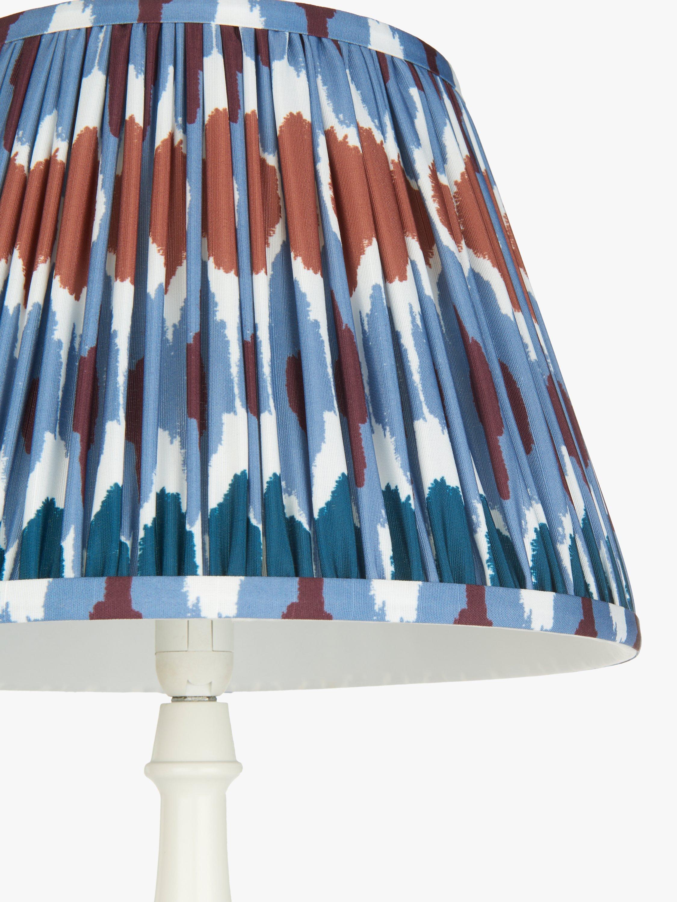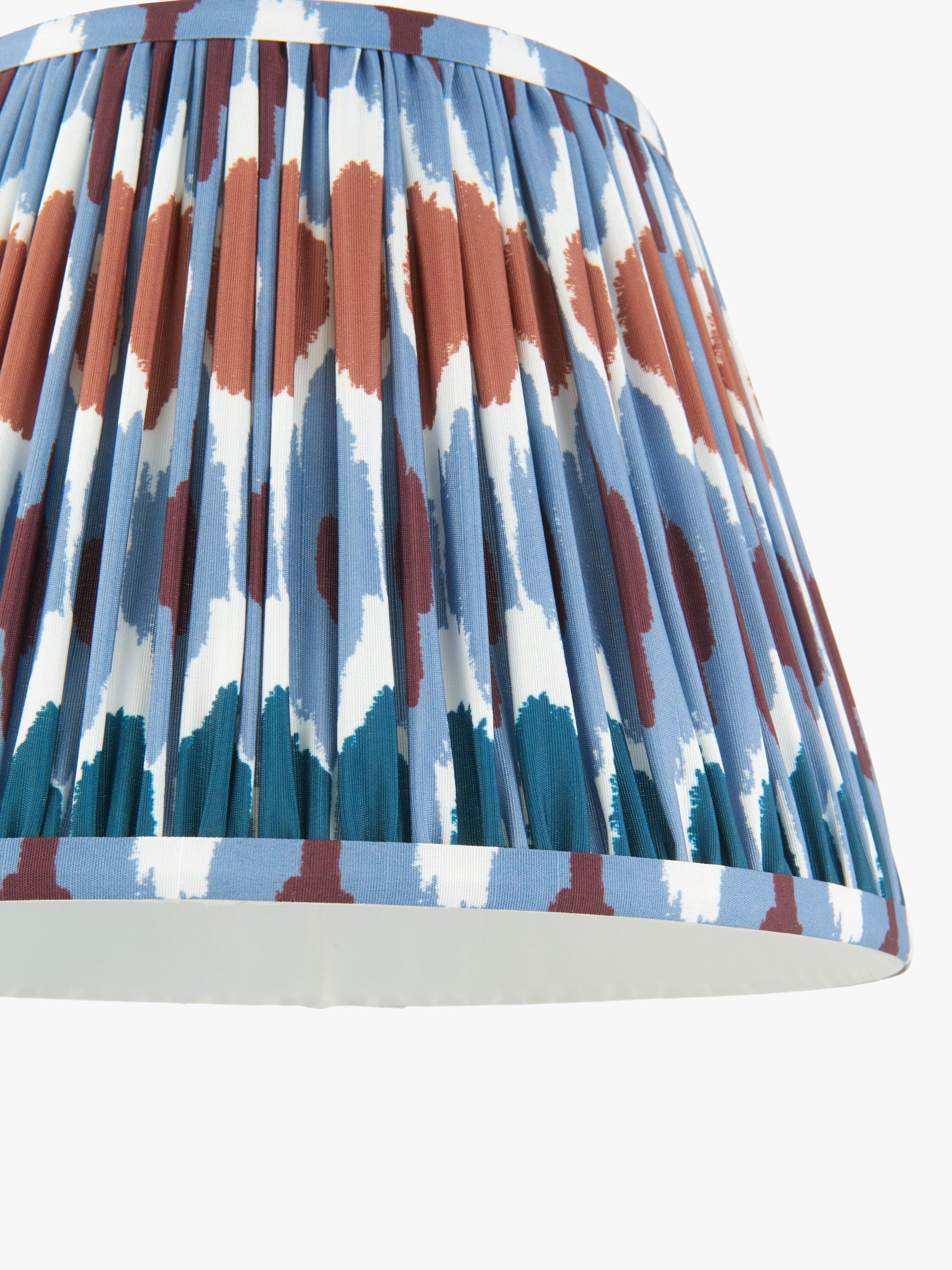 A digitally printed tapered lampshade that's been gathered and pleated, adding colour and charm to your space. Made from a faux-silk fabric, with a soft texture that gives the pattern a joyful tone when lit. Comes with a reversible gimbal for use with table lamp bases and ceiling light fittings.