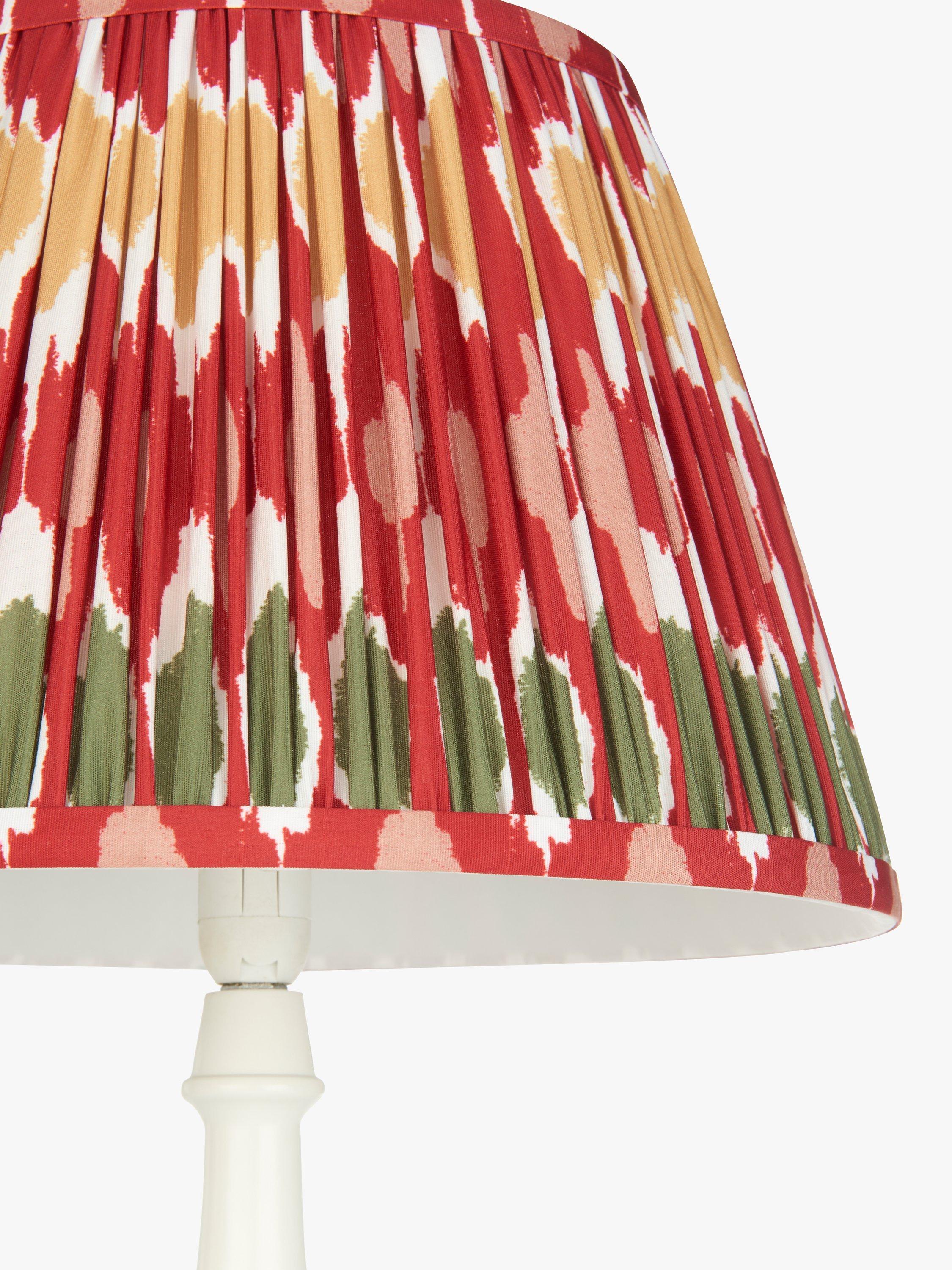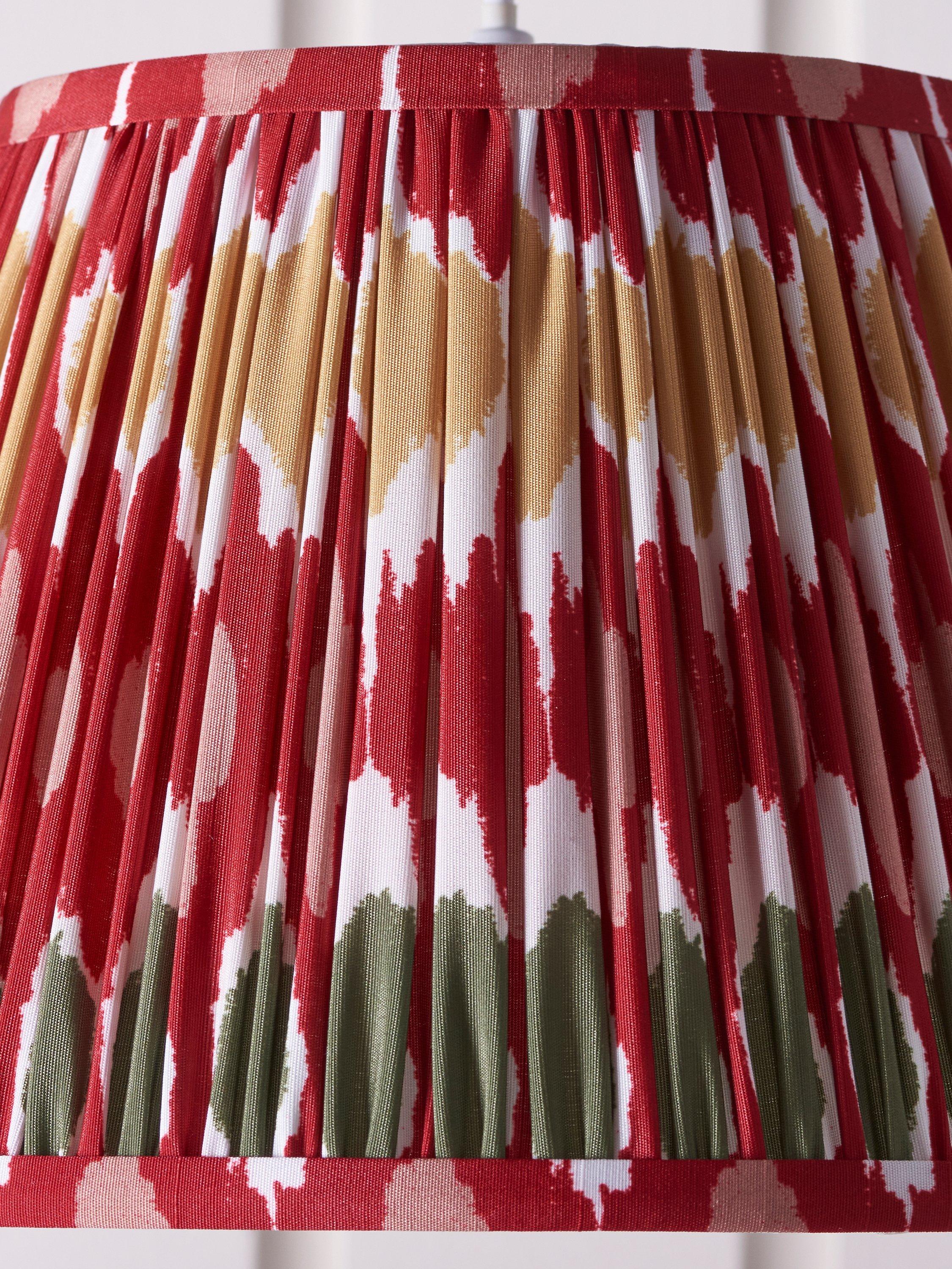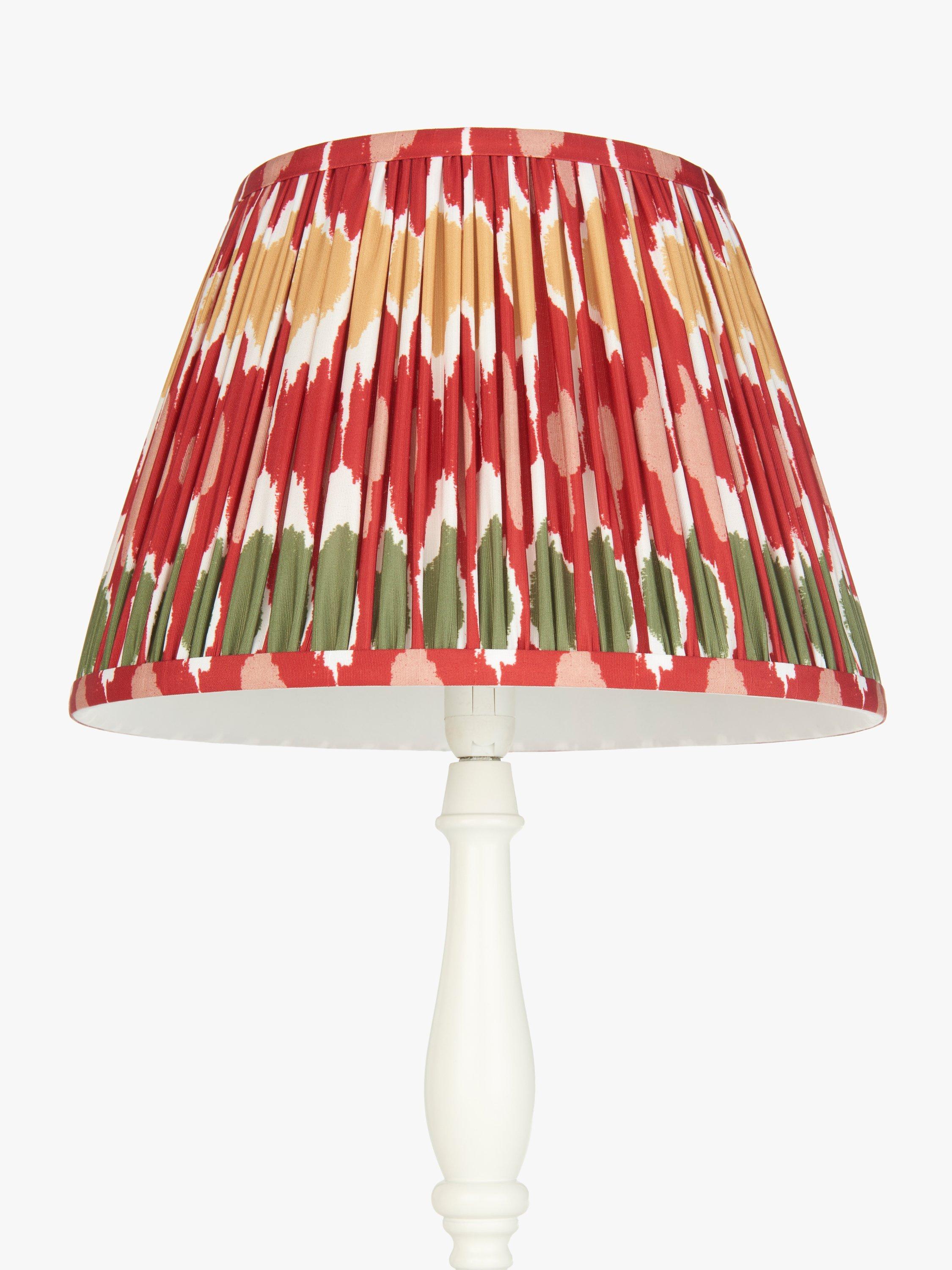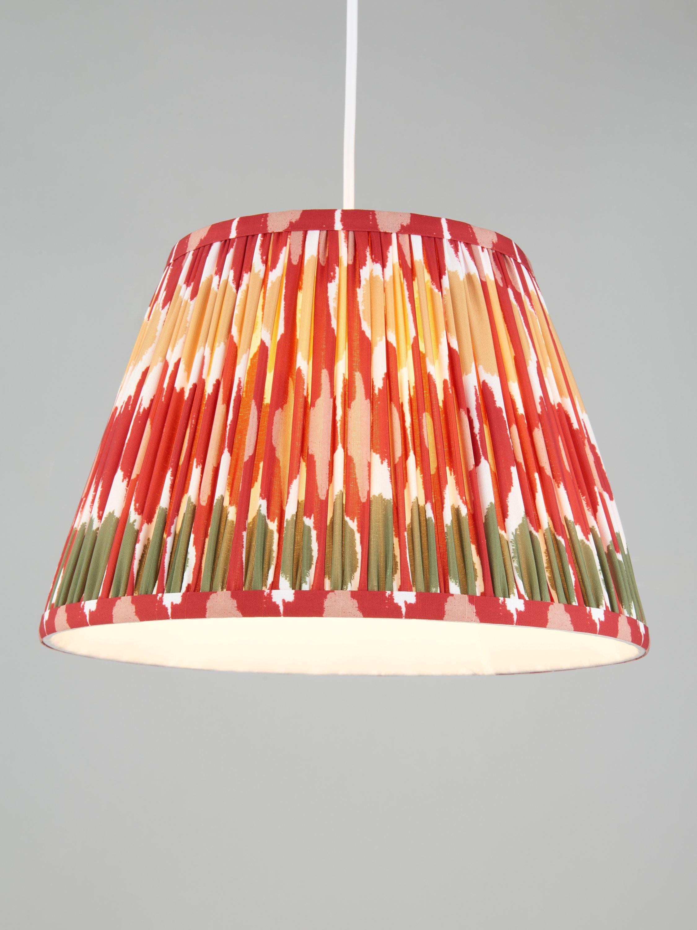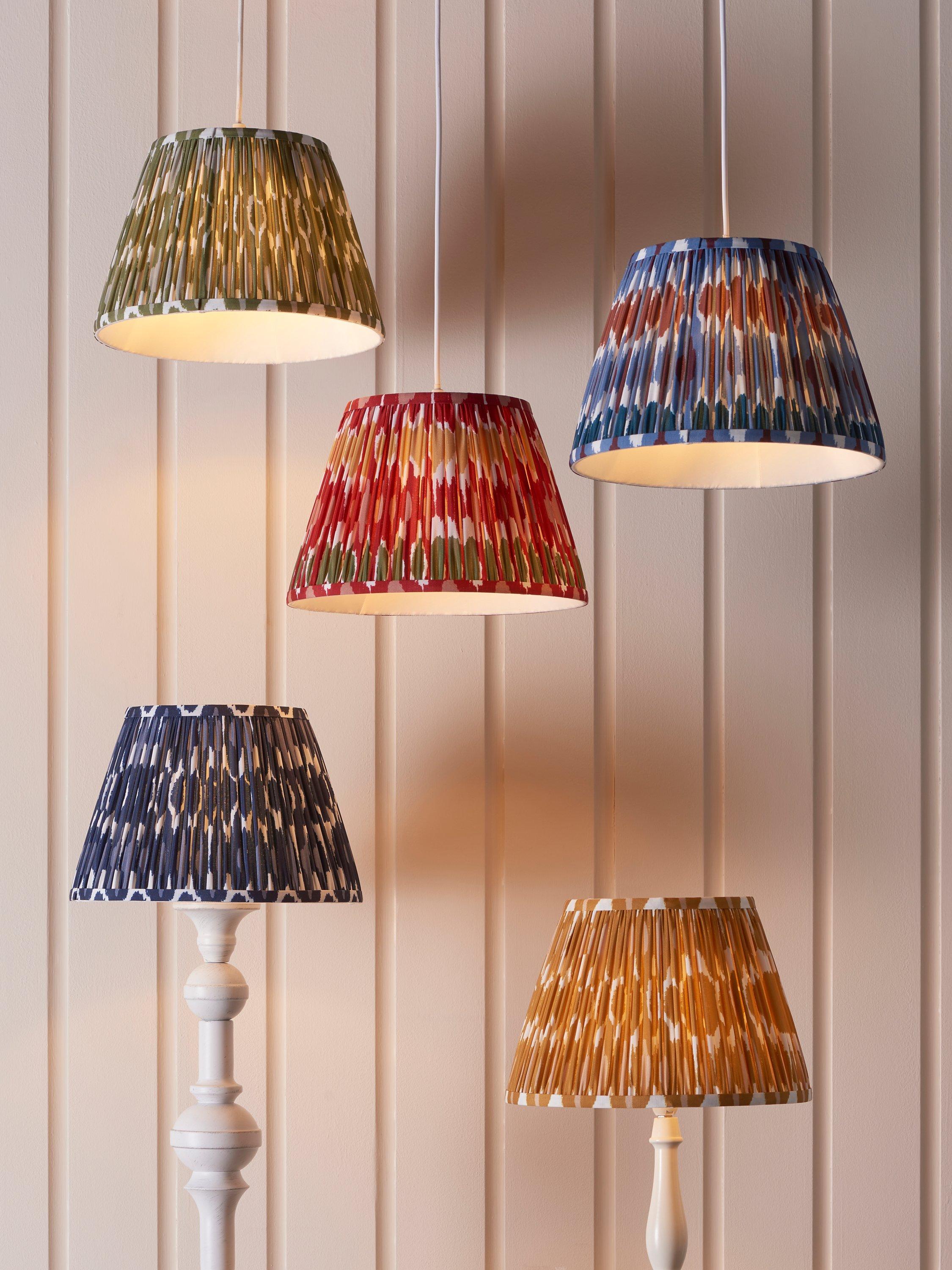 A digitally printed tapered lampshade that's been gathered and pleated, adding colour and charm to your space. Made from a faux-silk fabric, with a soft texture that gives the pattern a joyful tone when lit. Comes with a reversible gimbal for use with table lamp bases and ceiling light fittings.
