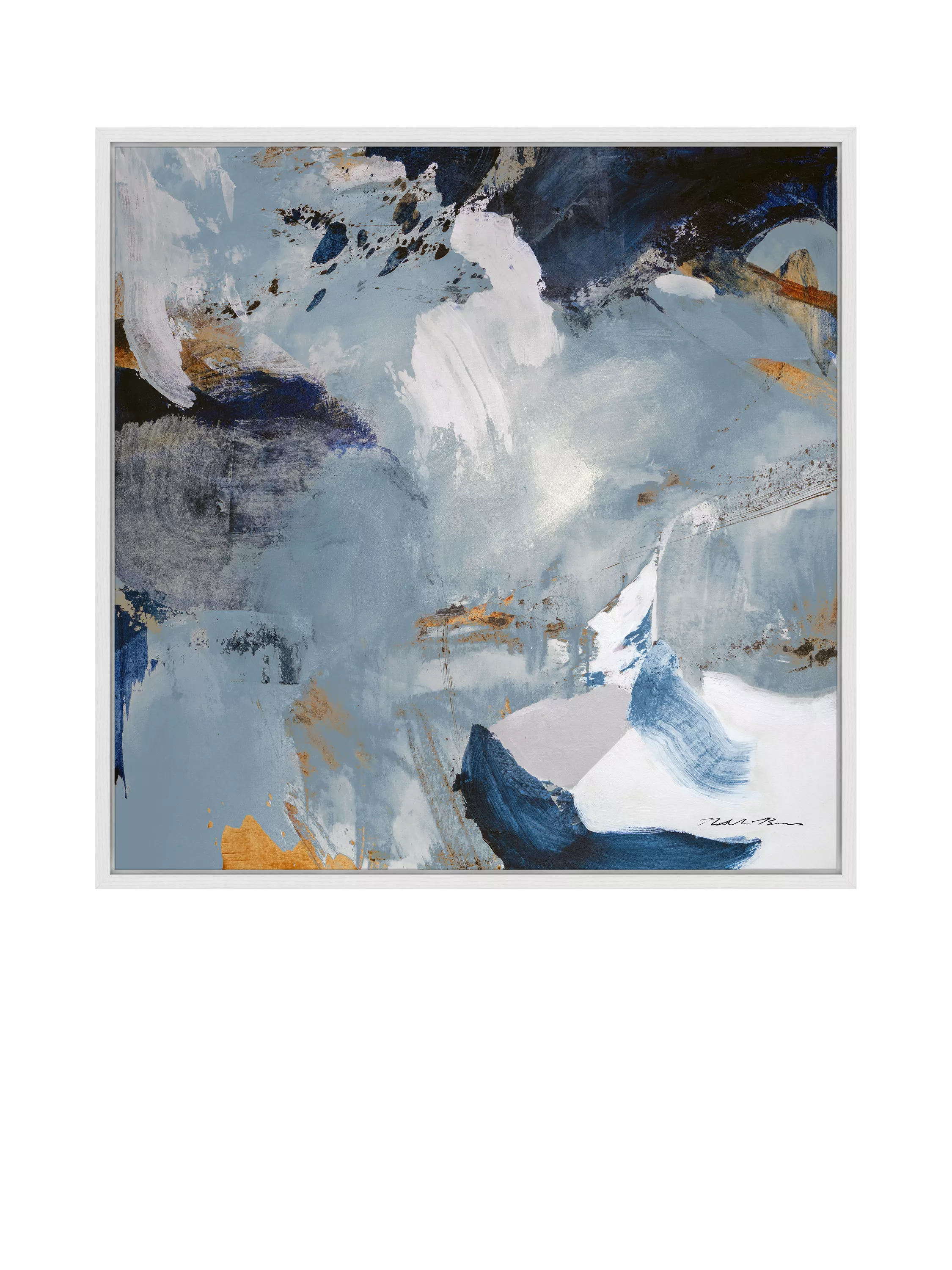 An abstract print, 'Endless Waters' by artist Natasha Barnes. Made in the UK, this colourful canvas wrap print is mounted in a white frame, a deep frame that creates an elegant shadow gap around the picture. Arrives ready to hang on your wall.