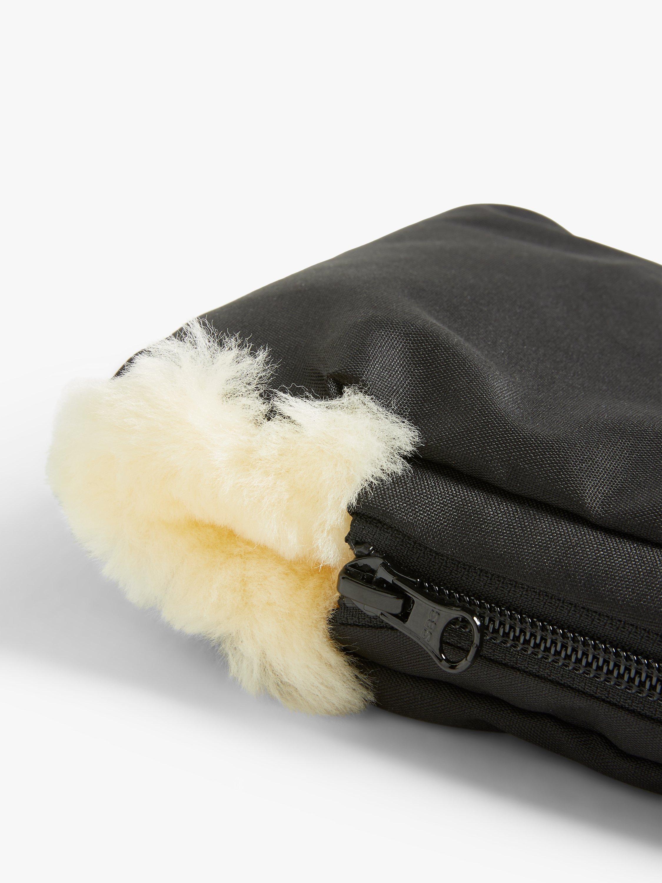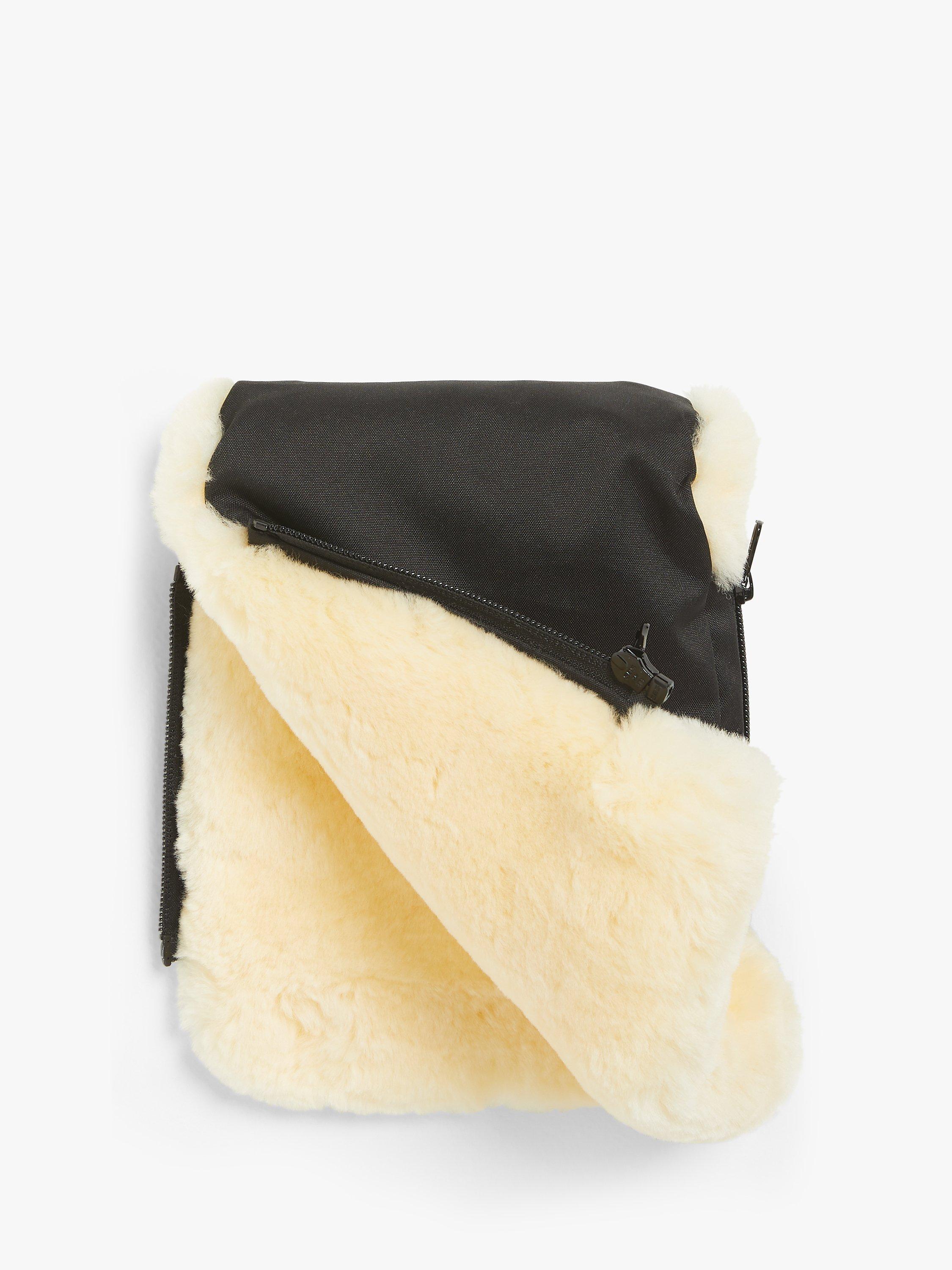These cosy lambskin hand muffs can be attached to any stroller or pushchair, so mum or dad can keep their hands warm whilst pushing baby. You can just pull your hands in and out, so no removing gloves and they remain attached to the pushchair for ease. Featuring a showerproof outer fabric.