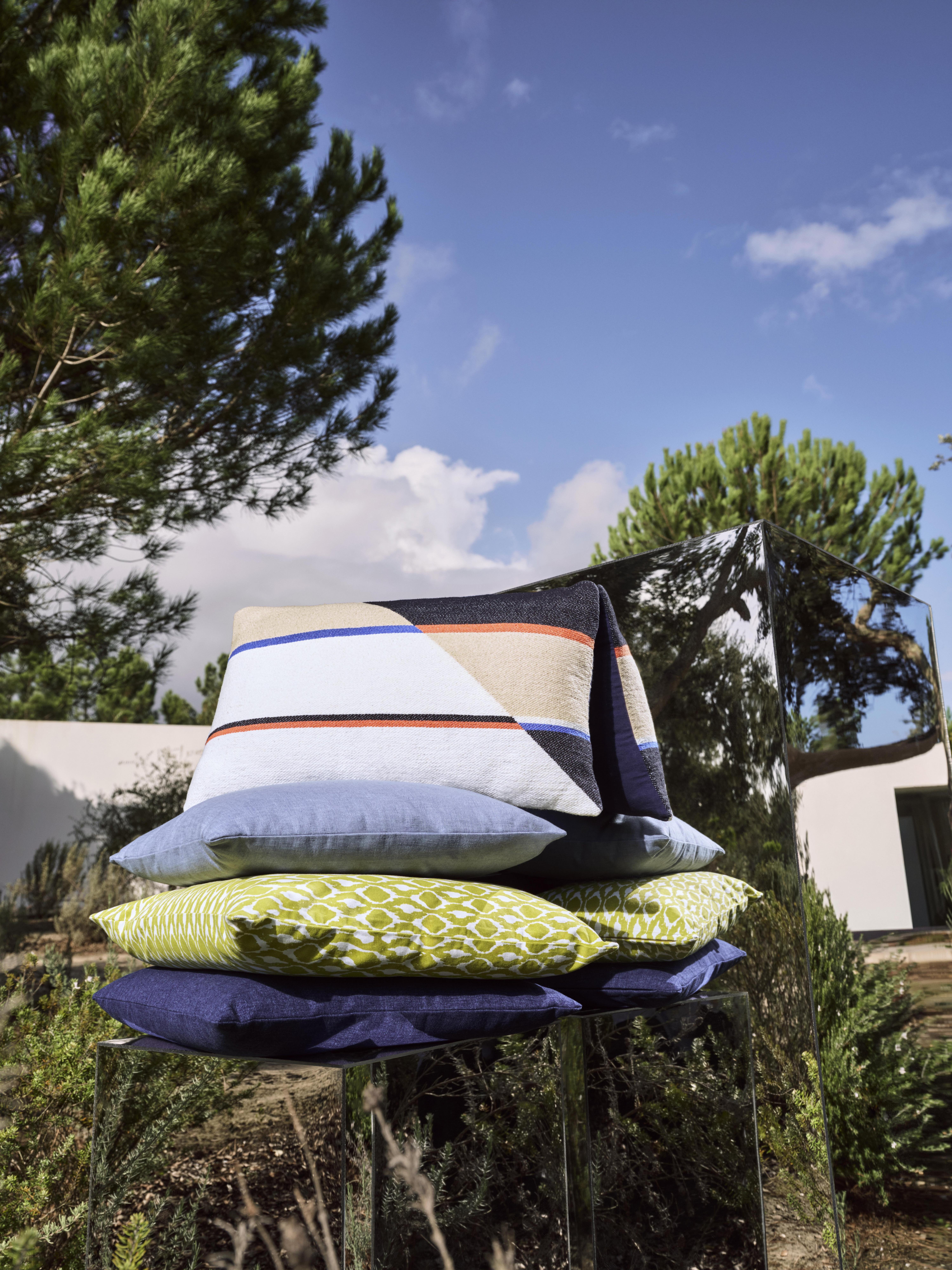 This cushion has a nautical flag inspired design and a water-repellent coating for use with your garden furniture. However, we recommend you store it indoors when not in use.