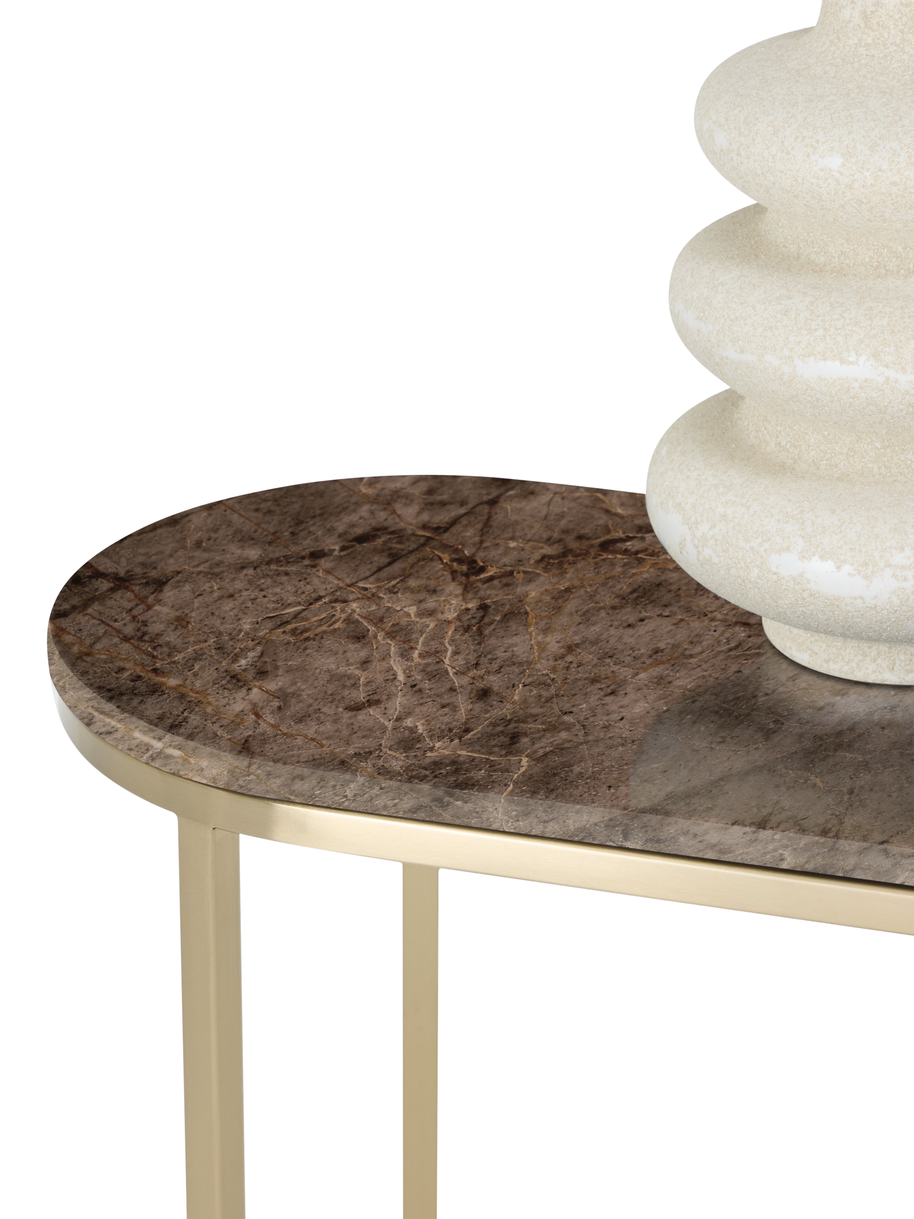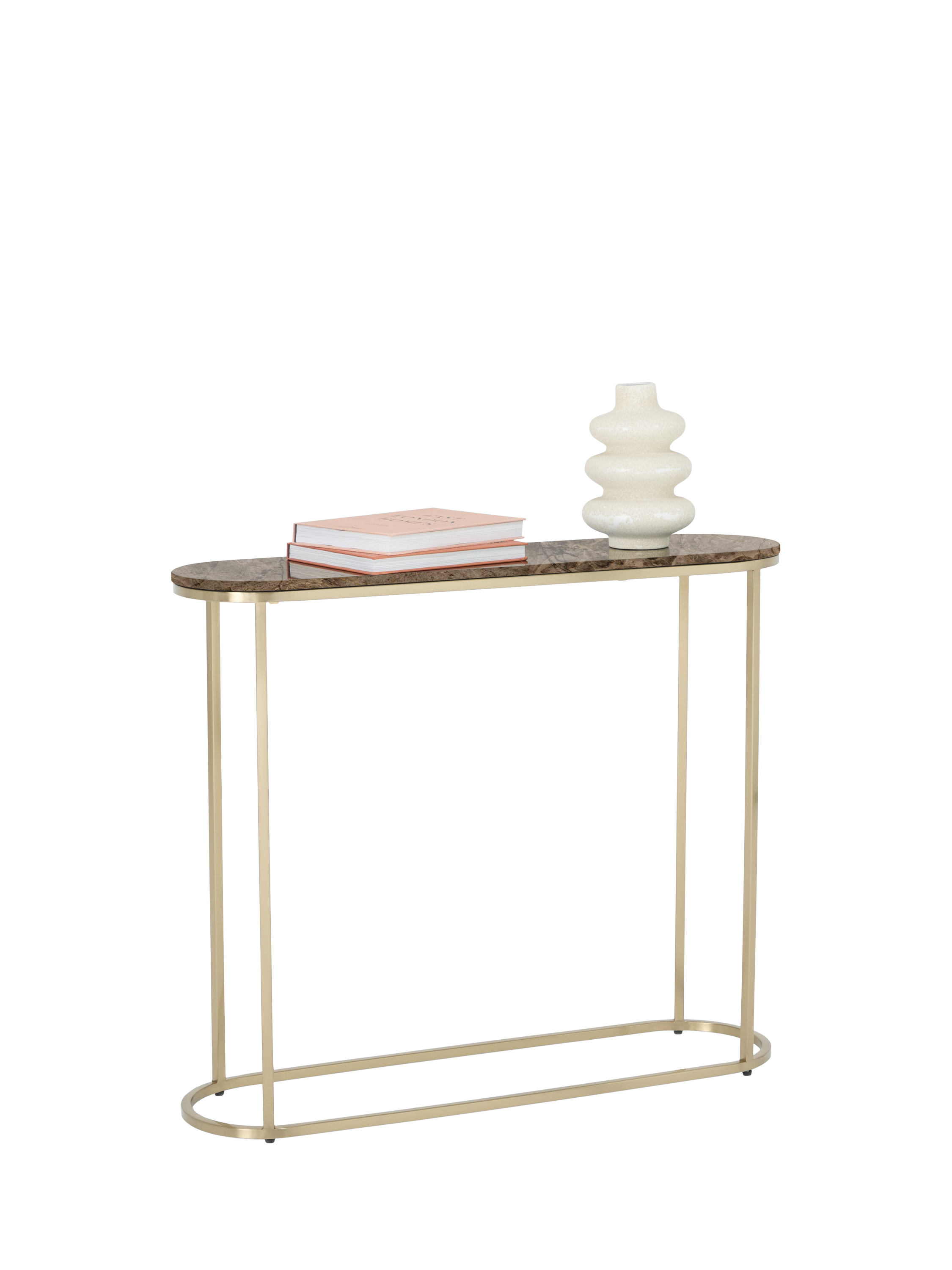 Made from high quality marble with a sleek and shiny metal frame, this console table is perfectly practical for smaller spaces with its minimalist, floating aesthetic.