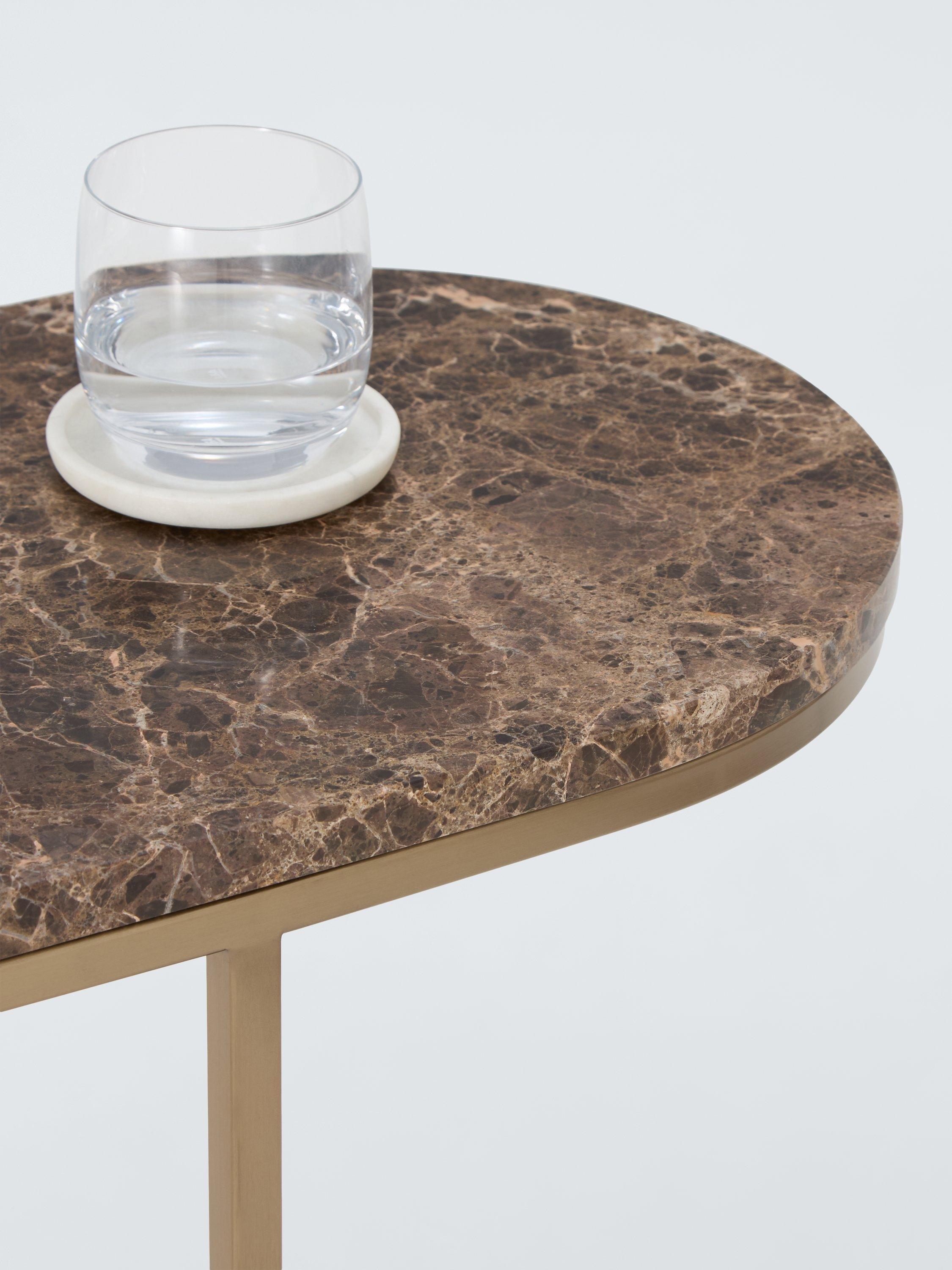Made from high quality marble and a sleek shiny metal frame, this side table is perfectly practical for smaller spaces with its minimalist, floating aesthetic.