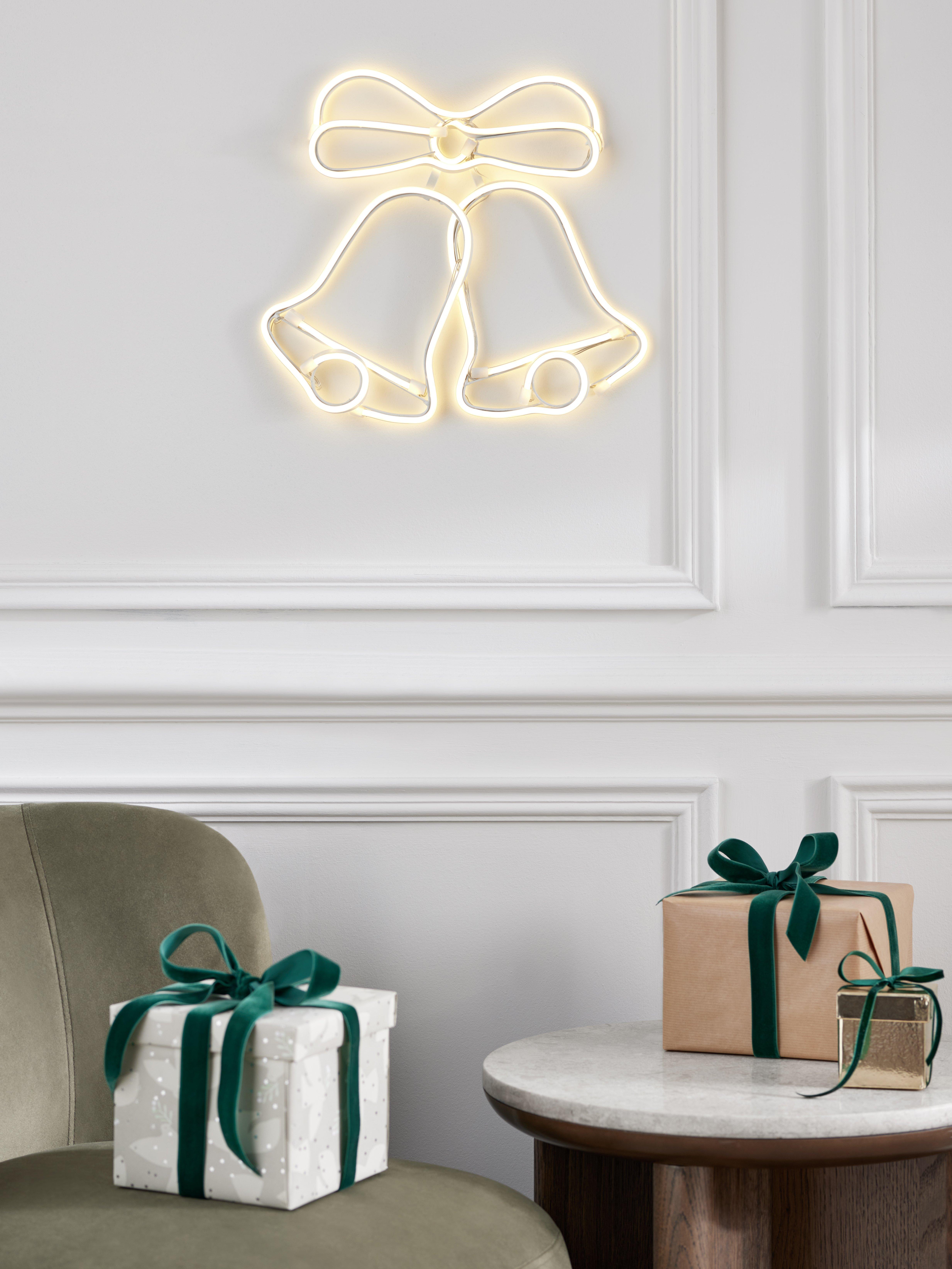 These Christmas bells are made from moulded PVC and lit with LED chips for wonderful wall decoration to light up your home. You can also use it as a wedding venue decoration.