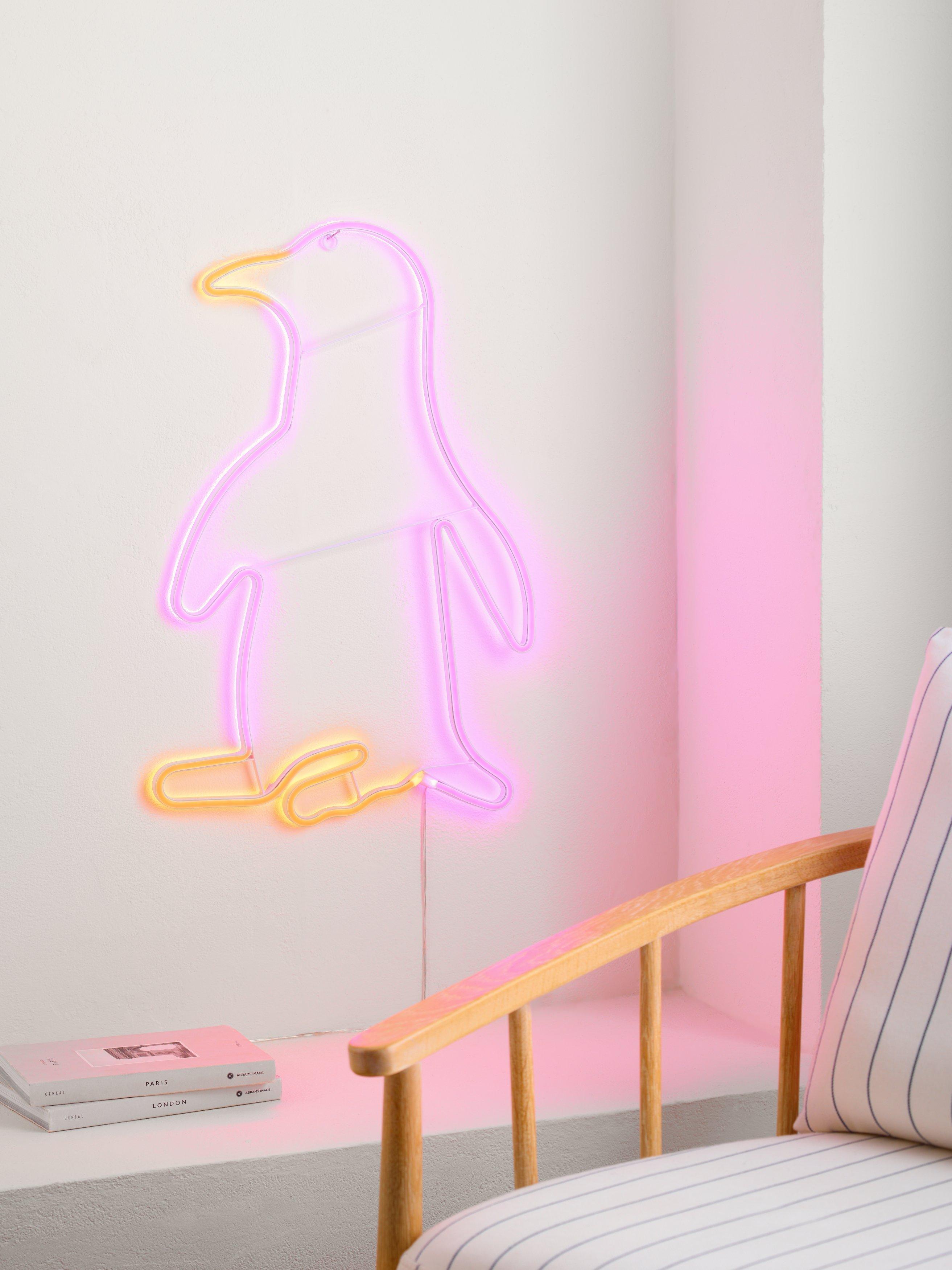 This neon penguin light is made from moulded PVC and lit with LED chips for a cool and contemporary wall decoration to light up your home.