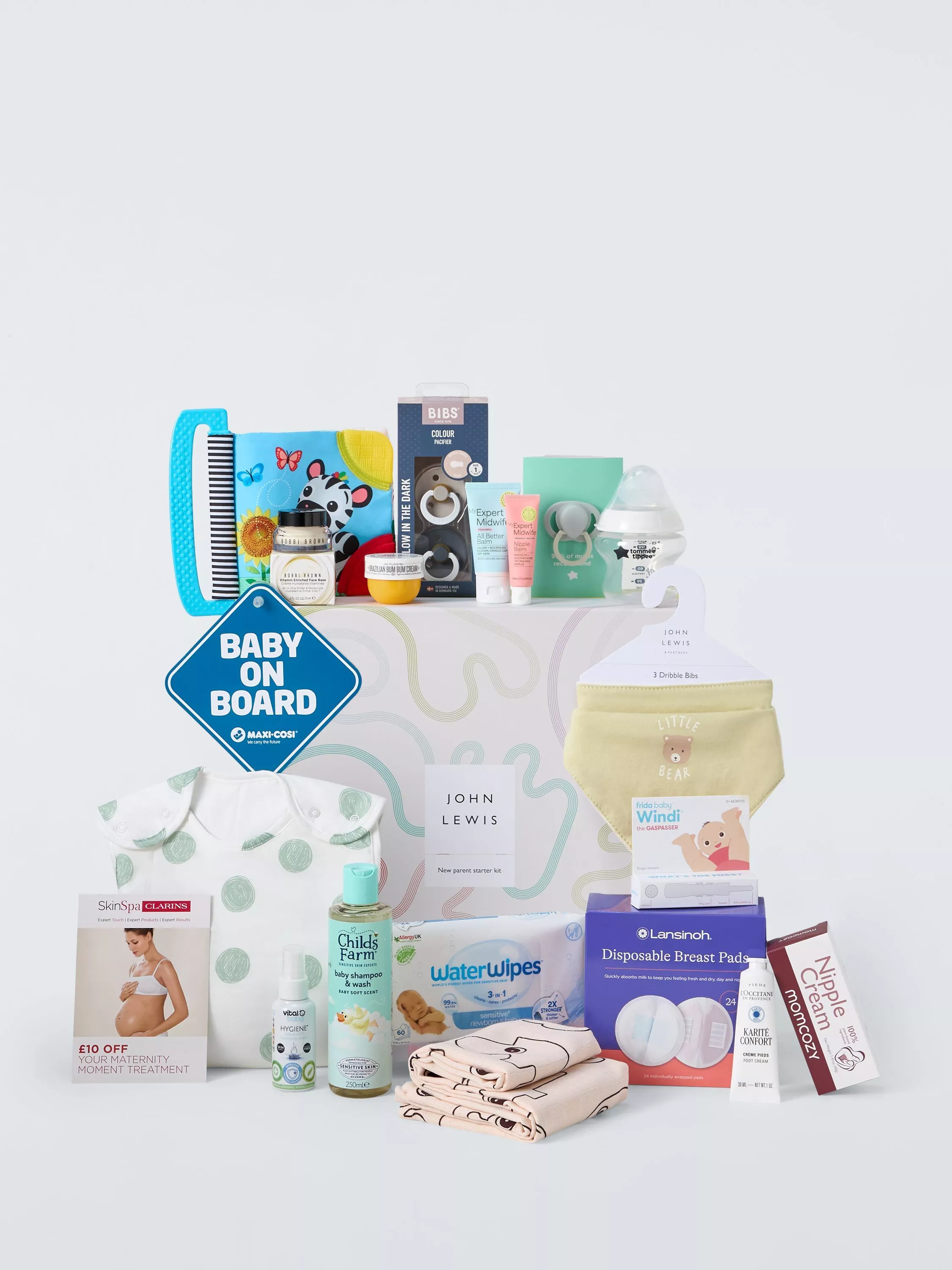 Prepare for your new arrival with a curated box designed for mum and baby. We've included luxurious treats for mum from brands like Clarins and L'Occitane, along with practical support items like nipple creams and breast pads. For baby, the kit has all sorts from bottles and soothers to a cosy sleeping bag, all to help get you started with parenthood.
