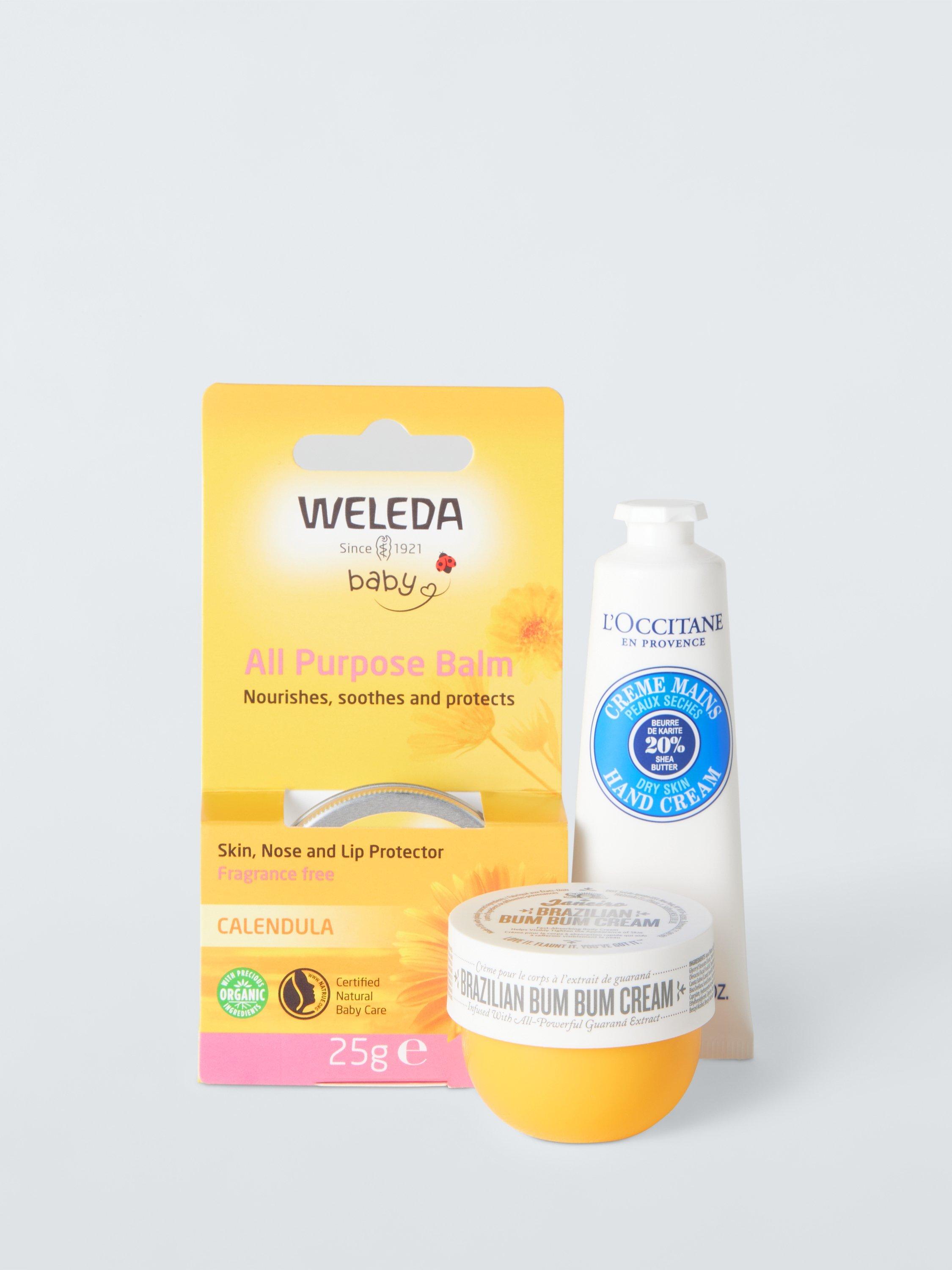 - Weleda Baby All Purpose Balm - This neat little pot contains a soothing balm with a multitude of uses. Made with nourishing organic sunflower and avocado oils, luxurious cocoa seed butter, protective candelilla and carnauba waxes, infused with skin-caring calendula extract. Suitable for redness, chafing or dryness – from dribble rash to sore noses. Try it on the upper lip to soothe skin irritated by the constant nose blowing of seasonal sniffles. Or apply a little balm around the rim of each nostril as a barrier to help trap dust, pollen or other allergens. The fragrance-free honey-coloured product has been dermatologically tested for suitability on highly sensitive skin and is recommended by midwives
