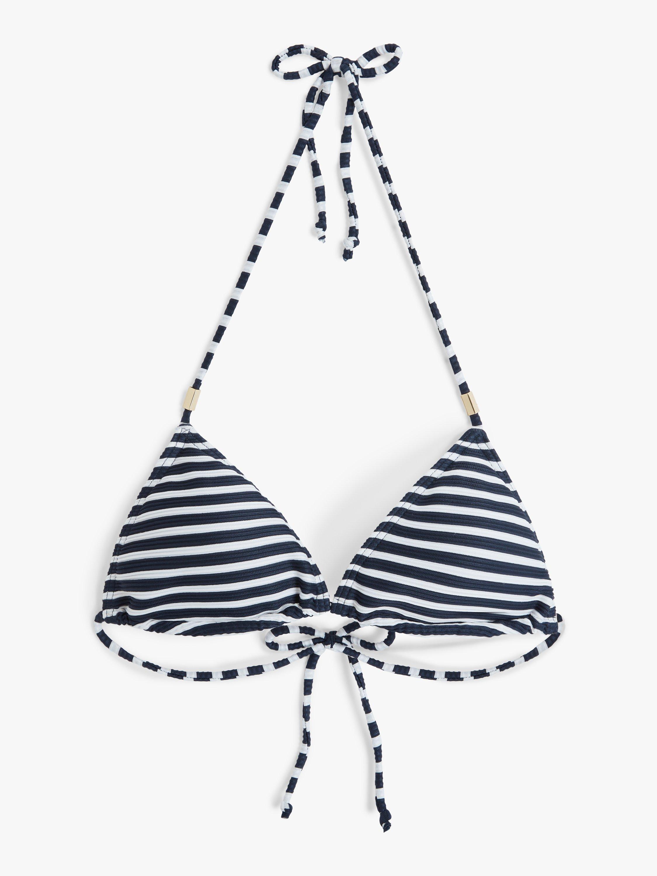 Timeless and textured, we made this bikini top from ribbed fabric with bold yarn-dyed stripes. Giving you the lightest coverage out of all of our styles, we included removable bust cups for a rounded shape and added adjustable soft ties that fasten at the neck and back for a comfortable fit that suits you. Try this delicate piece with our matching bikini briefs for a coordinated look.
