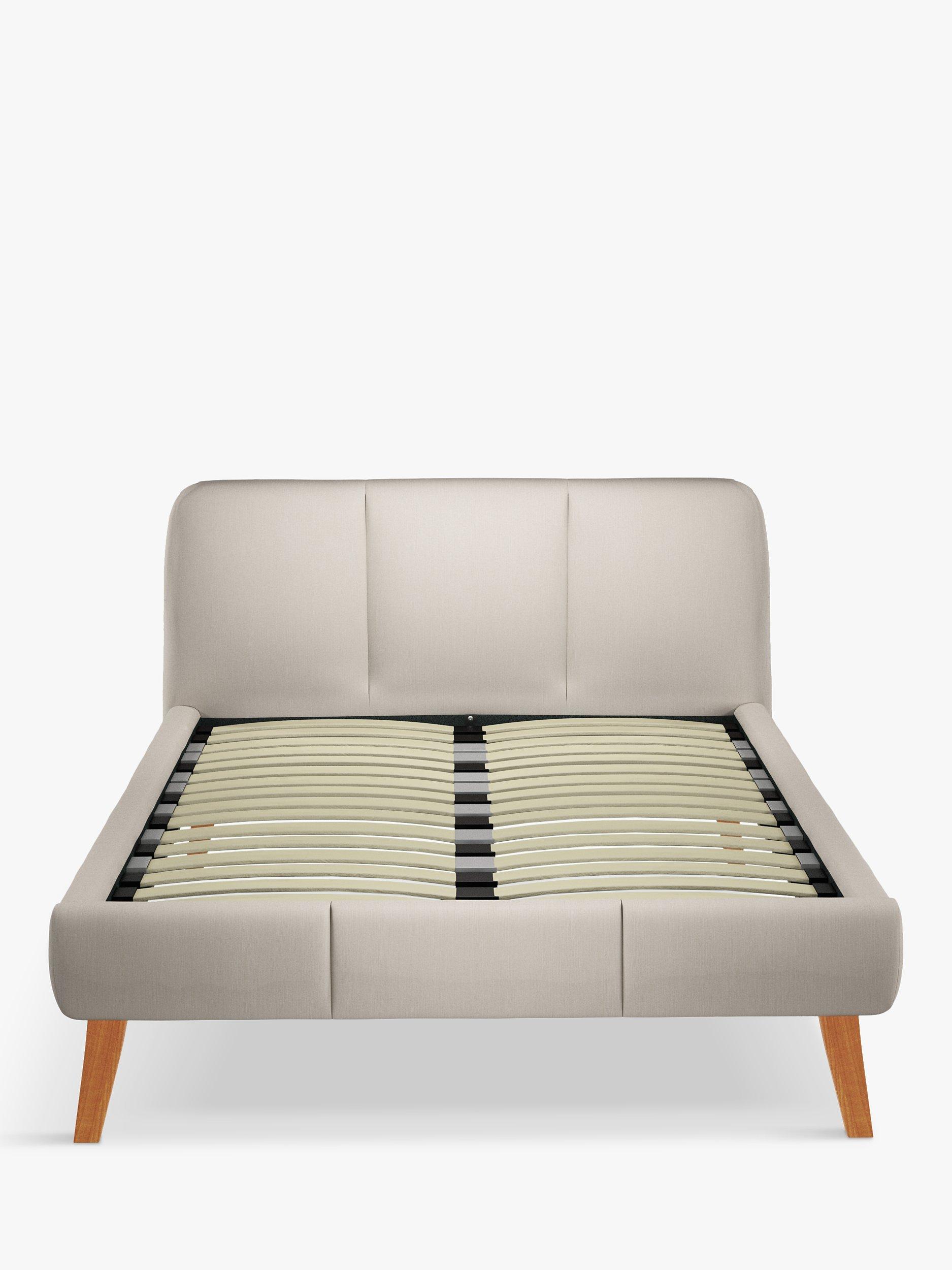 Meet Nite. Our beautifully upholstered, gently curved bed frame with a luxe modern design that will add texture and style to your bedroom. Sitting on splayed solid wooden legs, it's available in a range of fabrics and shades and has a plush padded headboard and supportive sprung slats in the base.