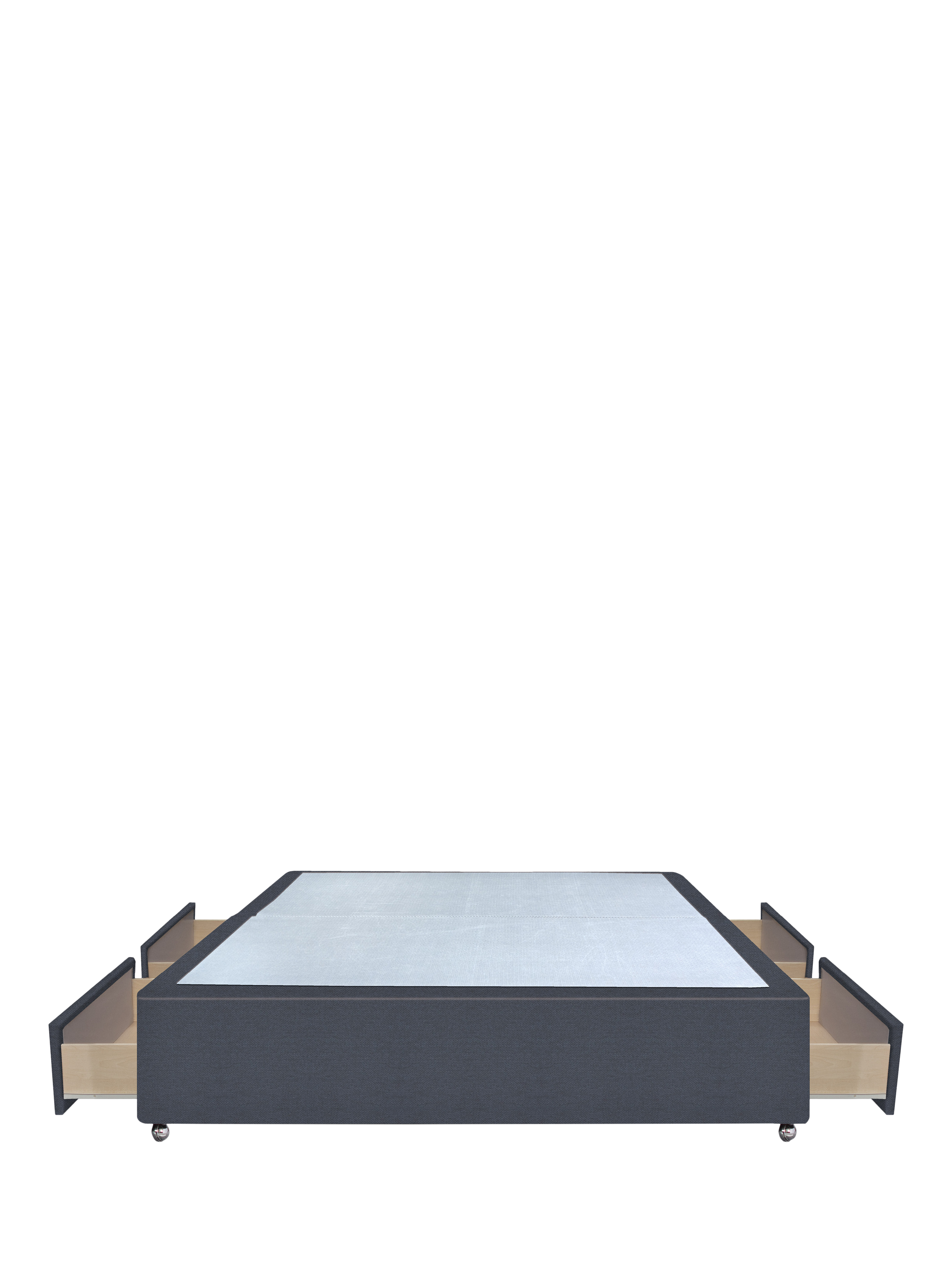 With a solid non-sprung platform top, this base offers sturdy, reliable support. Four wide drawers provide a practical storage solution, helping to keep your bedroom calm and clutter free. Finished with stylish chrome castors.