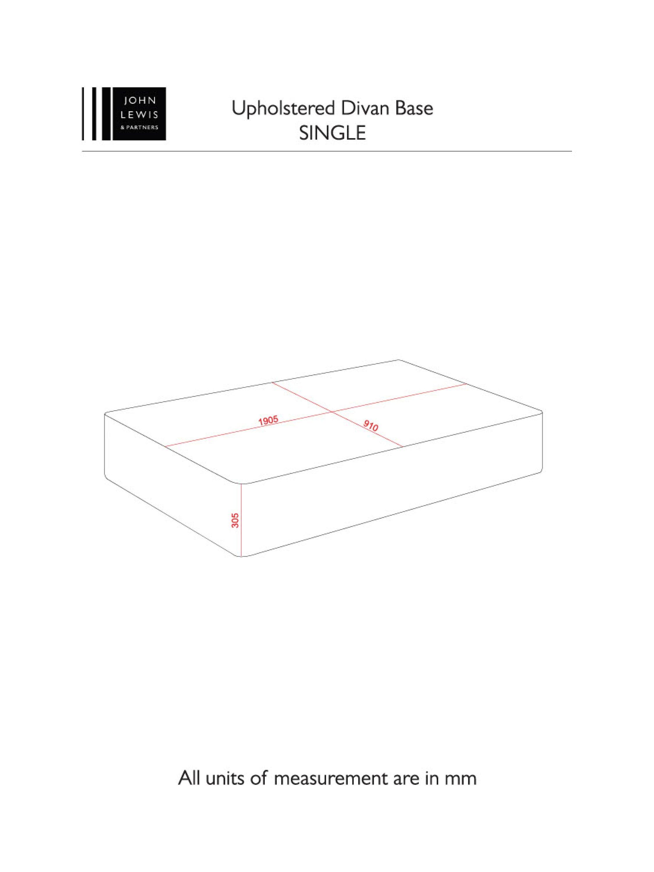 John LewisNon-Sprung Upholstered Divan Base, Single, Brushedweave Silver