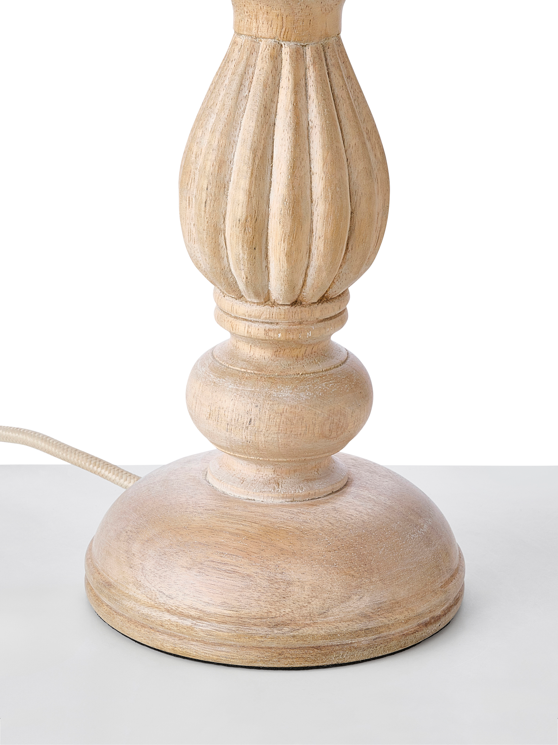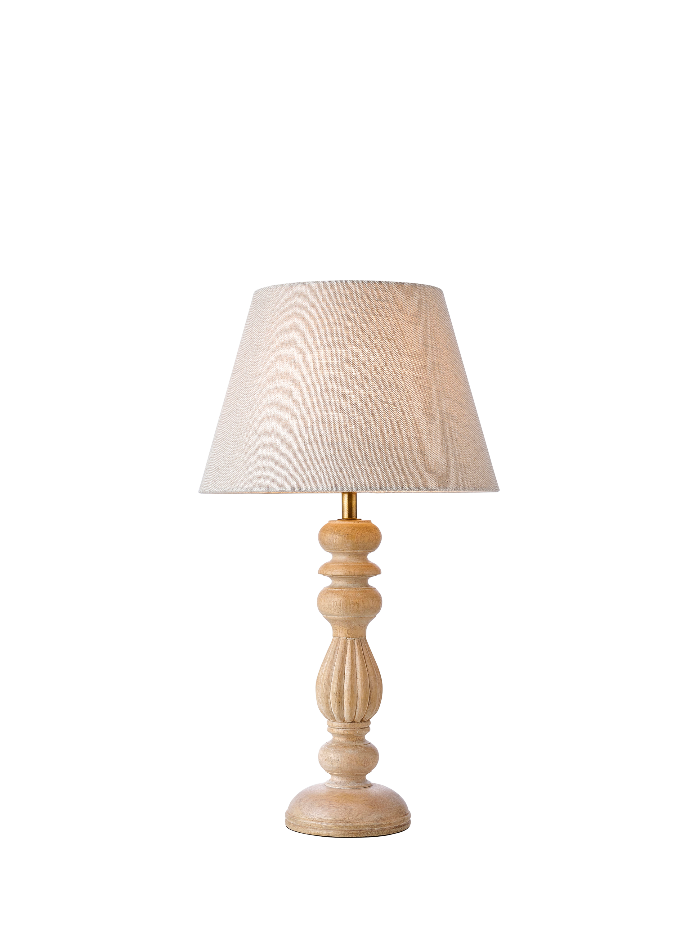 This timeless sculpted lamp base is handmade from solid mango wood in India. Its soft white tones and unique wood grains, together with its sculptural shape, add an elegant, natural look to your space. Complemented with brass-plated detail, each base is unique. Pair it with a linen lampshade to complete the look.