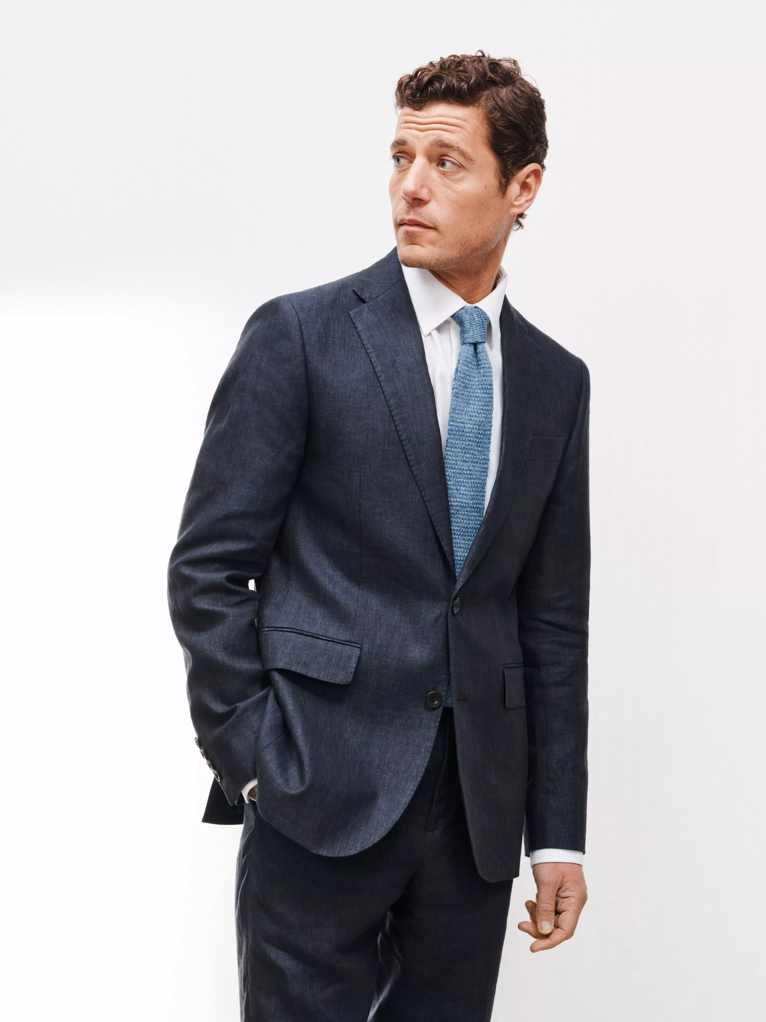 Tailored to our regular fit specification, this jacket has a softer shoulder line and is tapered through the waist. Inside, the jacket is piano-faced and fully lined in navy with contrast white piping.