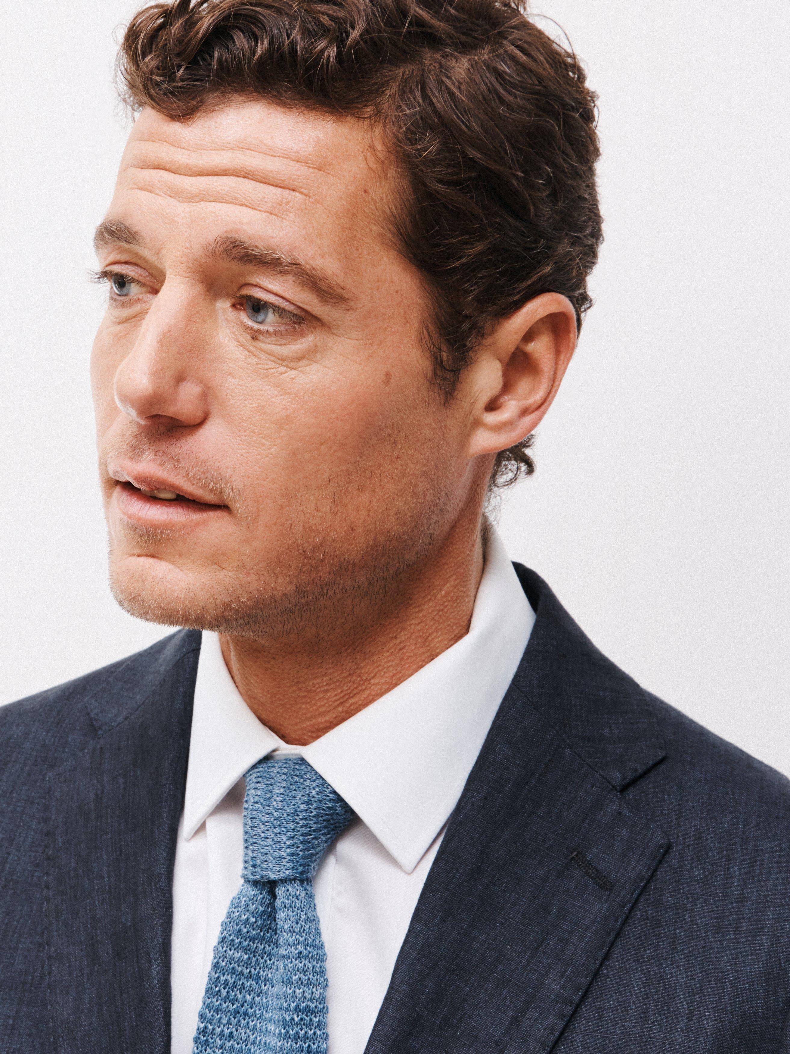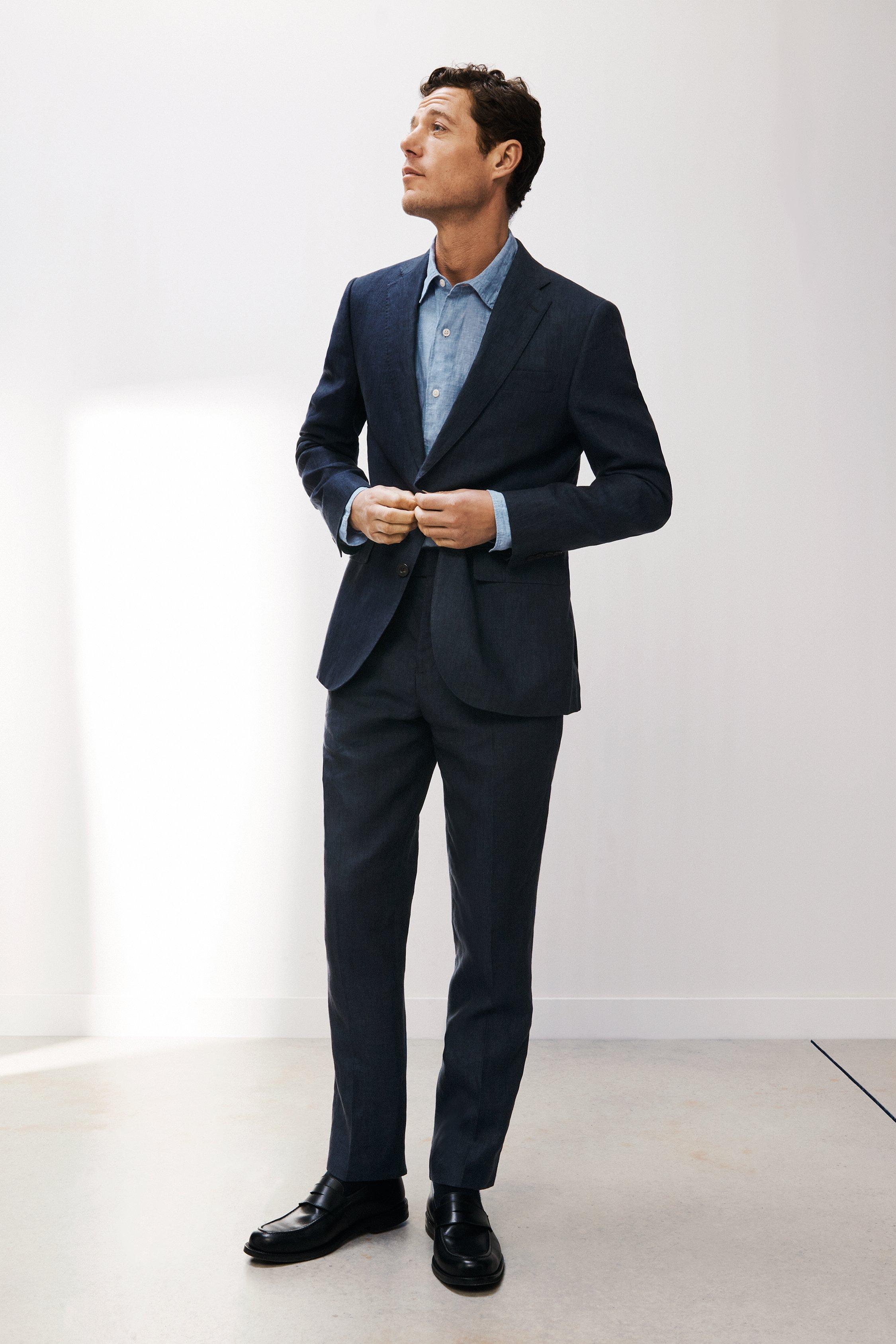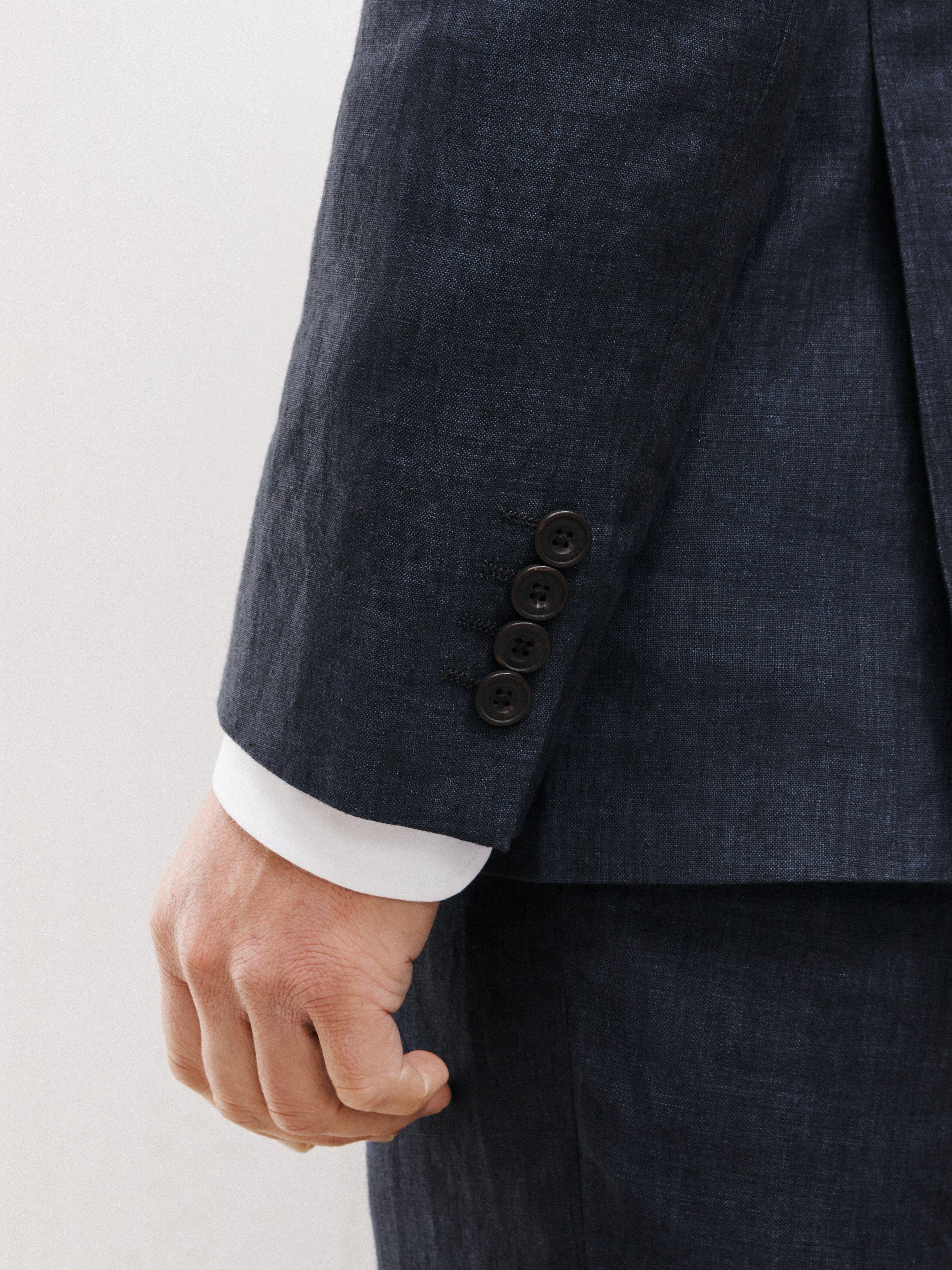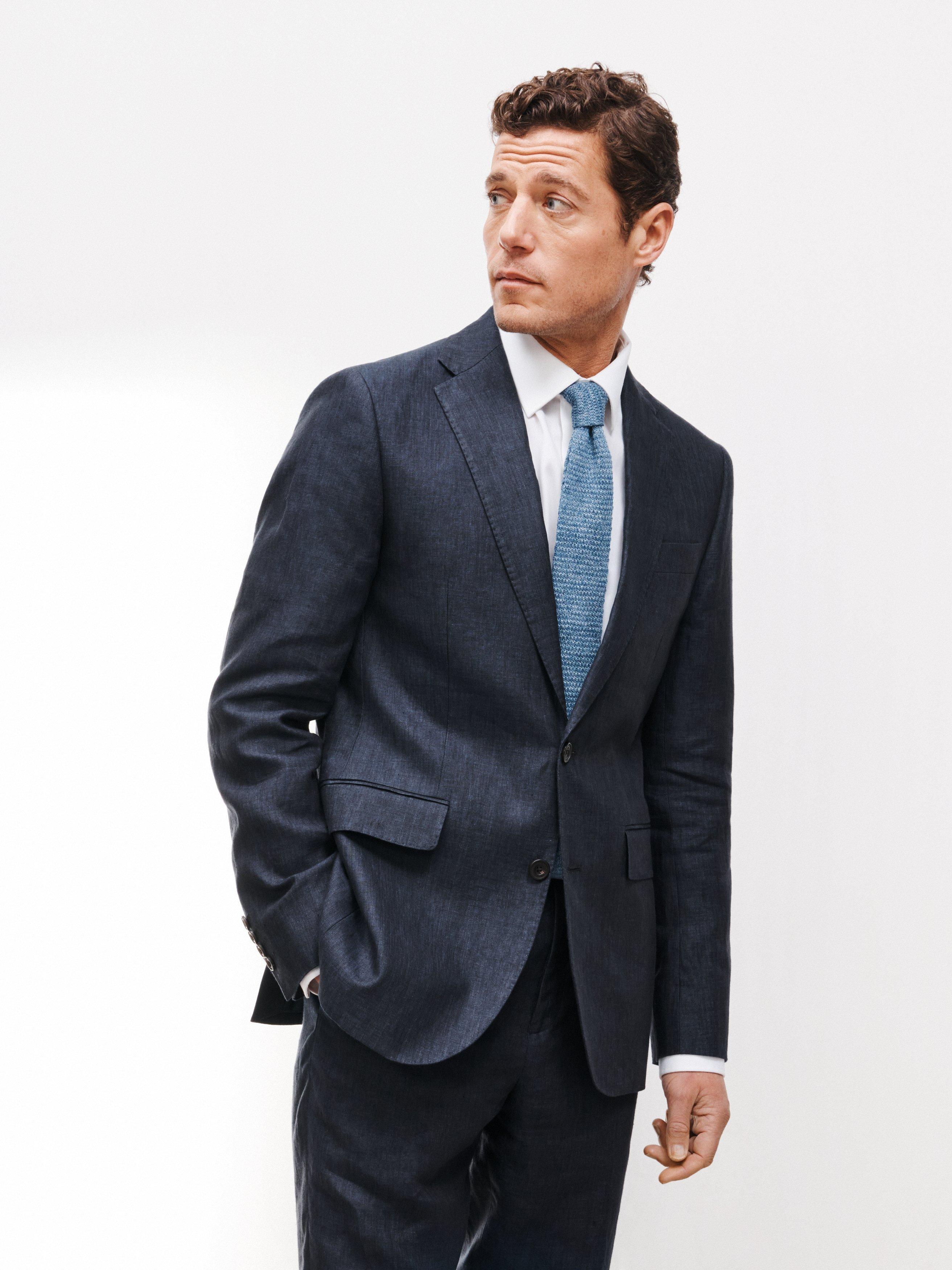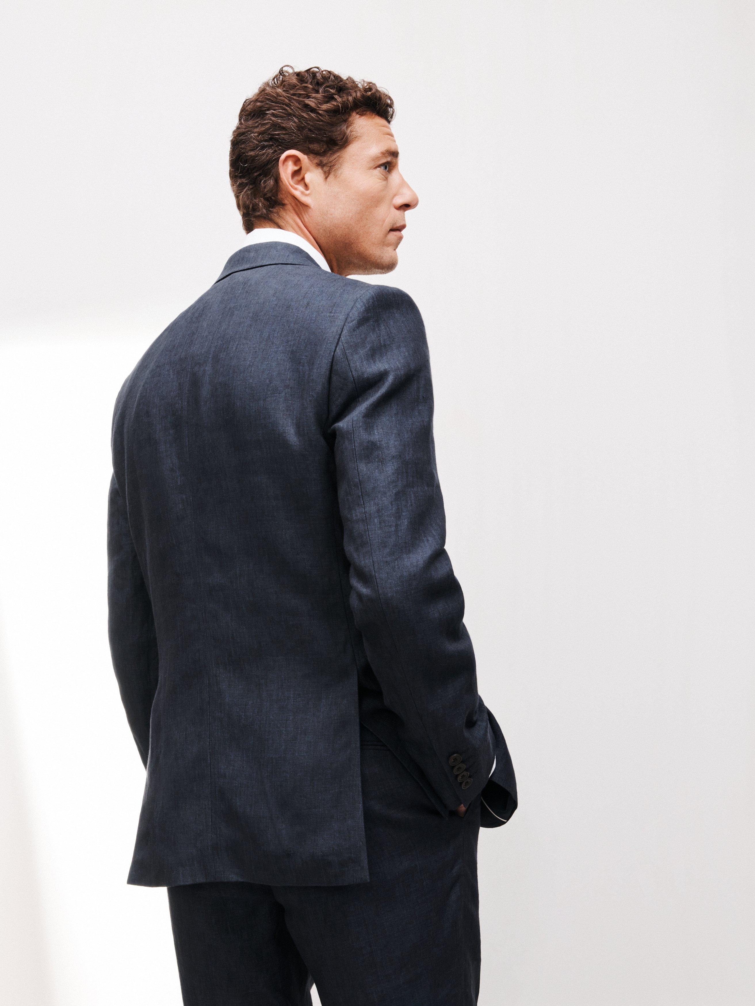 Woven in natural linen, our suit jacket is styled with a notch lapel, flap pockets at the hip and a welt pocket at the chest.