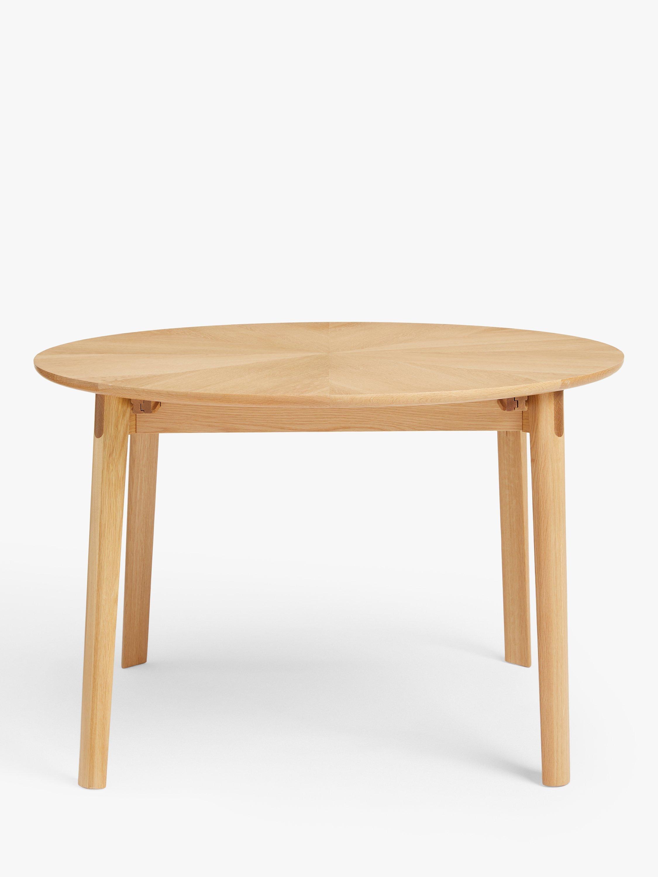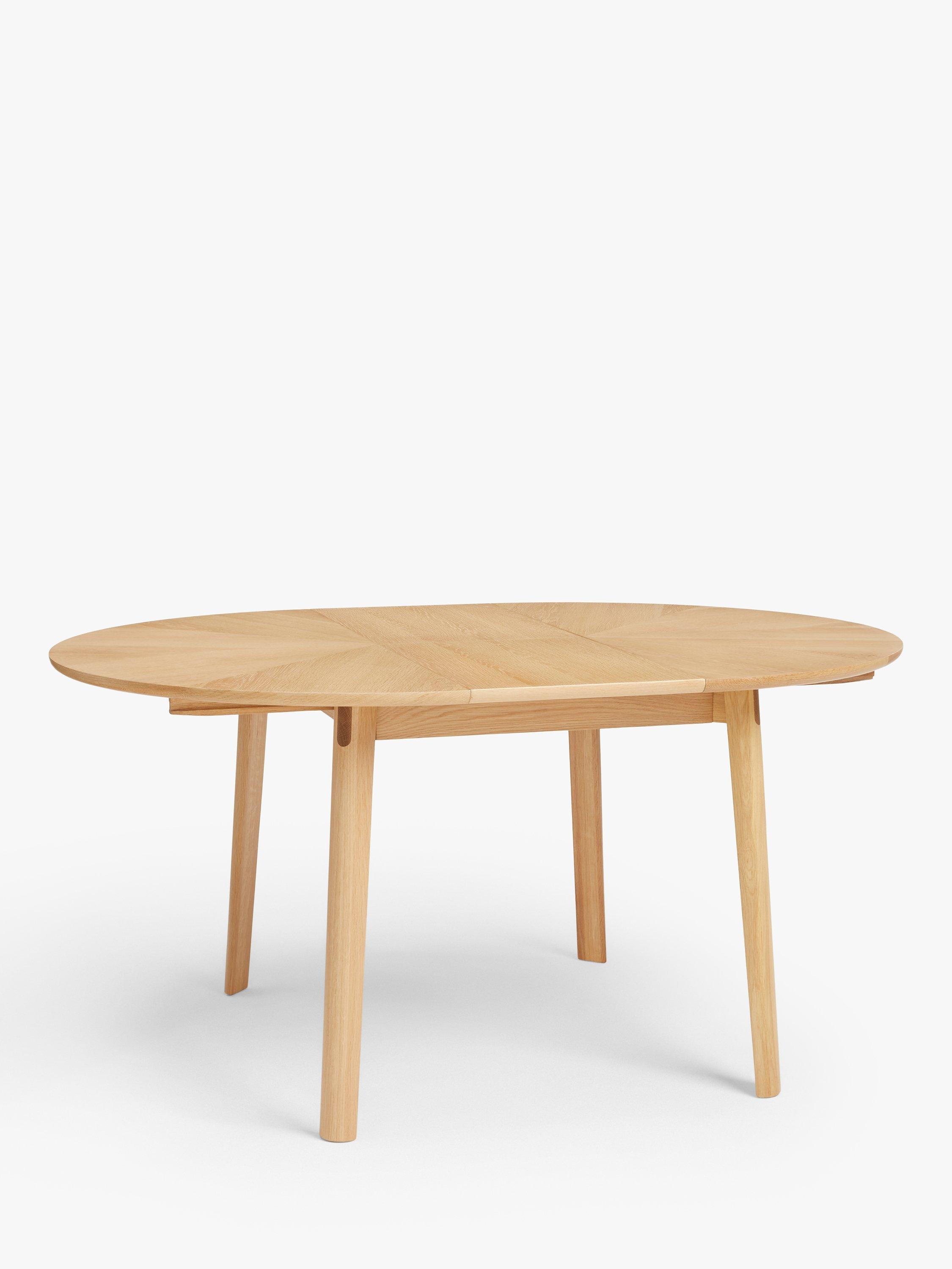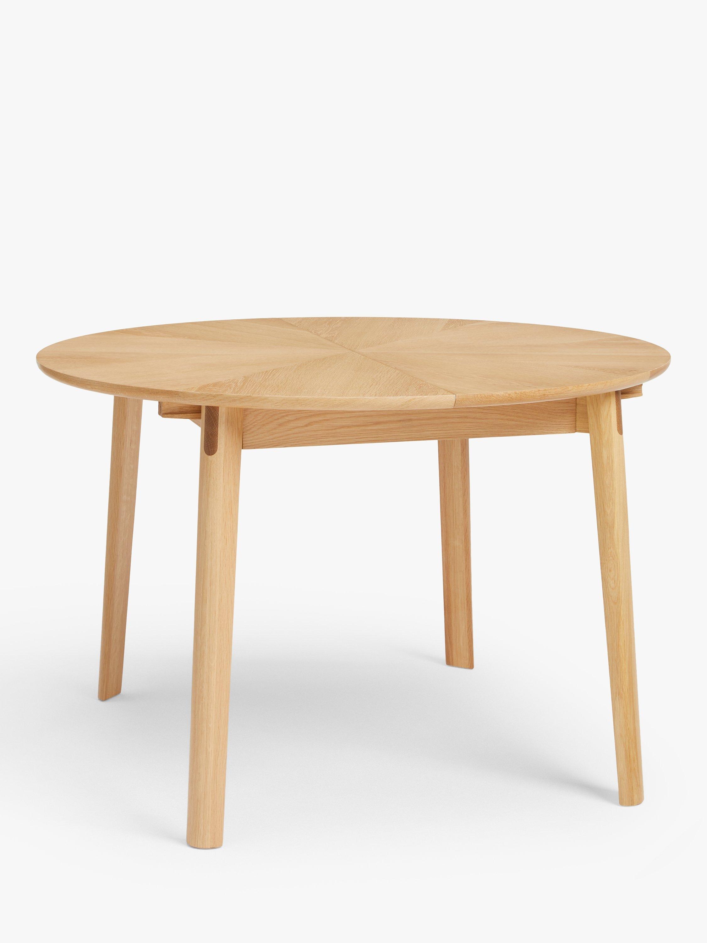 This round dining table features a statement, "starburst" veneer on the top and seats up to 6 with the central, fold-out leaf in place.