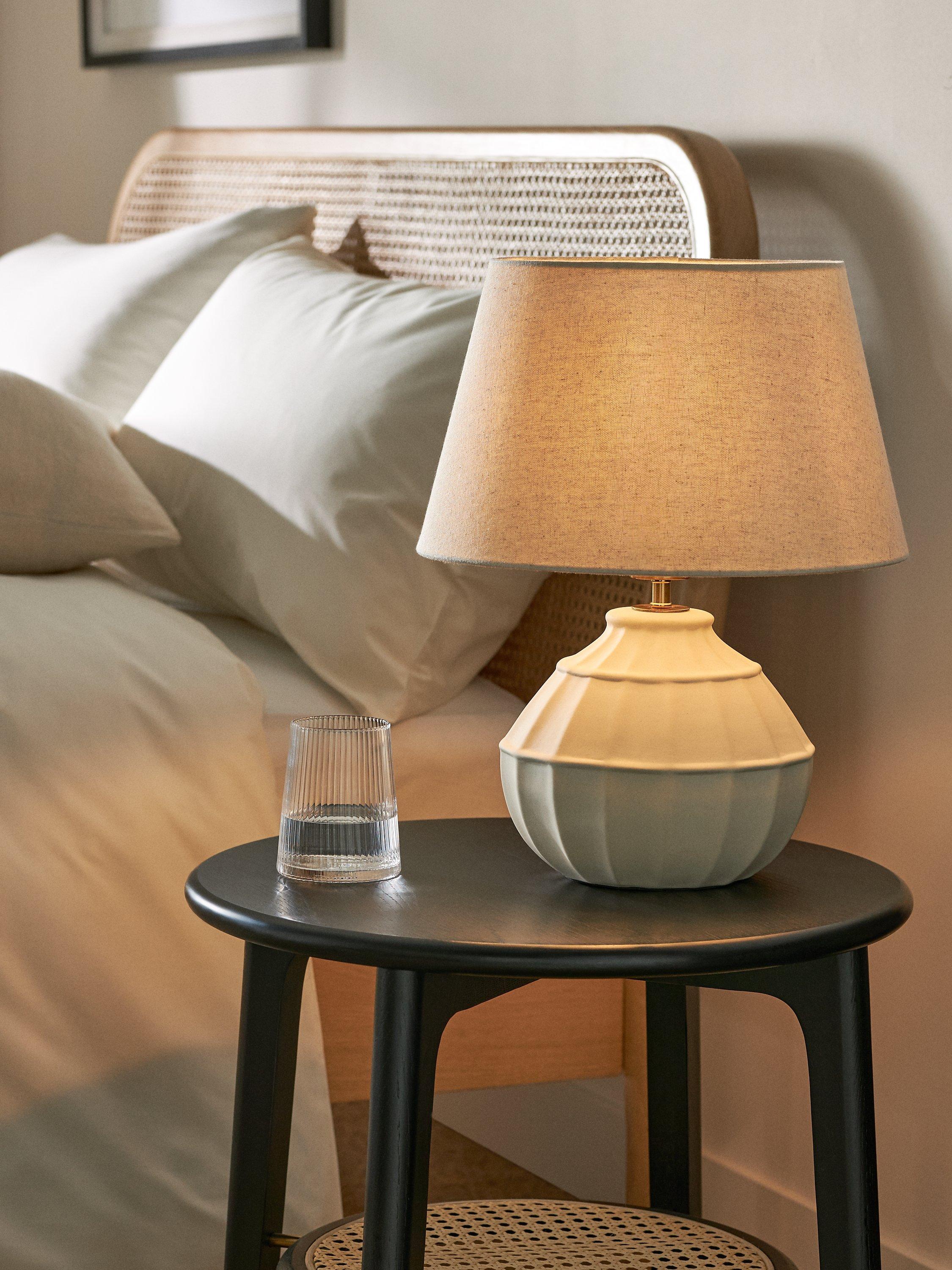 A relaxed modern style, our Notton table lamp is sized to suit just about any room, from bedrooms to living rooms. The distressed concrete effect creates texture and a beautiful chalky contrast against the antique brass details. Finished with a natural linen-effect shade to cast a warm, even light.