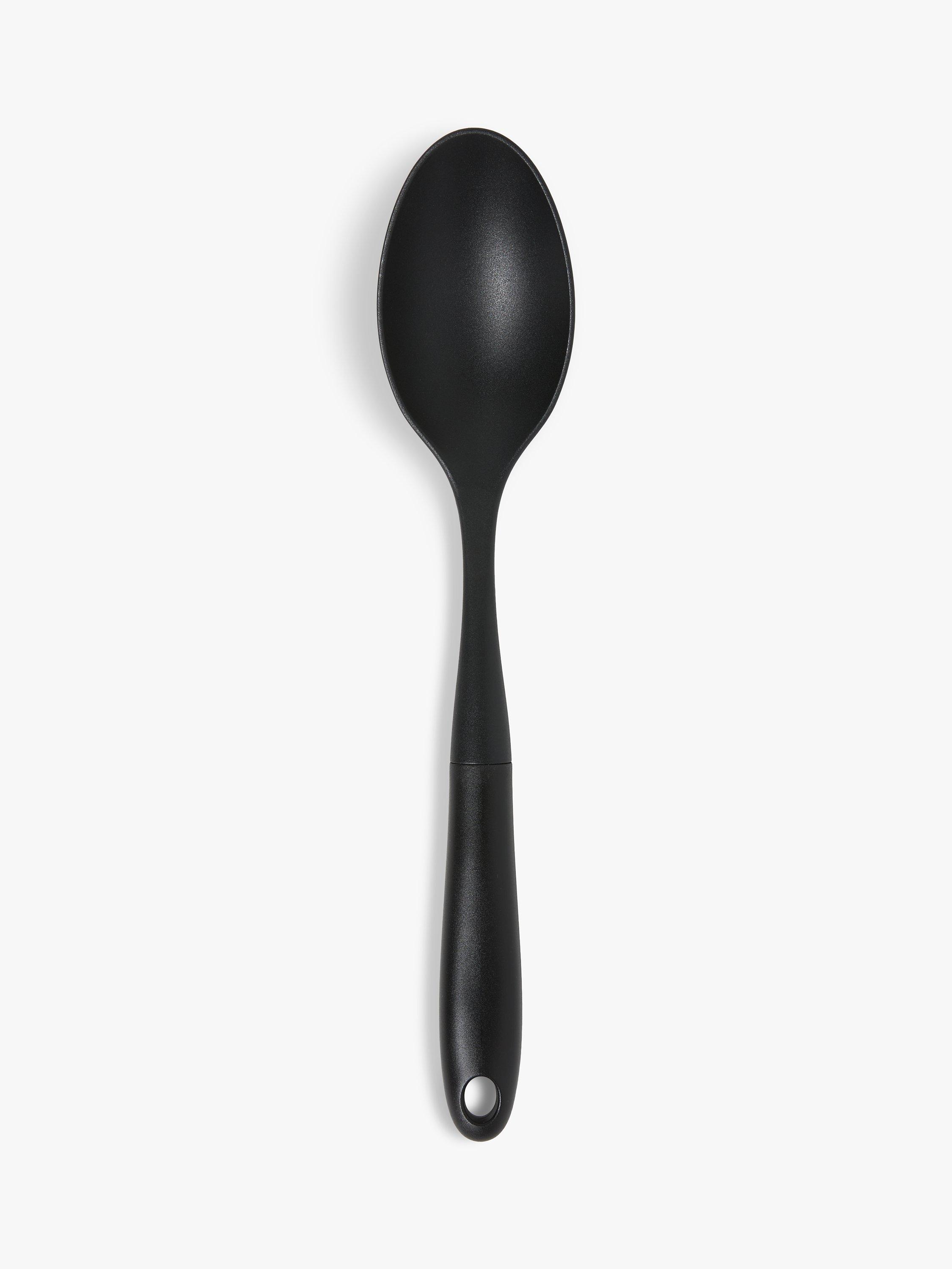 This solid spoon has a heat-resistant nylon head, making it suitable for use with all cookware surfaces, including non-stick.