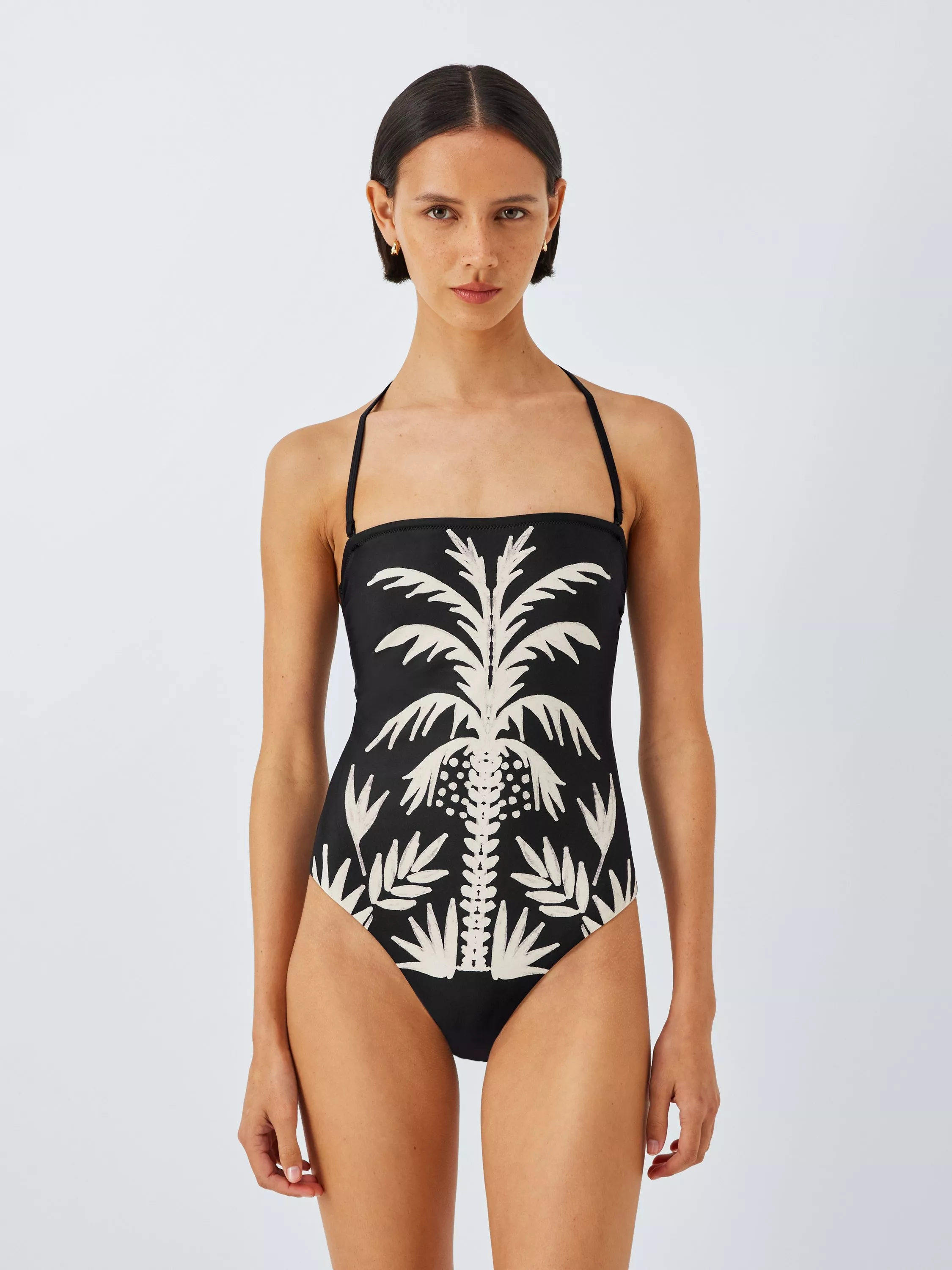 Our bandeau swimsuit comes with detachable straps so if you want more support for swimming you can wear it as a halterneck and ditch the straps when you're lounging.
