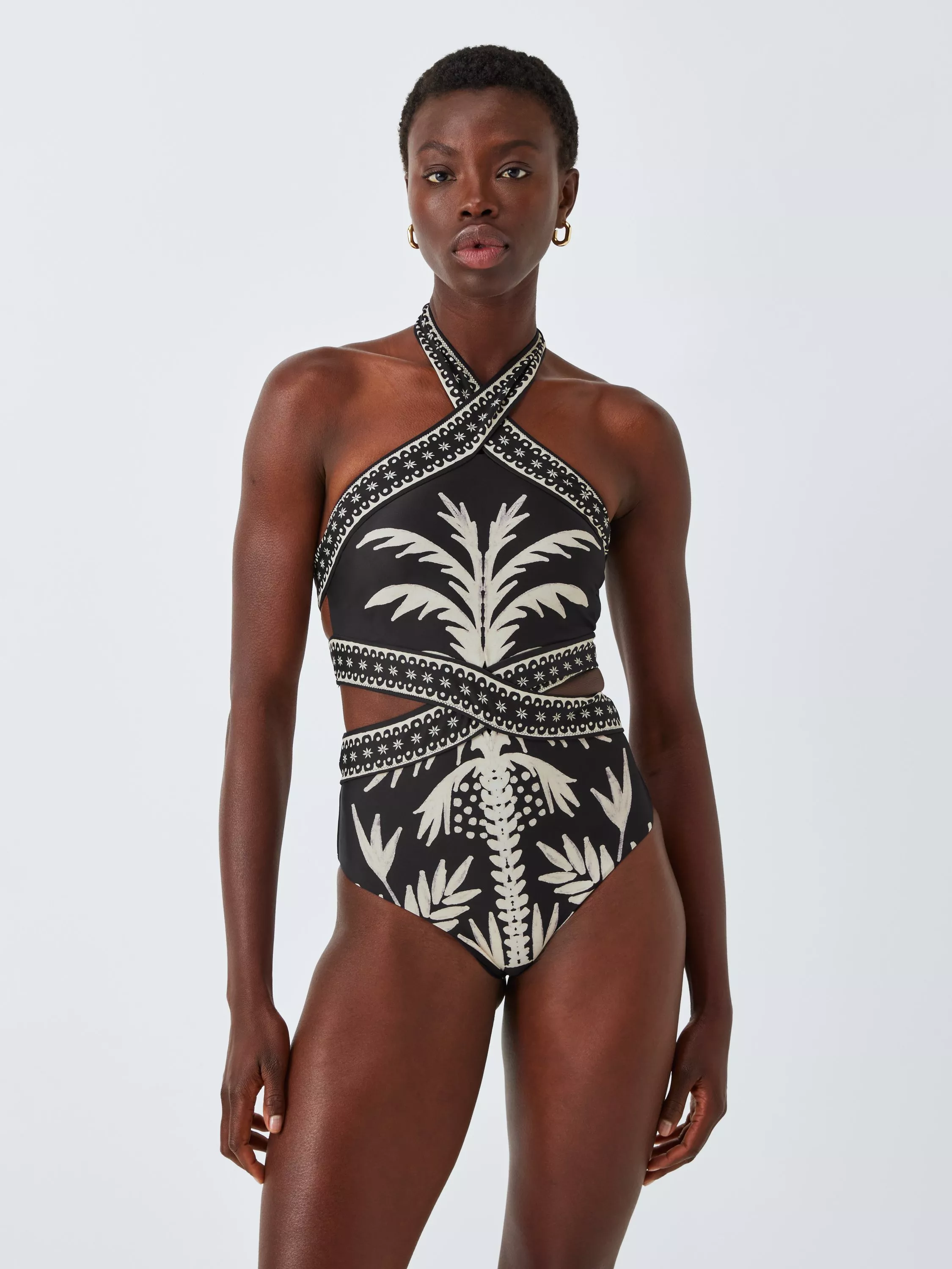 Cleverly designed with a crossover front, cut-out sides and a self-tie halterneck, our Oasis swimsuit is anything but basic.