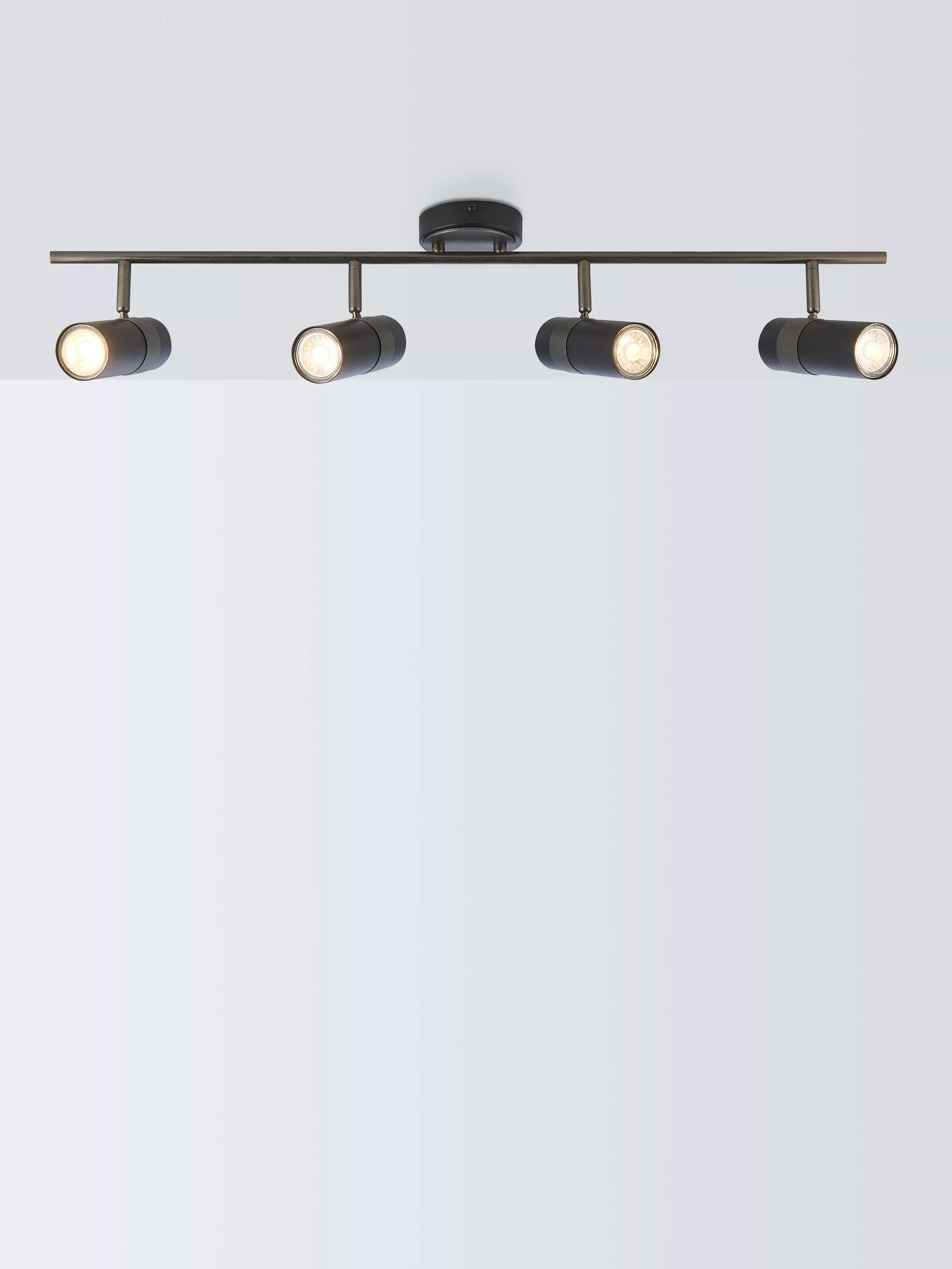 Our Obi spotlight bar features cylindrical-shaped spotlights with a contrast, decorative plated finish. The Obi is an adjustable wall light with a bright, directional light, designed to be modern, smart and understated. This four-light version is great for the centre of a room or over a kitchen island.