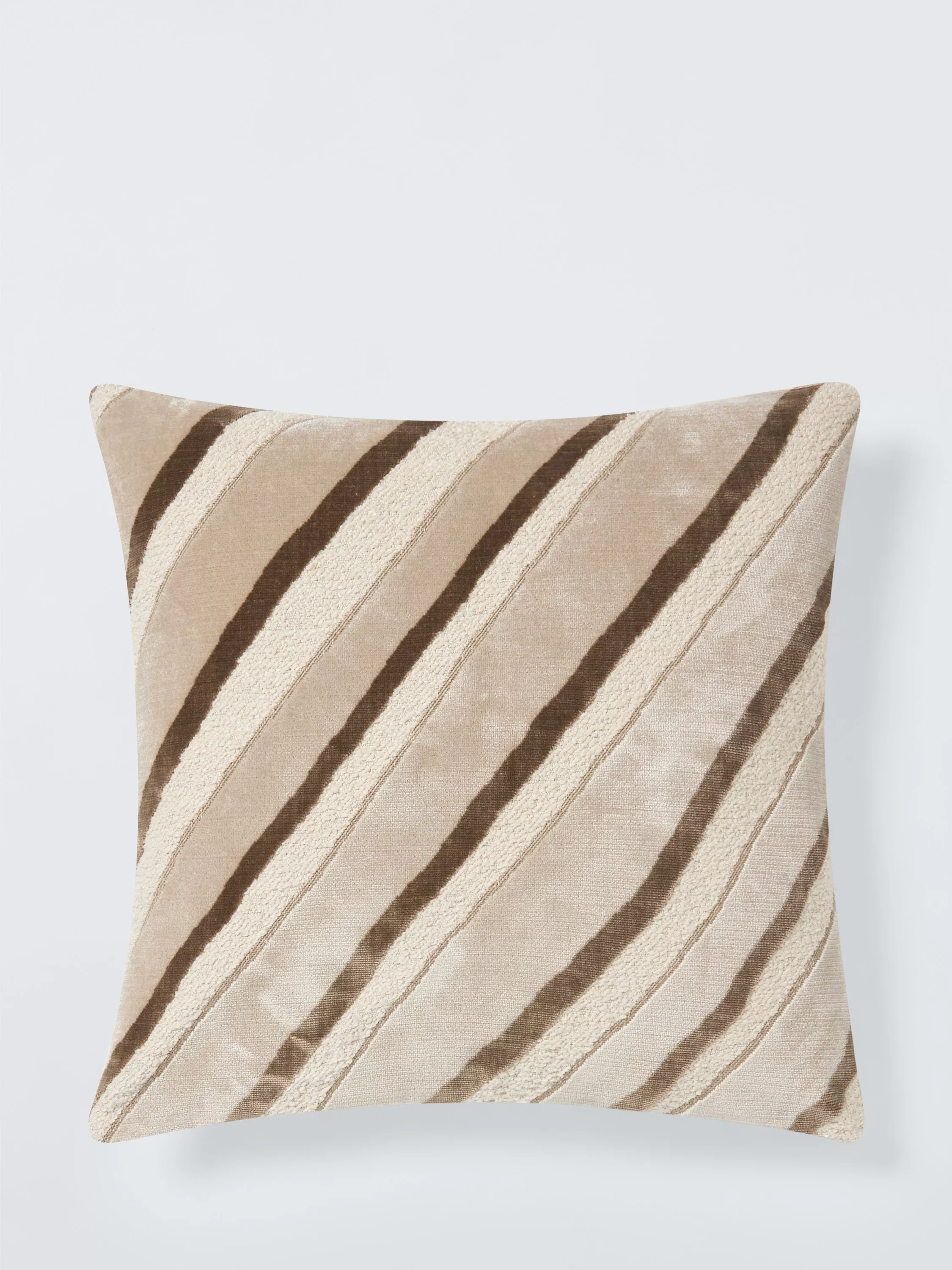 This oblique stripe cushion combines velvet, stitched, chenille and woven textures to add interest to your sofa or favourite chair.
