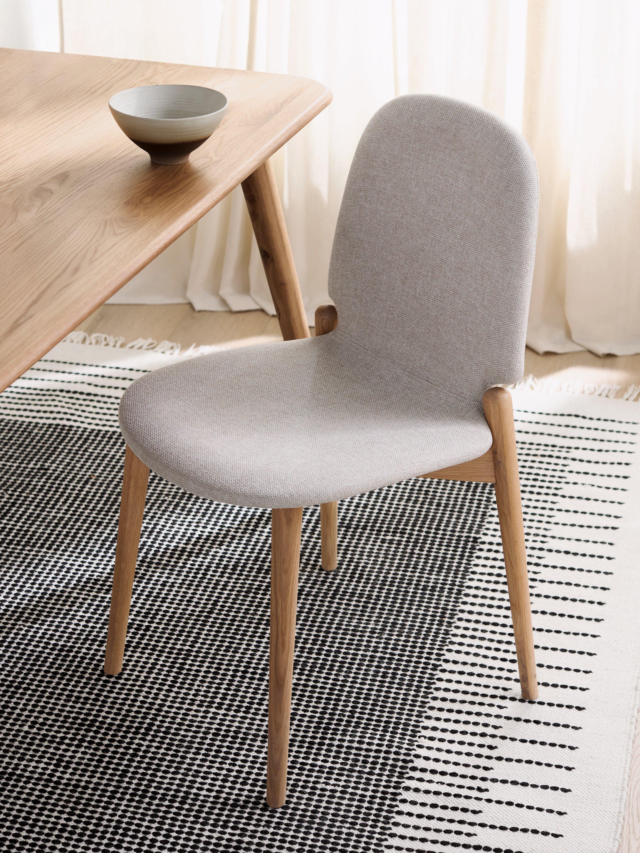 Elevate your home dining experience with our Offset dining chair with wooden legs. Designed for those who appreciate both aesthetics and function, this is where style meets comfort.