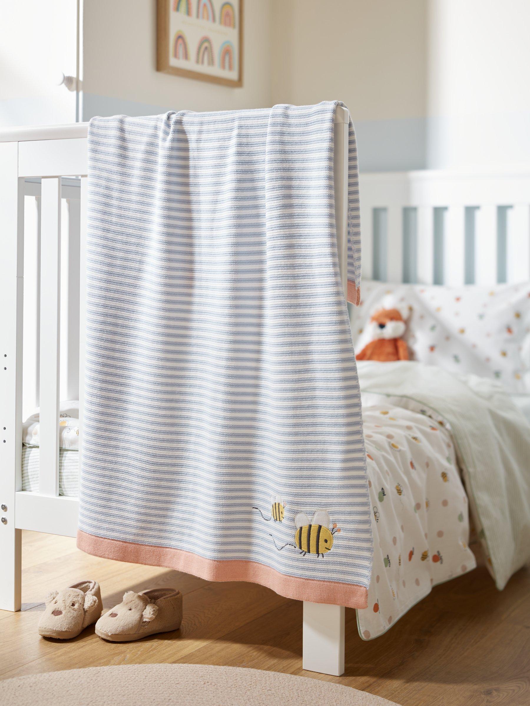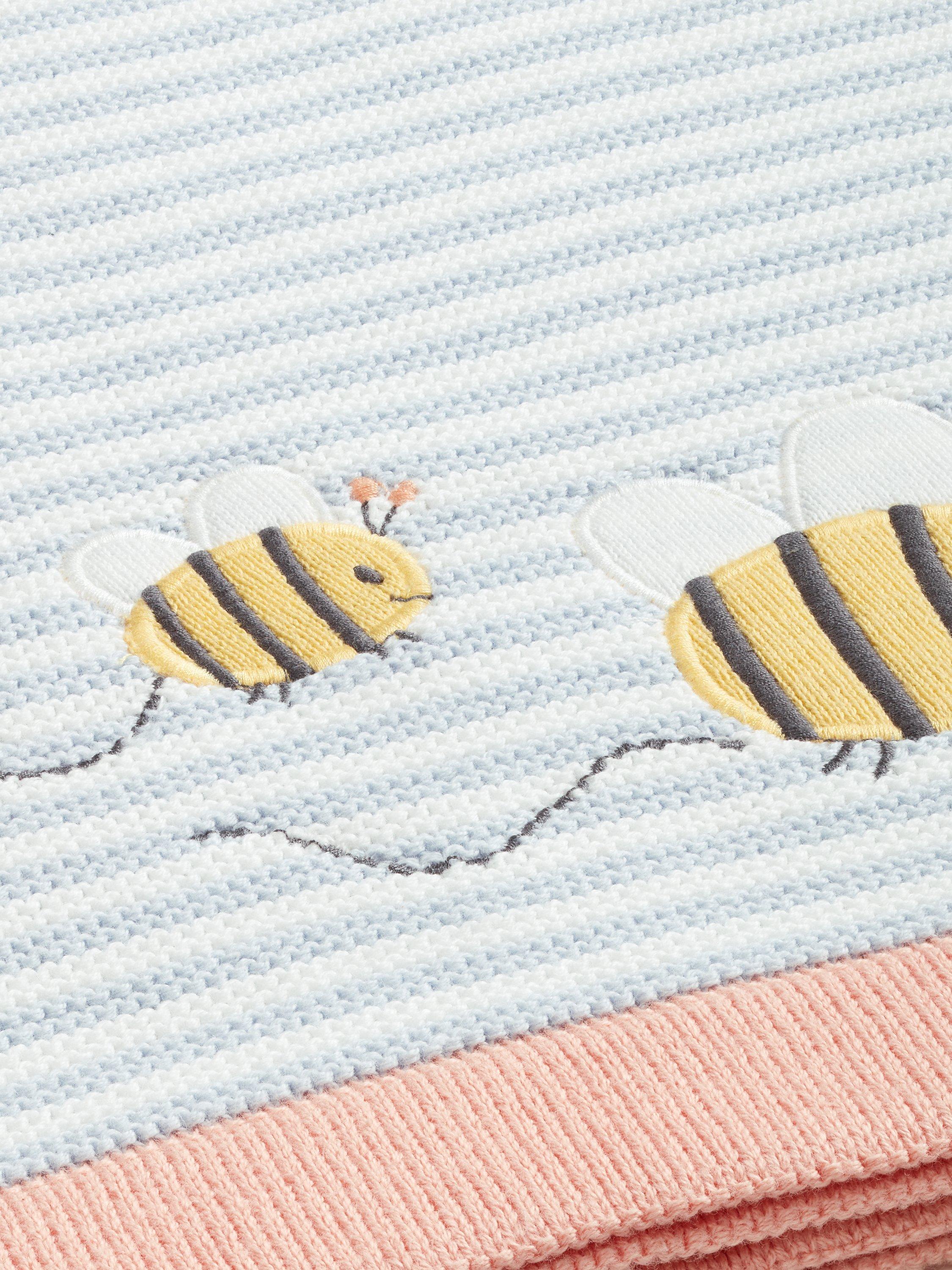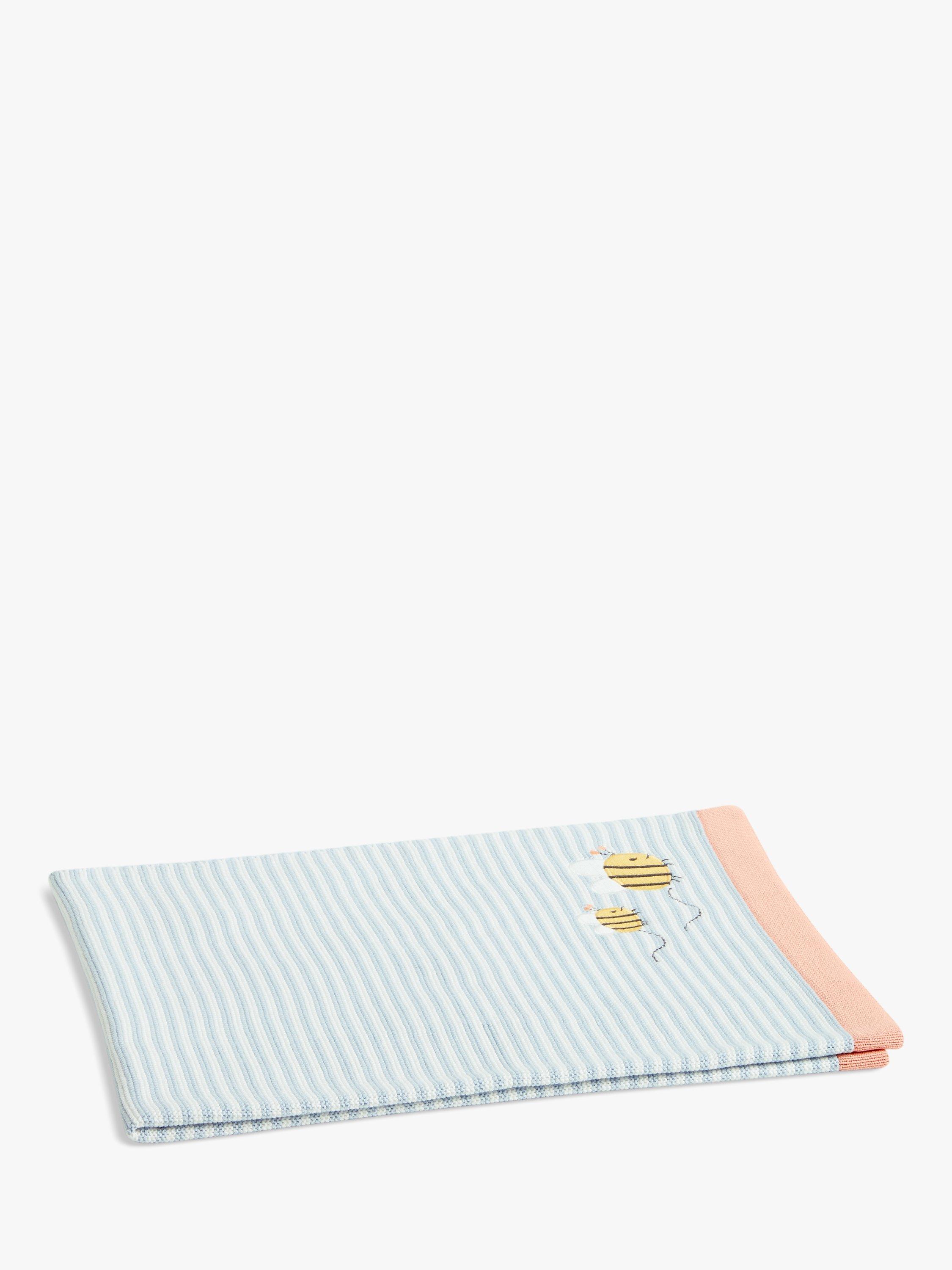 Part of our Oh My Darling range, this blanket features two adorable applique bees on a timeless striped background with a complementary coloured border. Pair with other items in the range for a complete look.