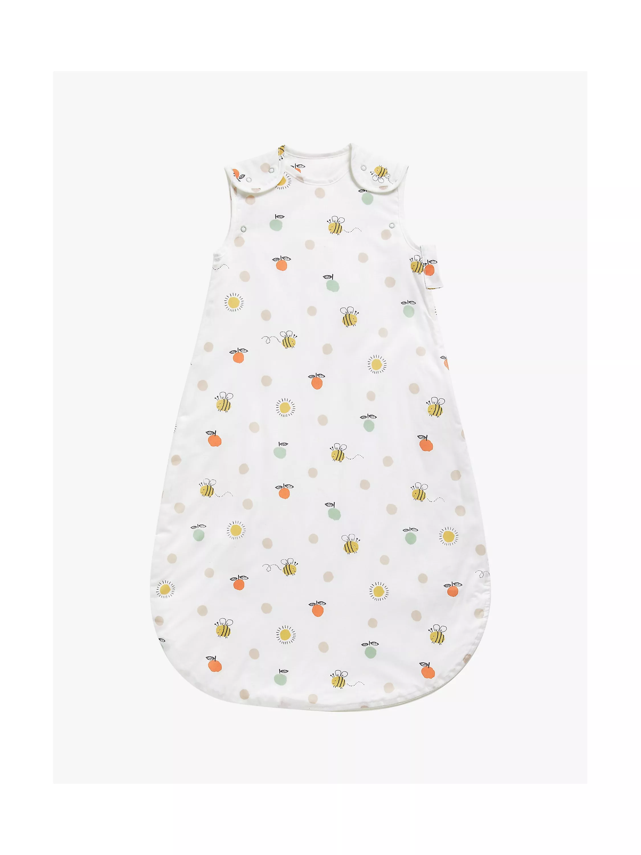 Send your little one safely off to sleep with this snug and secure sleeping bag from our collection. A handy, practical addition to baby's bedtime routine, it is designed with an all-over bee, sun, and fruit print that conjures up images of sunnier days.