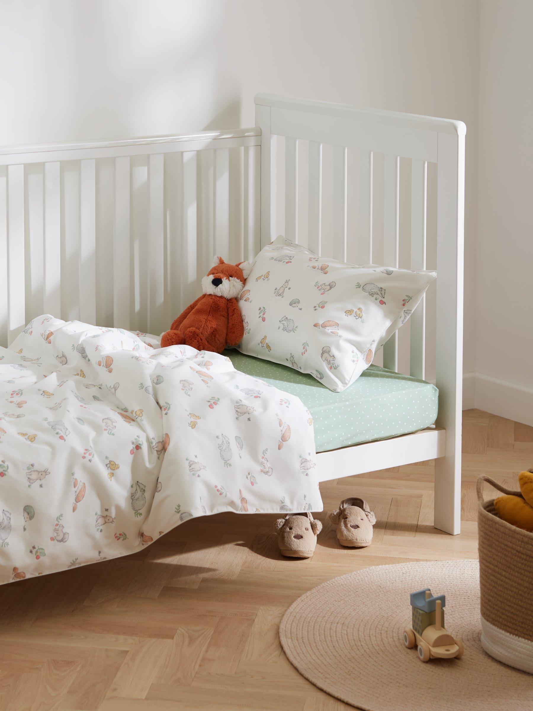 Decorated with the sweetest woodland animals to inspire their dreams, this attractive duvet cover and pillowcase set makes a great addition to any nursery. Crafted from pure cotton for a breathable feel that won't irritate their skin, it has a 200 thread count to ensure the little one stays comfortable at all times.