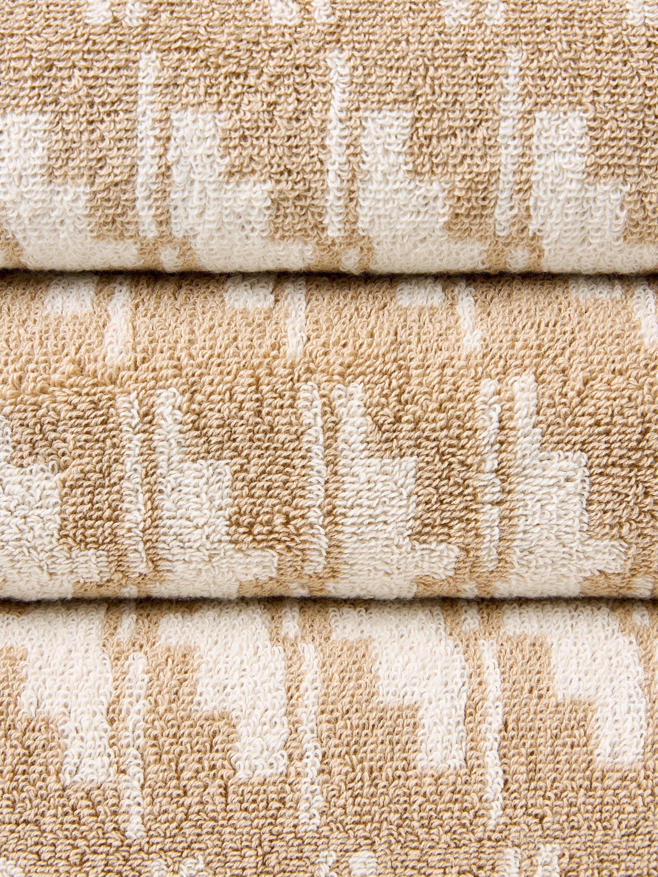 These stacked pyramid design cotton towels will give any modern bathroom a quick and easy update.
