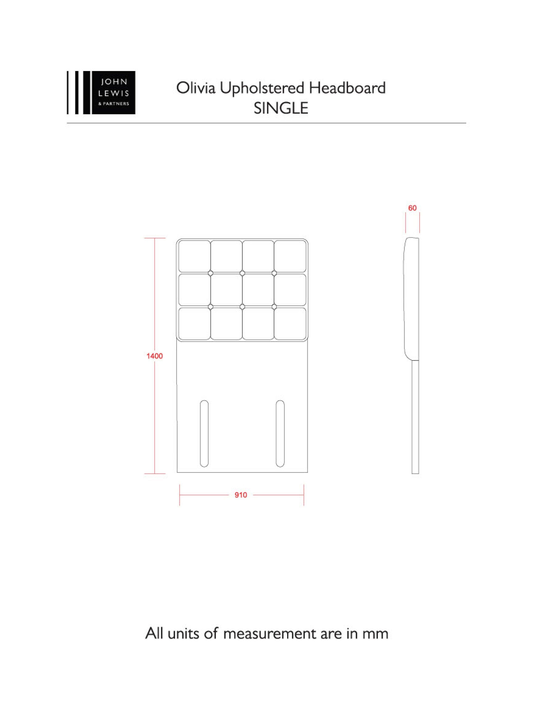John LewisOlivia Full Depth Upholstered Headboard, Single, Herringbone Rose