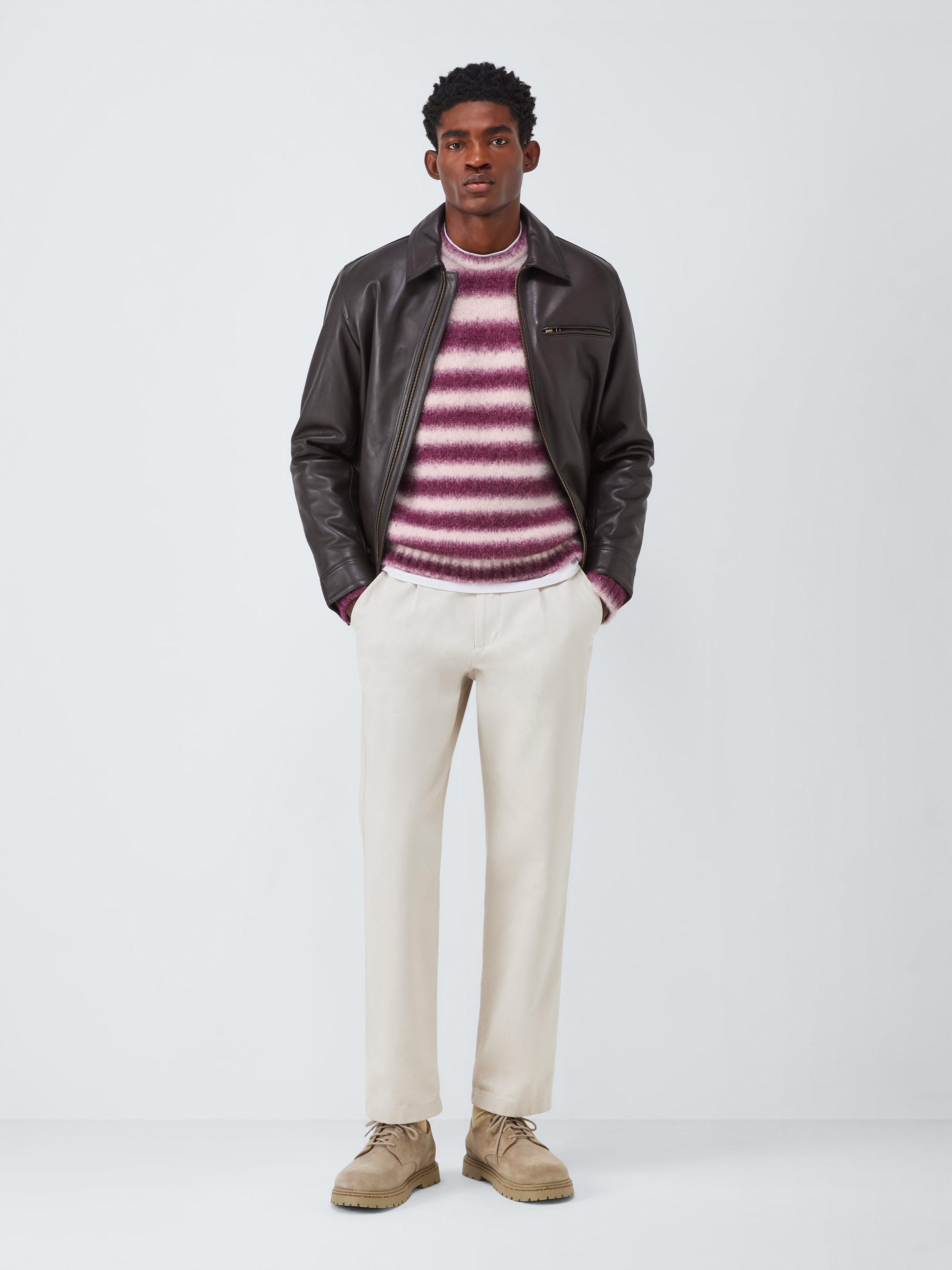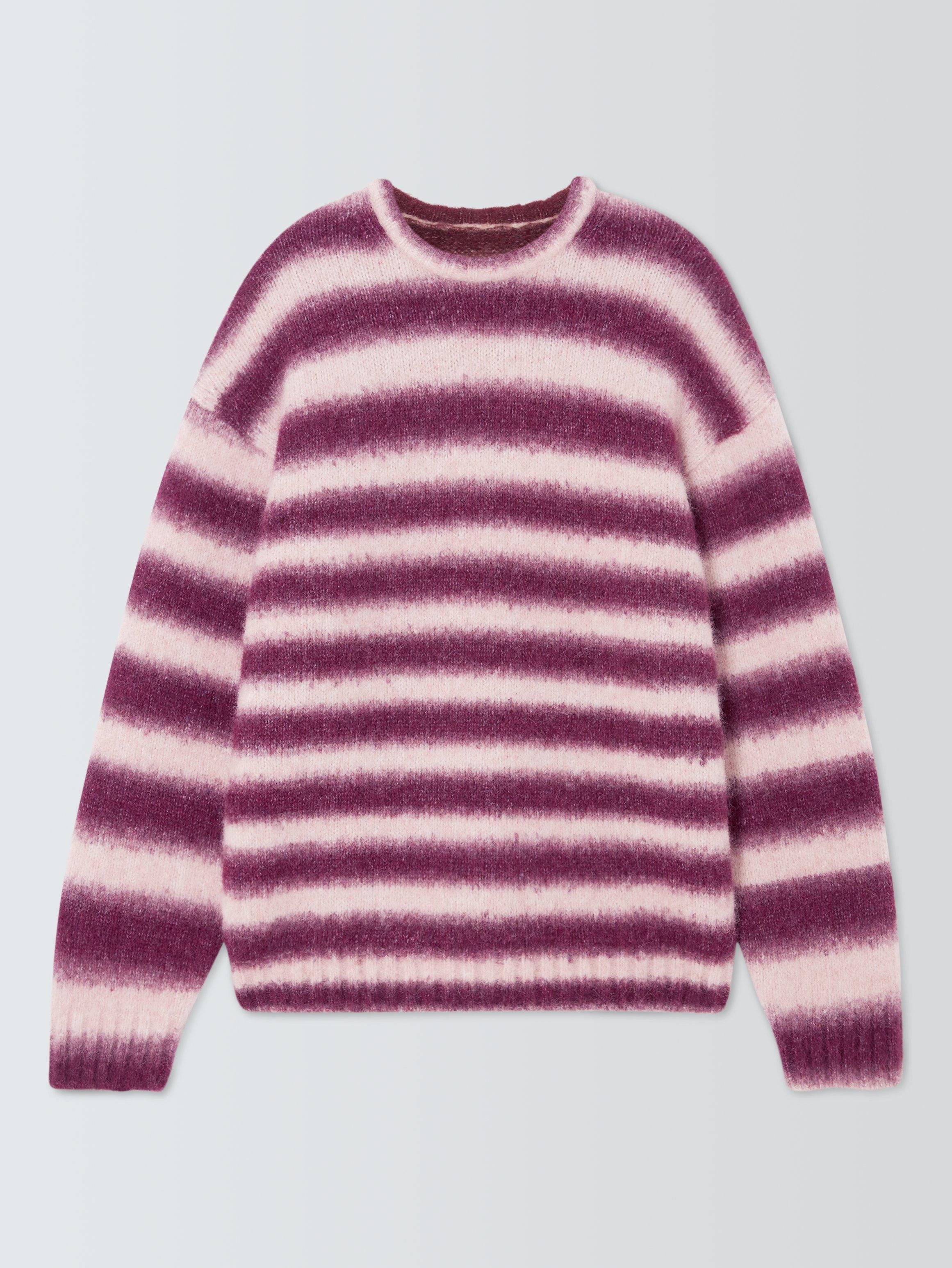 Ombre stripes create an impact with this crew neck jumper. Knitted with luxurious alpaca in the yarn for texture and completed with a chunky ribbed knit on the neck, cuffs and hem.