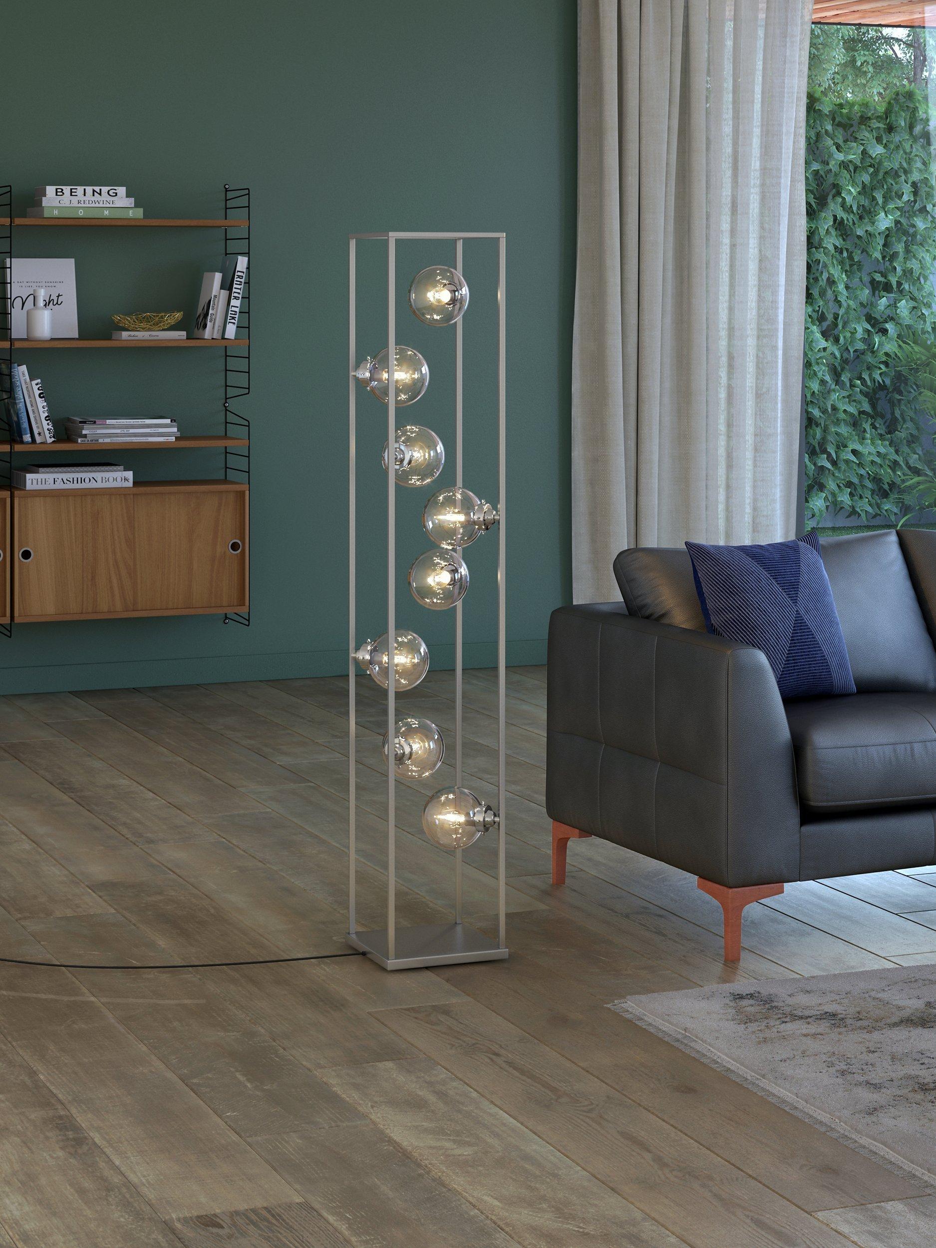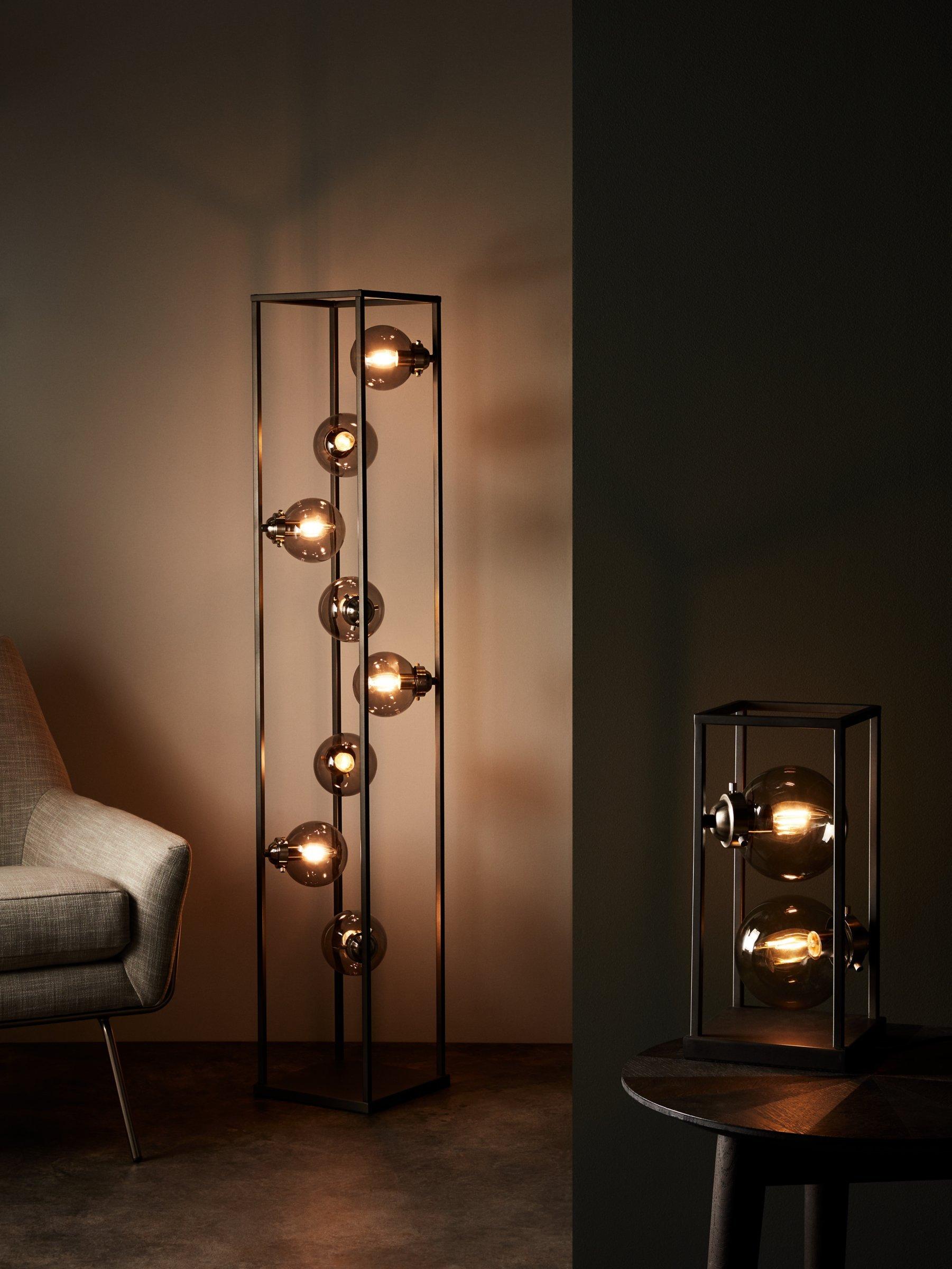 The Orb floor lamp has an innovative design that encases 8 smoked glass shades within a minimalist metal frame. Ideal for modern settings, it's a striking style that will provide an ambient wash of light in your space.