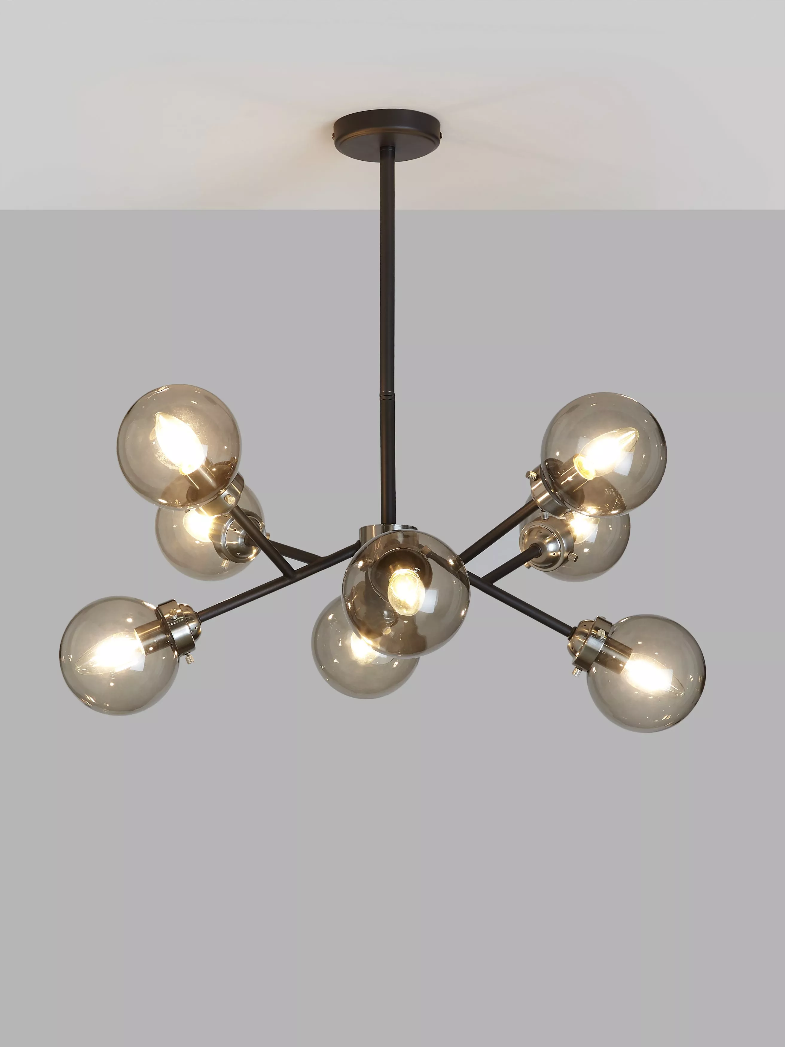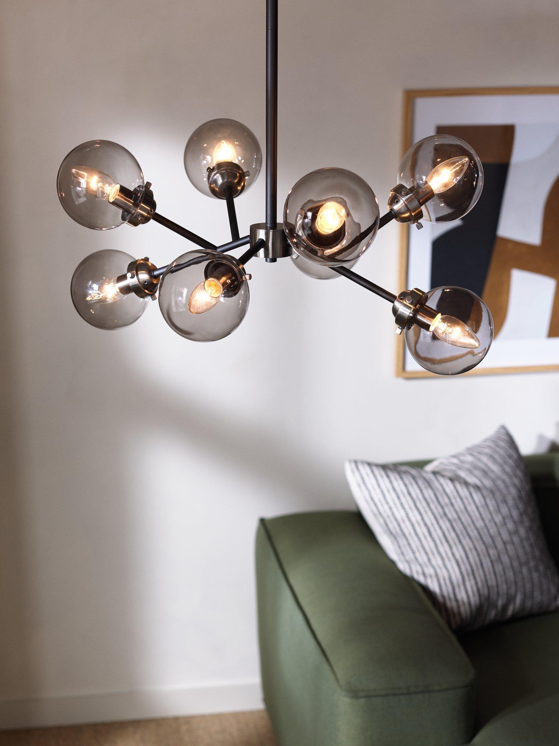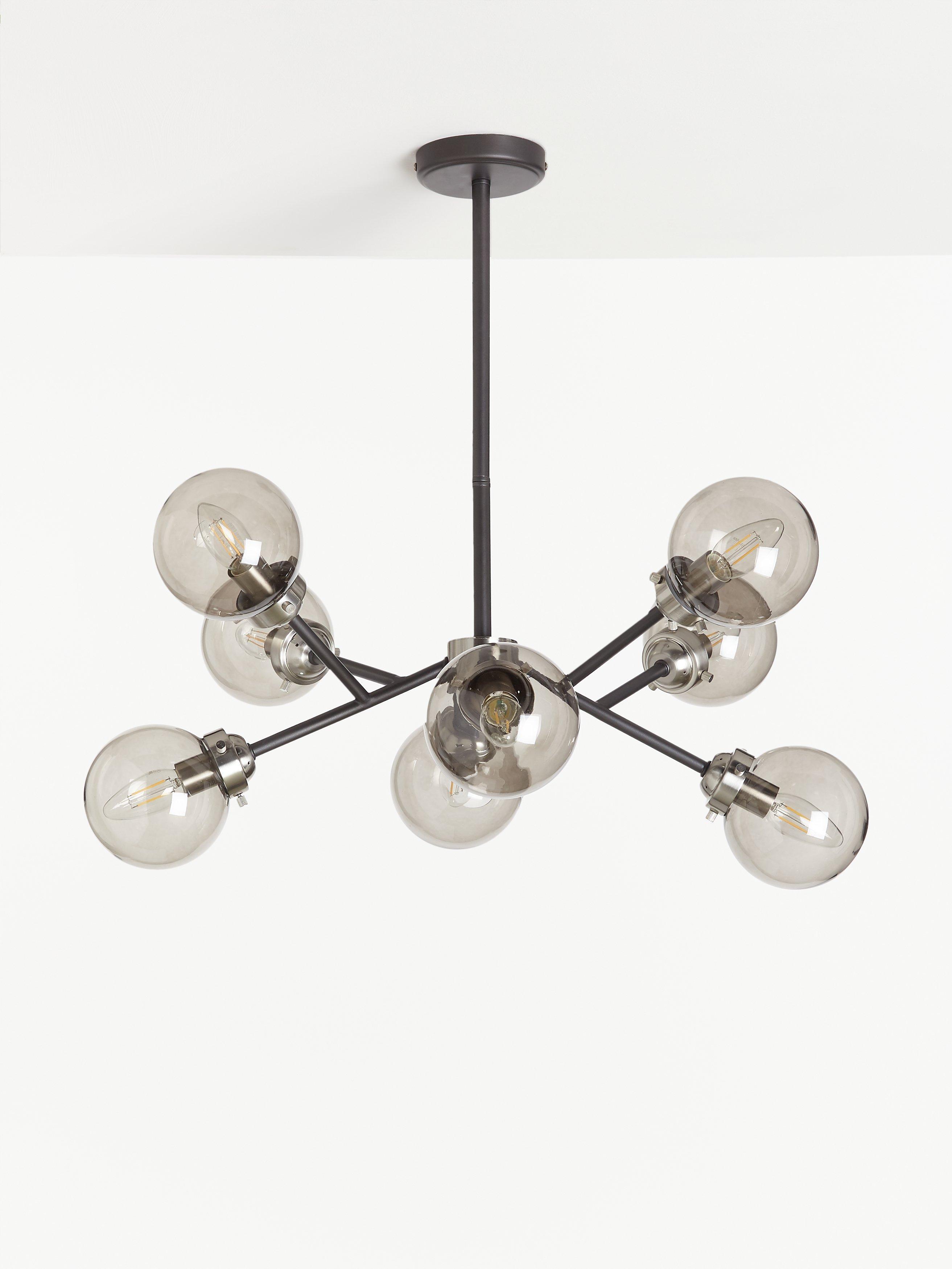 It's eccentric, it's eye-catching and it will give your room a space-age update. Accommodating eight arms in total, this ceiling light has a structured shape and each arm is fitted with a smoked glass shade. This results in an ambient glow of light around your space. Eight LED bulbs are required.