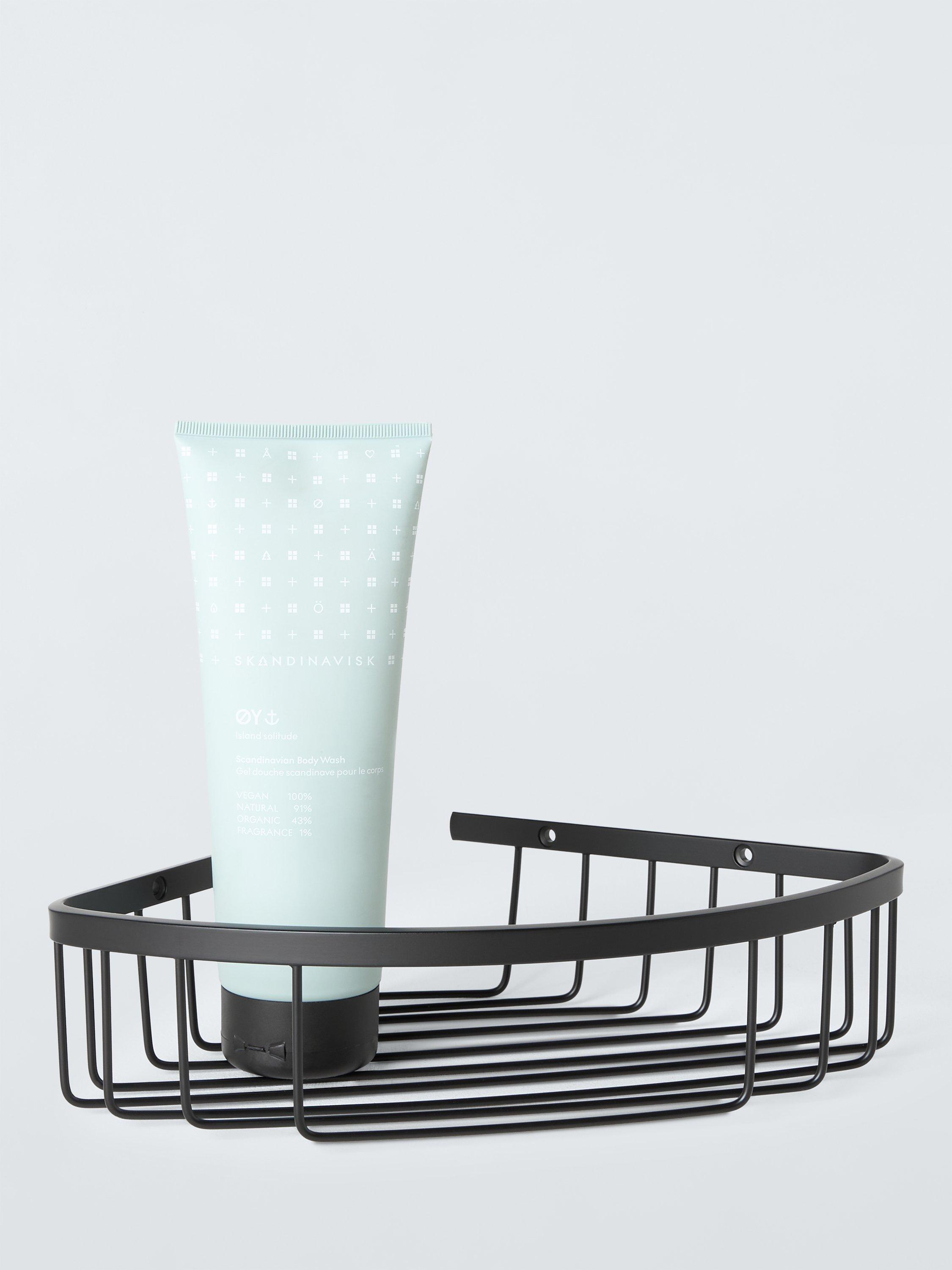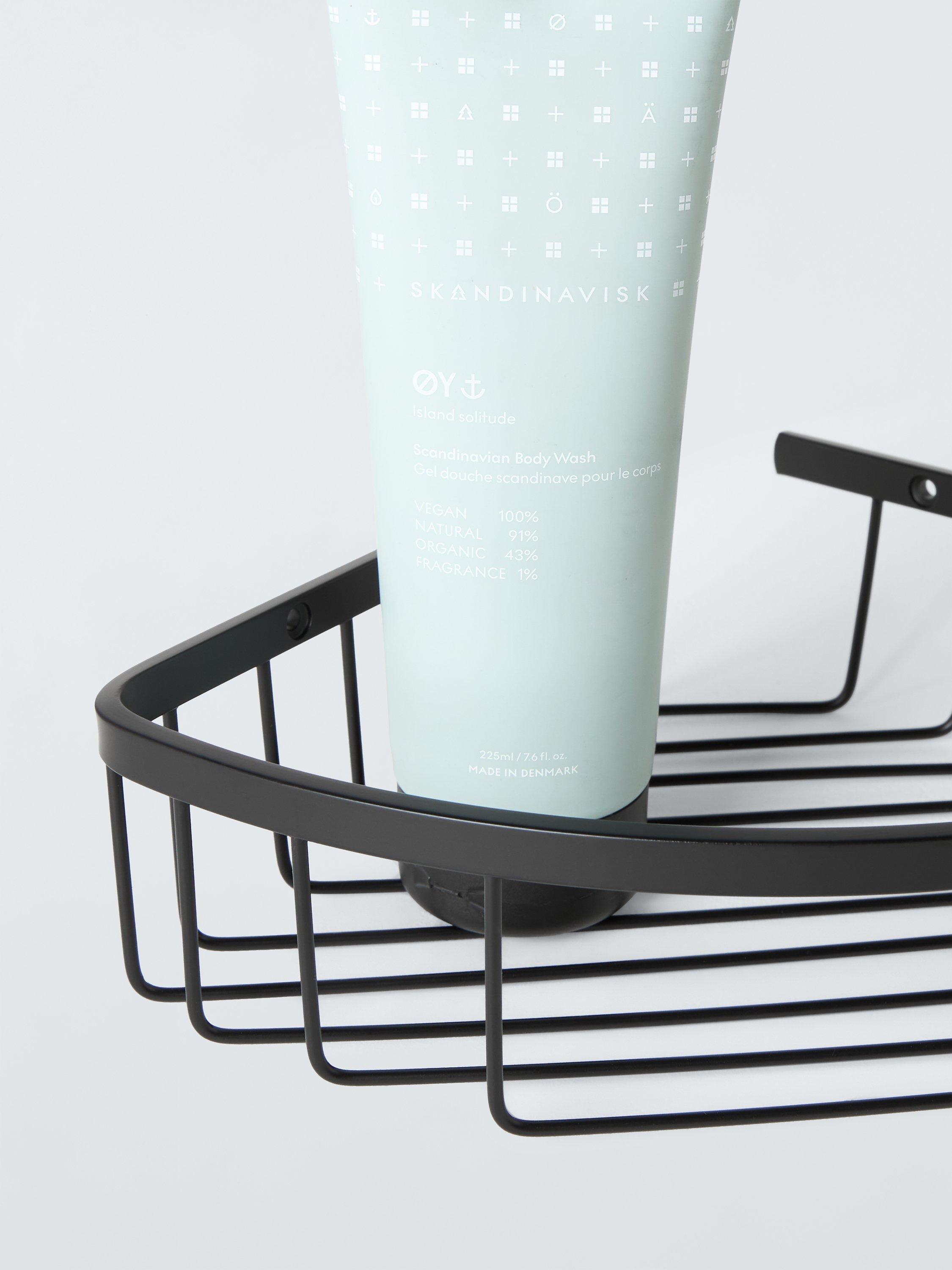 Part of our Orbit bathroom range, this contemporary metal corner basket suits any decor. Wall-mount for the shower or bathroom.