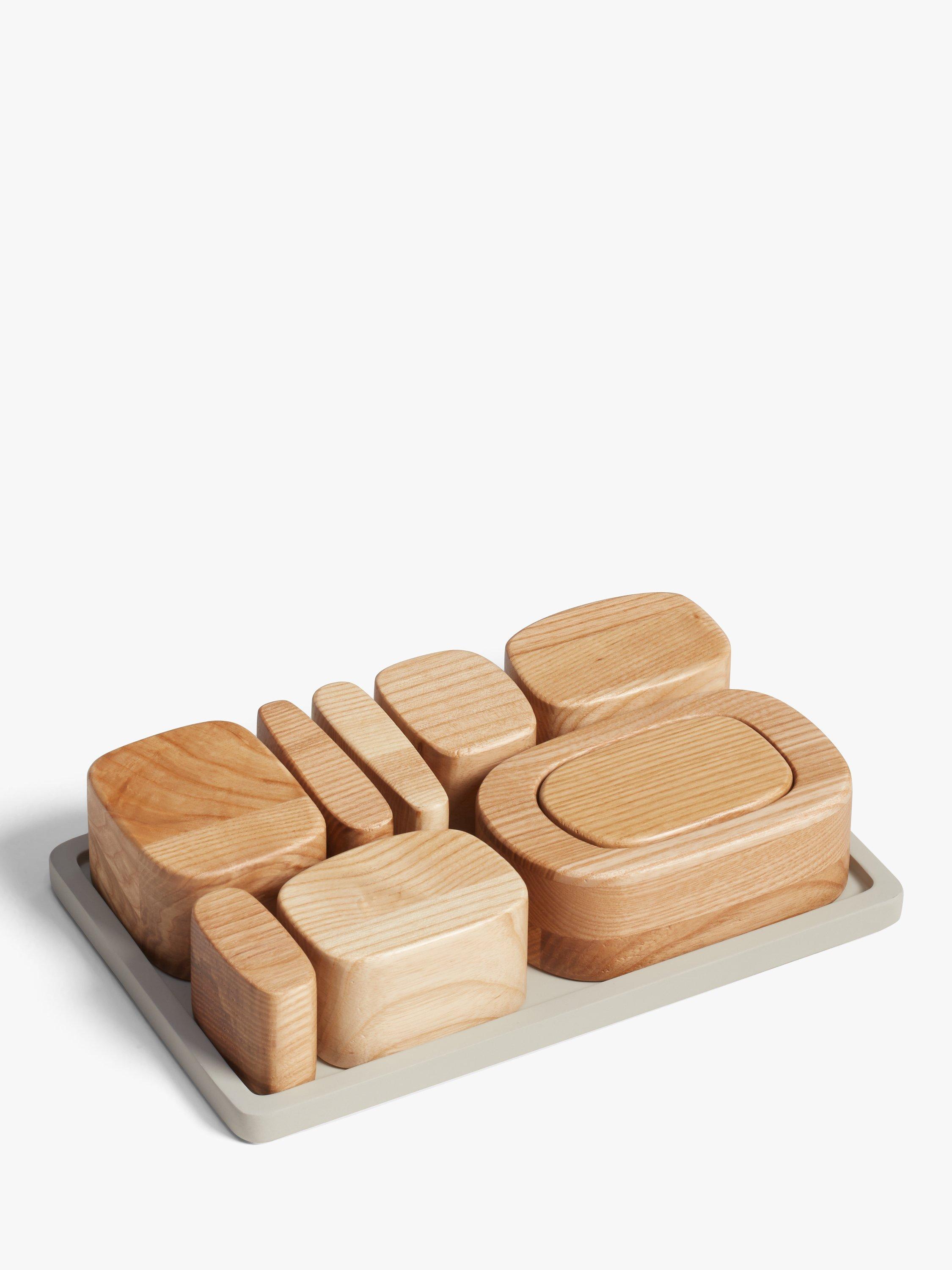 Made from Ash wood, these building blocks were inspired by Barbara Hepworth, the artist and sculptor whose work exemplified modernism and modern sculpture. The Interconnecting blocks stimulate concentration and creativity.