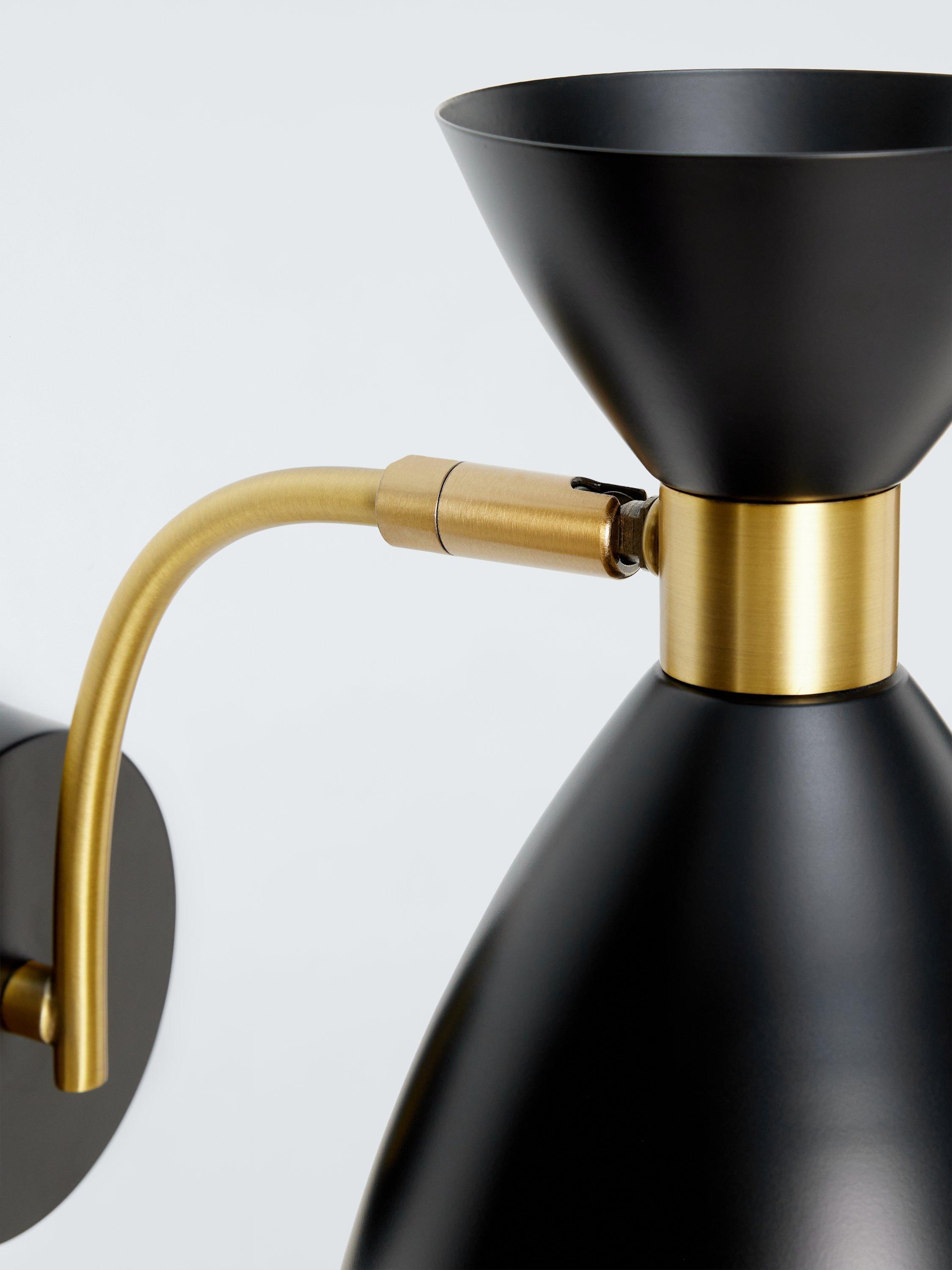 While the stem is fixed, the base of the shade features an articulation point, allowing you to rotate the shade up or down and side to side to direct the light wherever it's needed. The wall lamp requires a 10W LED bulb or is compatible with dimmable LED bulbs for added versatility.