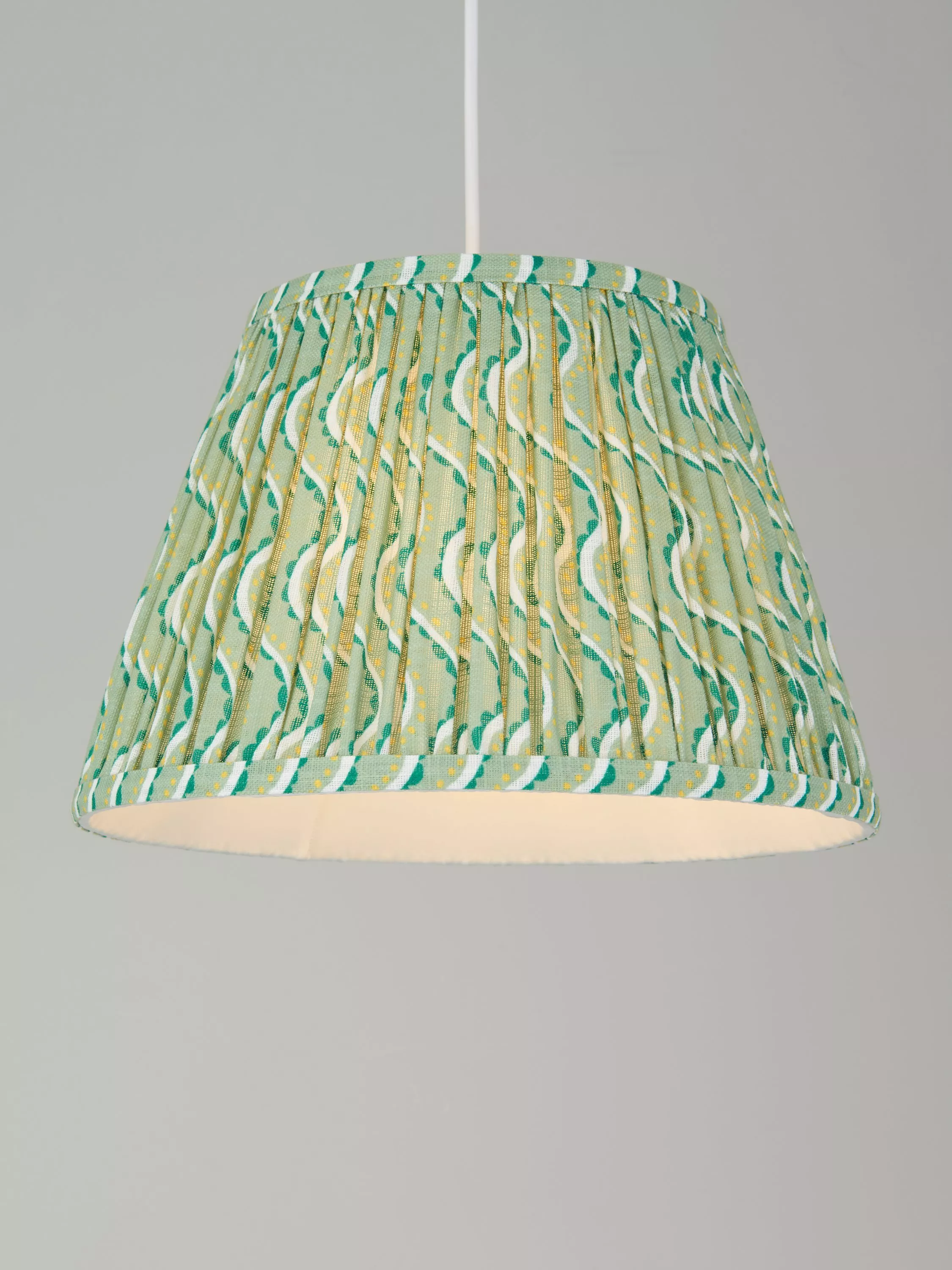 Retro-refined, this tapered lampshade's bold, digitally printed design will bring a playful edge to your space. We've made it from a faux-linen fabric that has been gathered and pleated by hand into a tapered cylinder shape. It's suitable for both large table lamp bases and ceiling fittings to refresh a room.